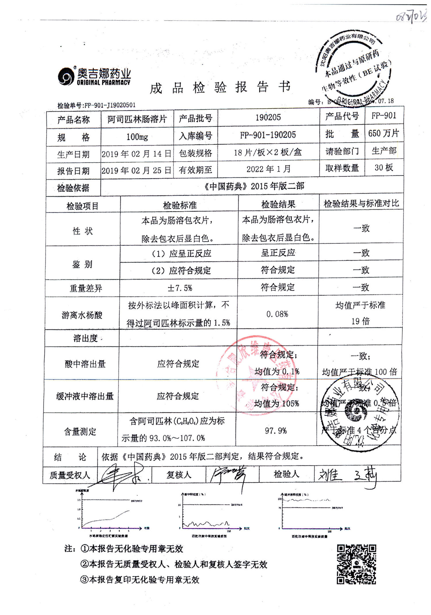 | 阿司匹林腸溶片 | 100mg*36片 | 190205 | 查看詳情 |