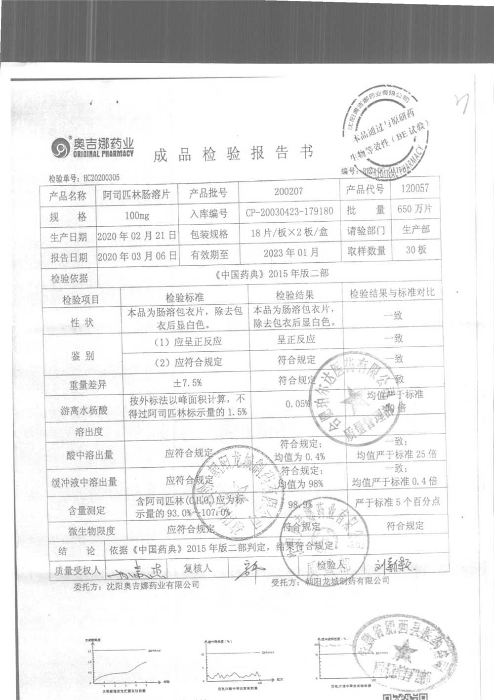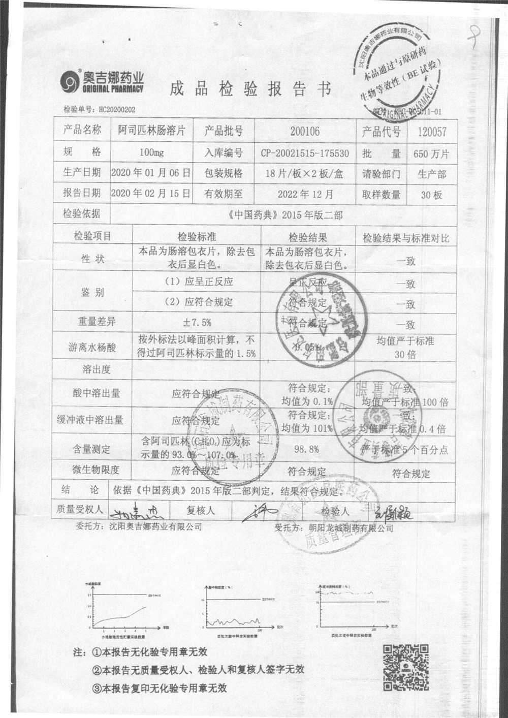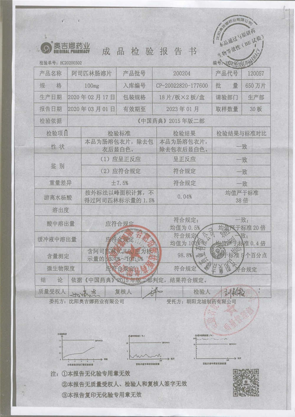 | 阿司匹林腸溶片 | 100mg*36片 | 200204 | 查看詳情 |