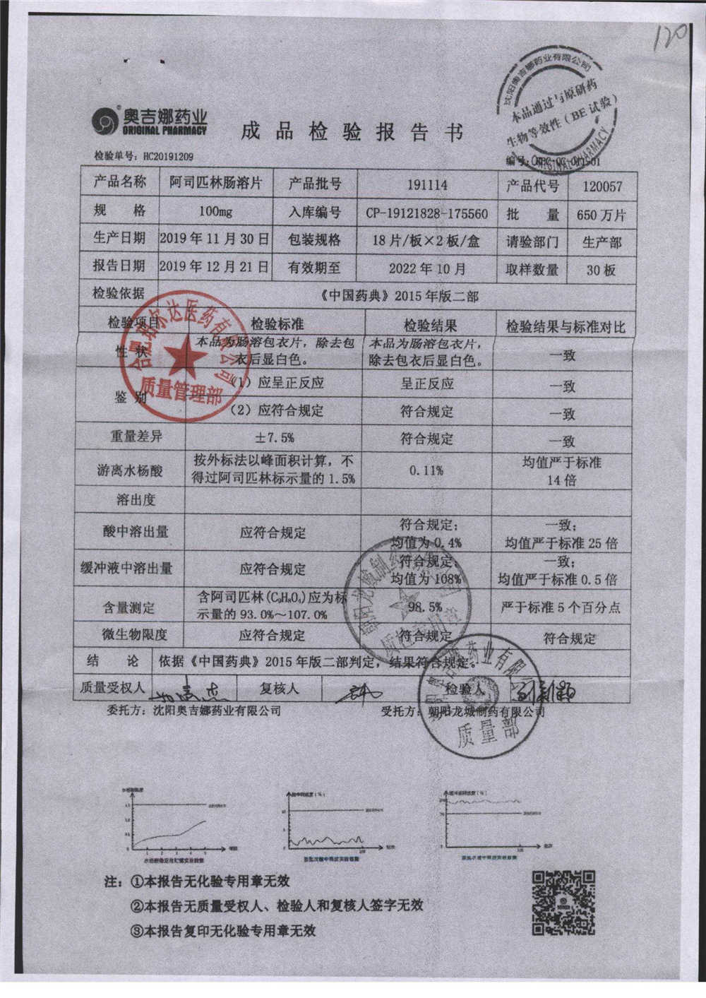| 阿司匹林腸溶片 | 100mg*36片 | 191114 | 查看詳情 |