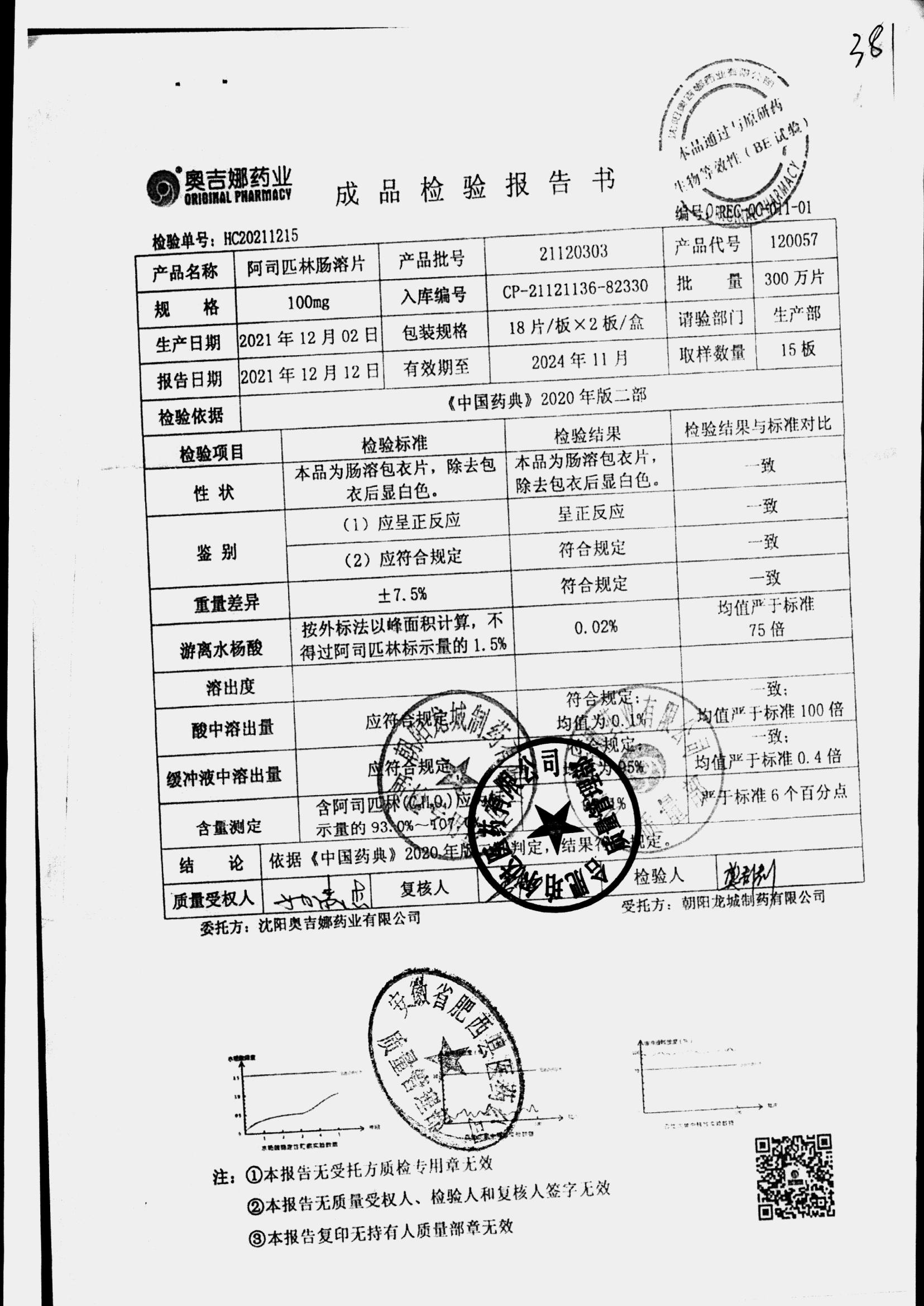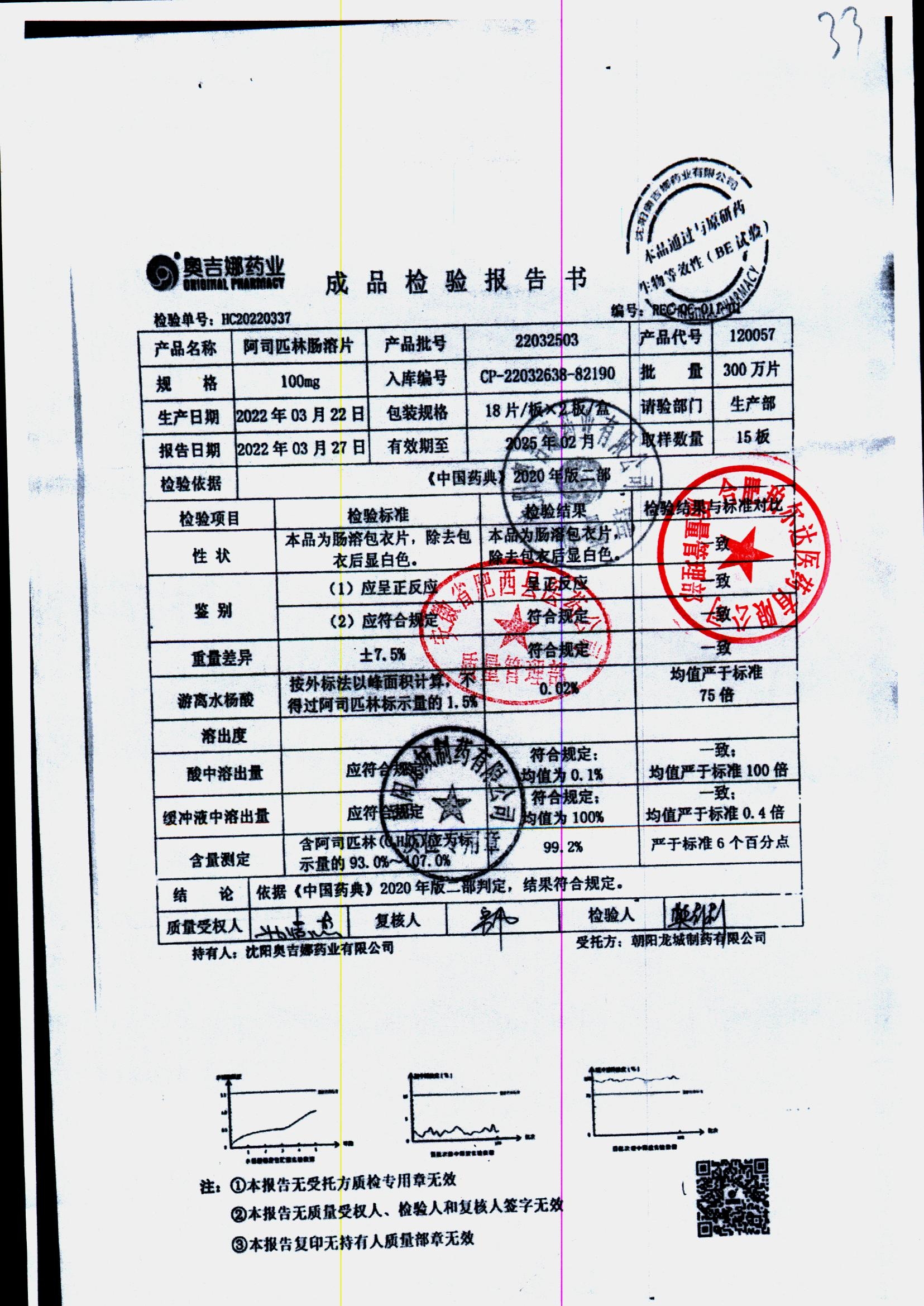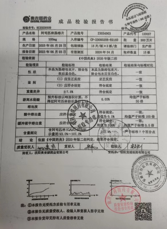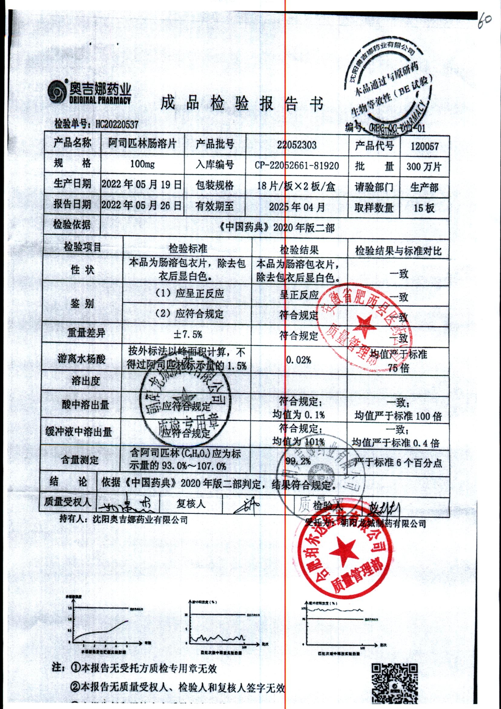 | 阿司匹林腸溶片 | 100mg*36片 | 20050103 | 查看詳情 |