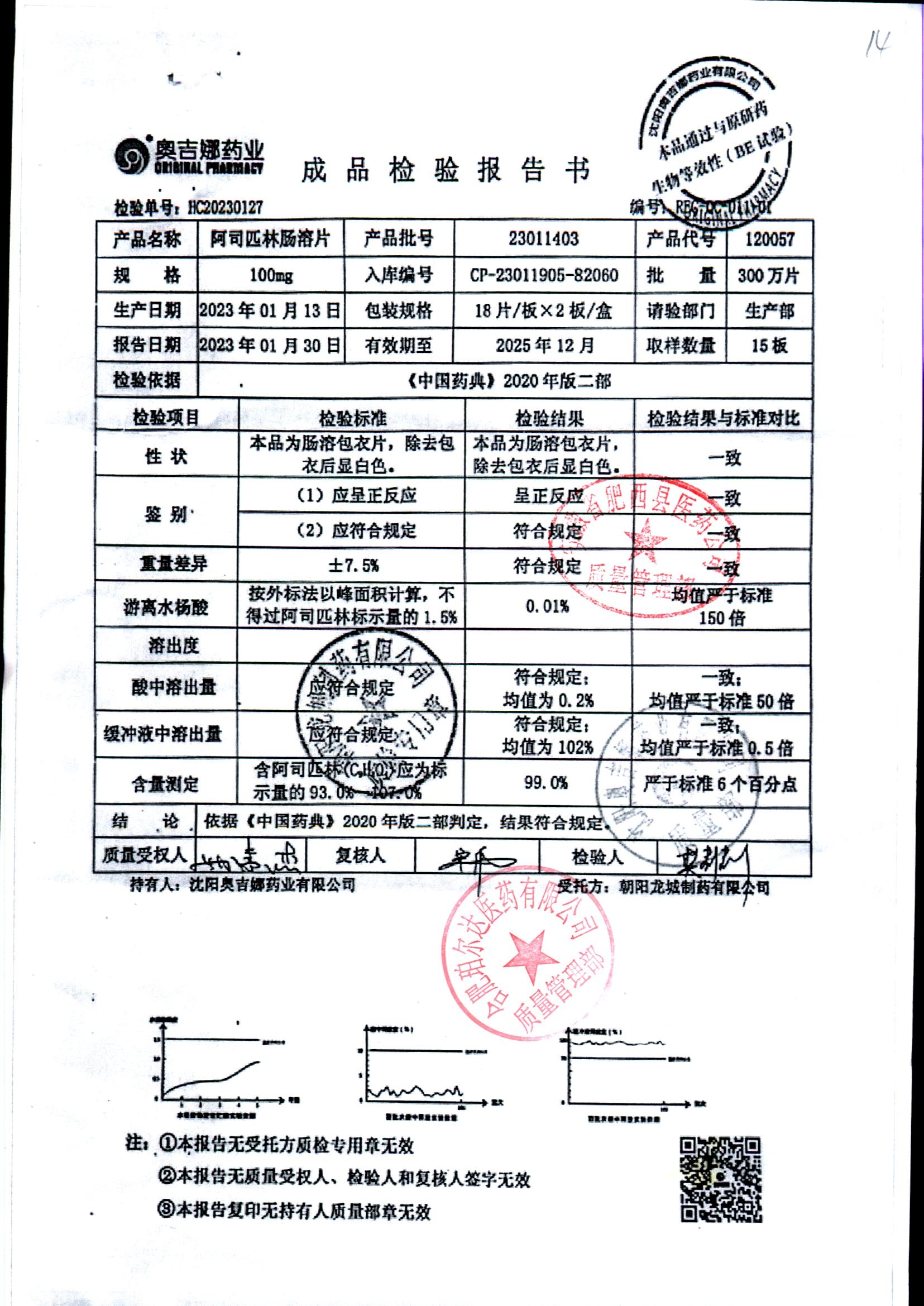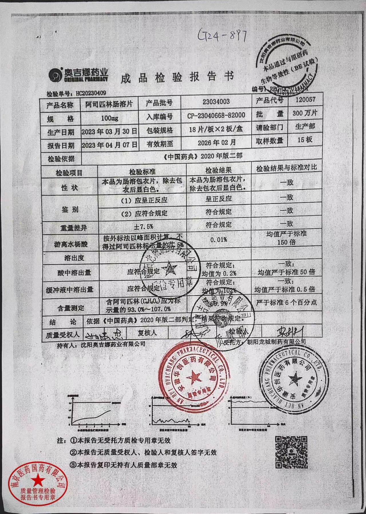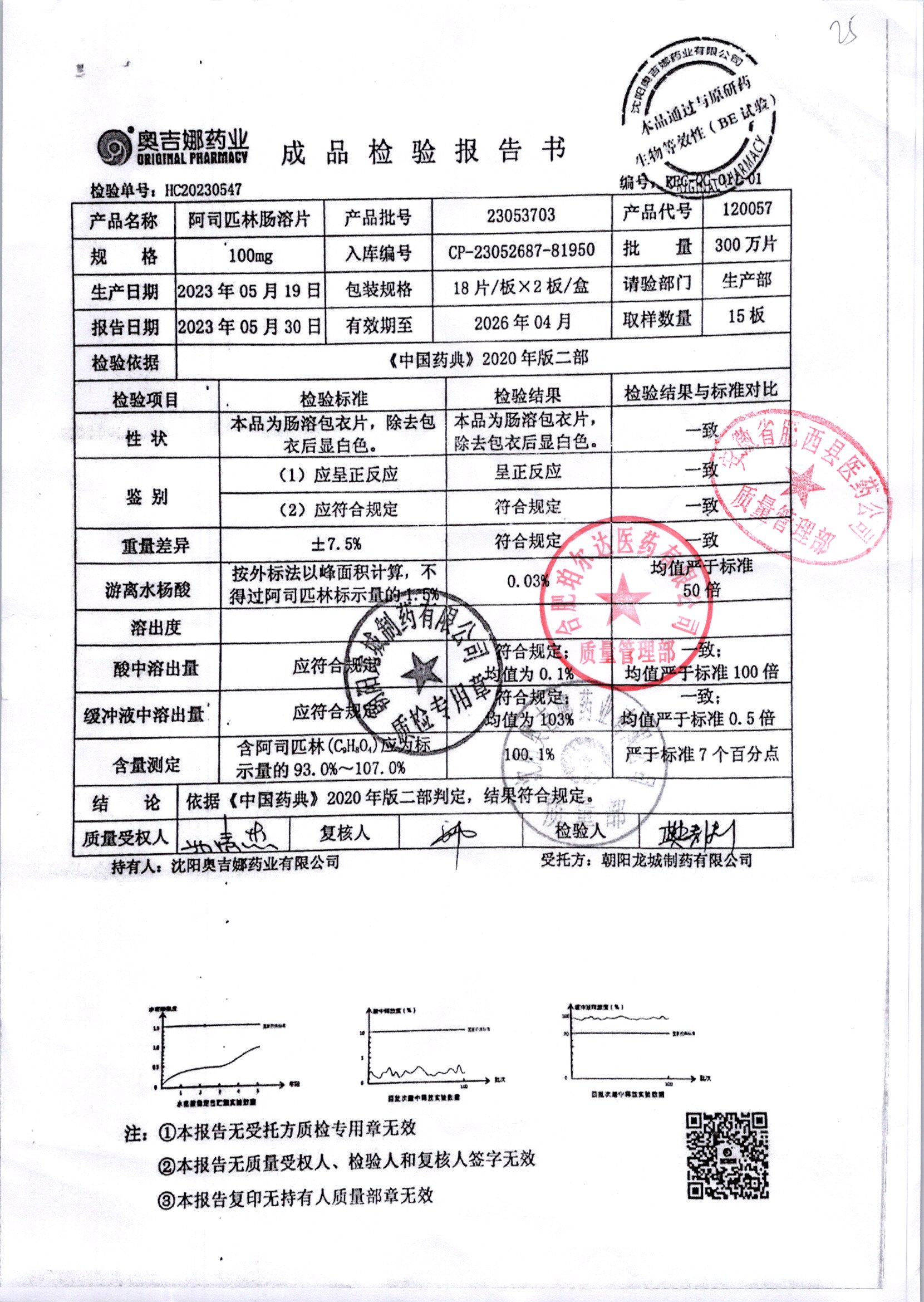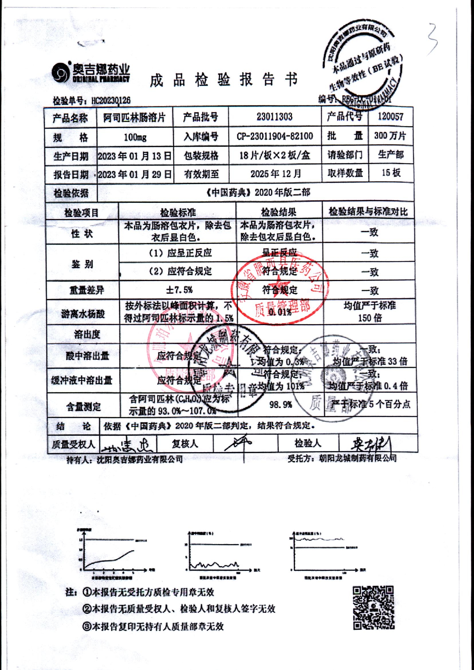 | 阿司匹林腸溶片 | 100mg*36片 | 23031903 | 查看詳情 |
