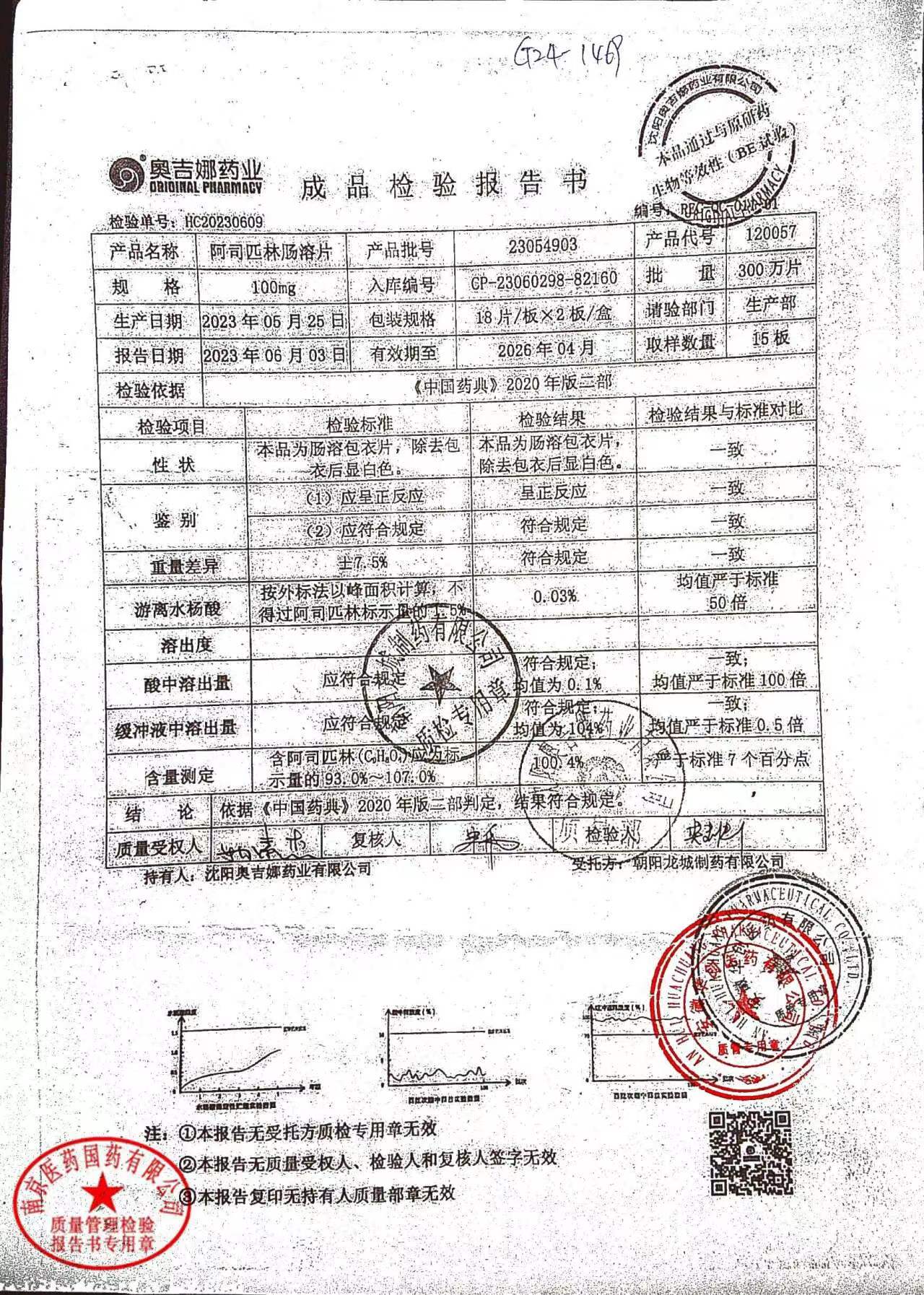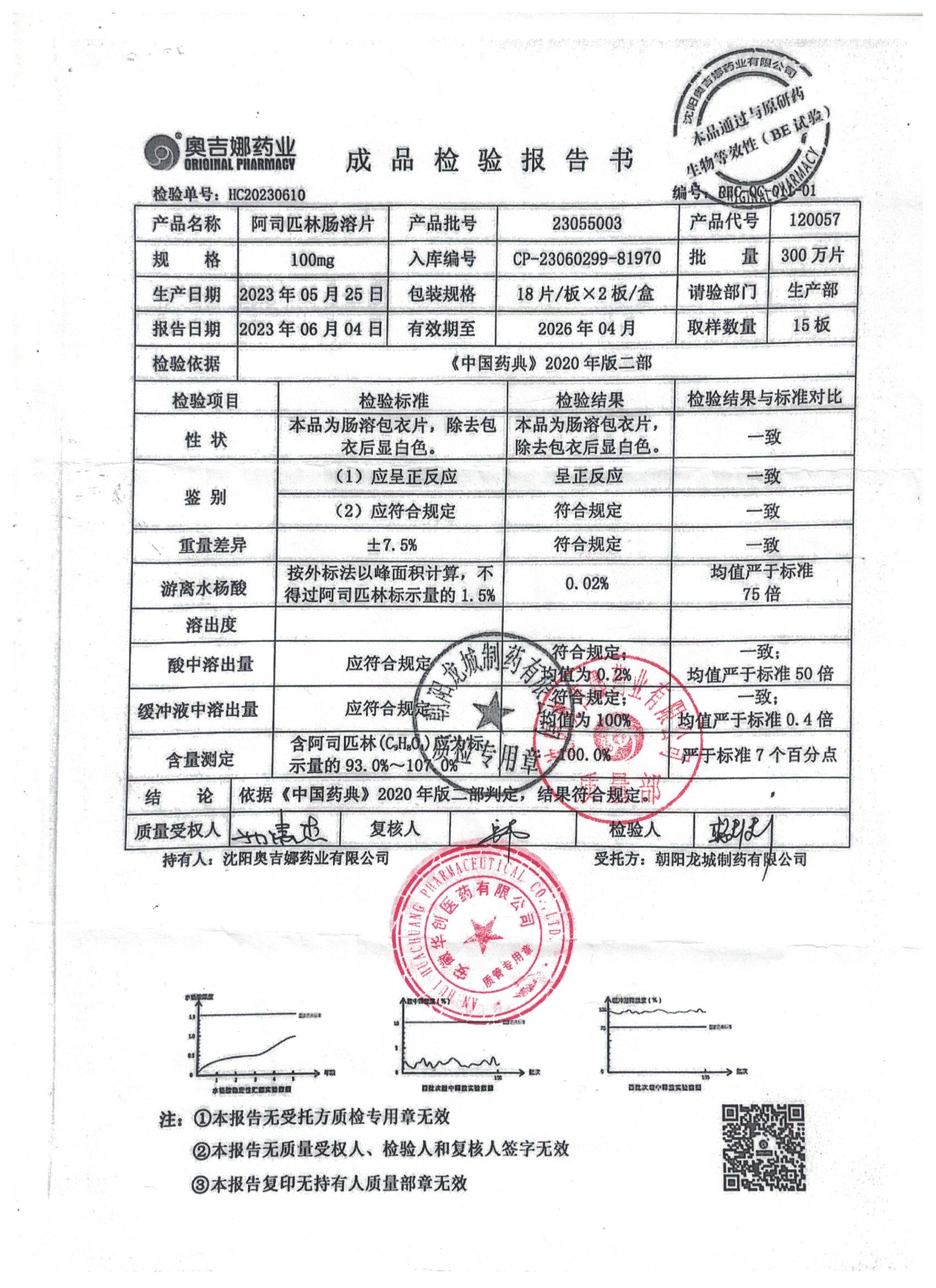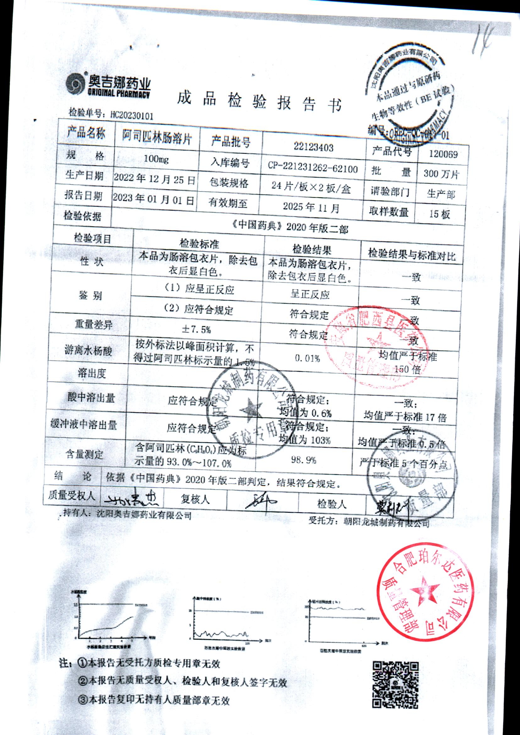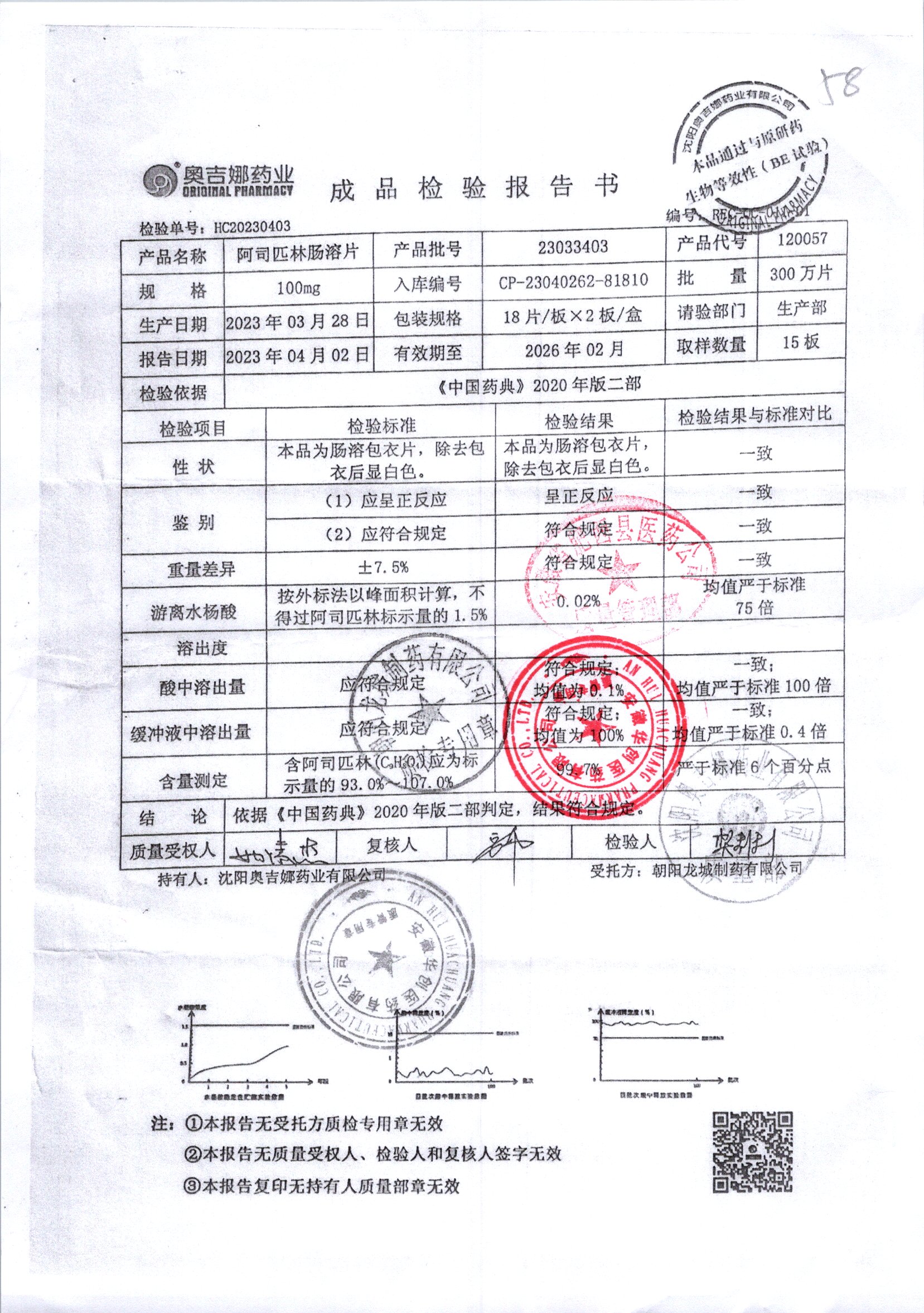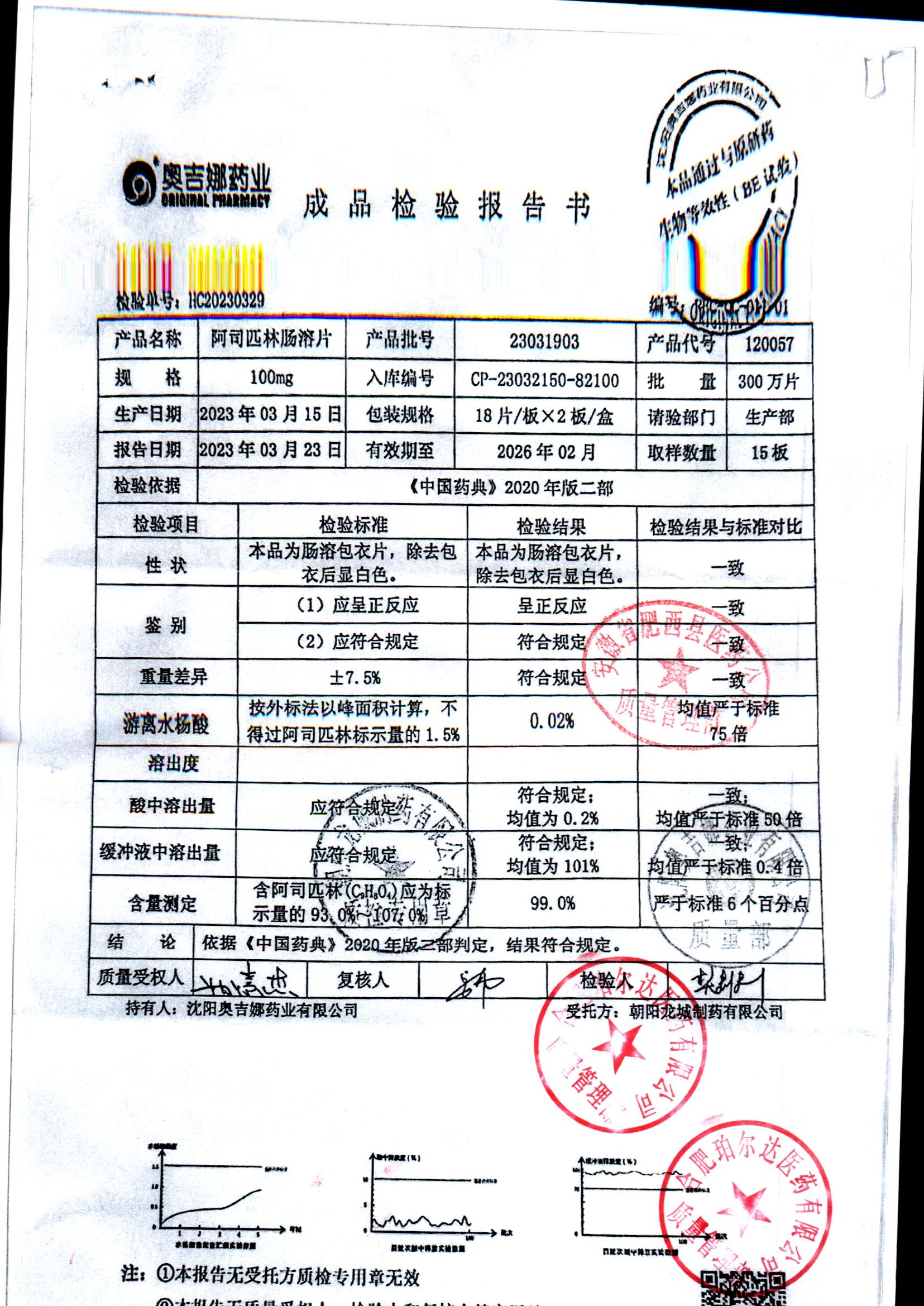 | 阿司匹林腸溶片 | 100mg*36片 | 23031903 | 查看詳情 |