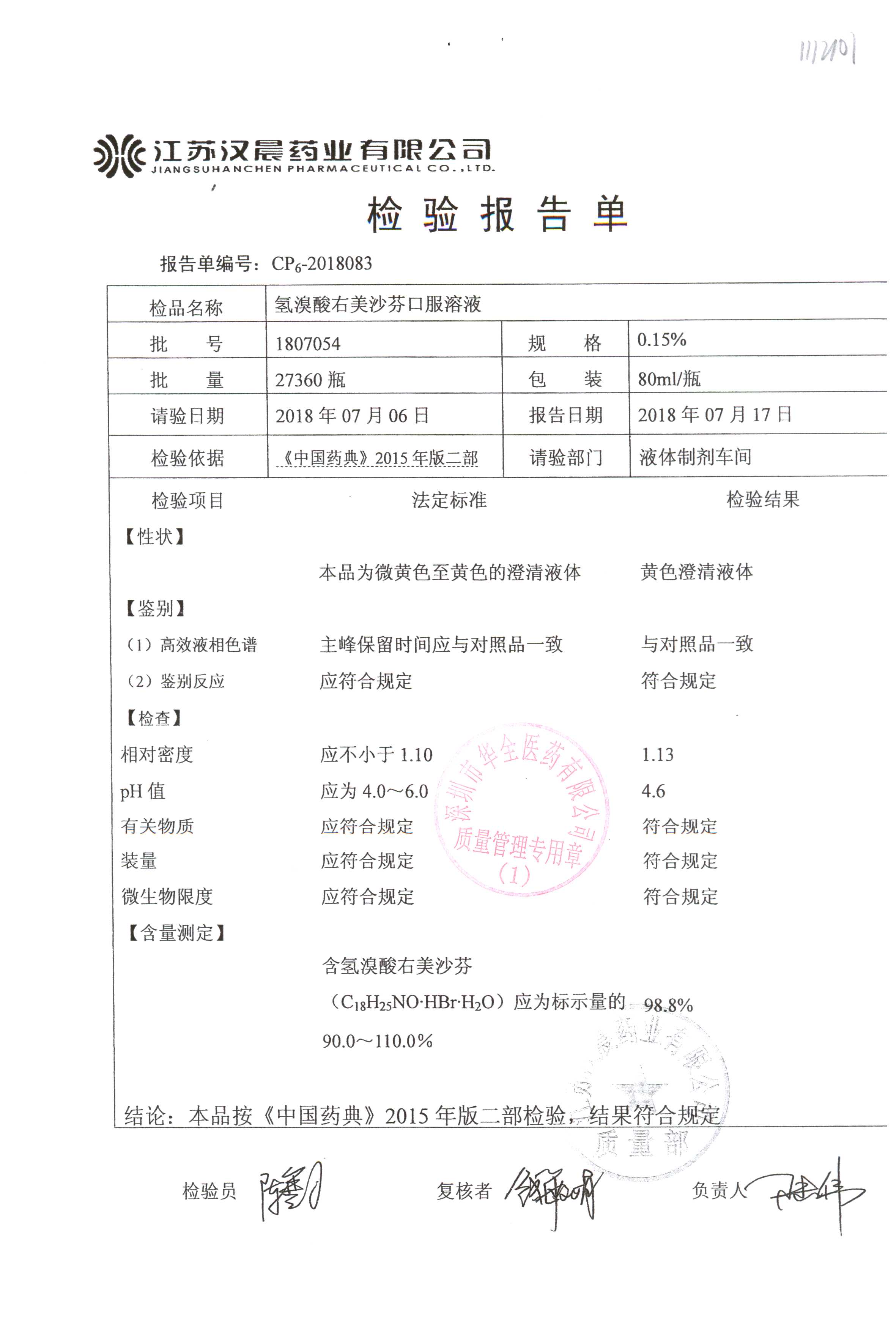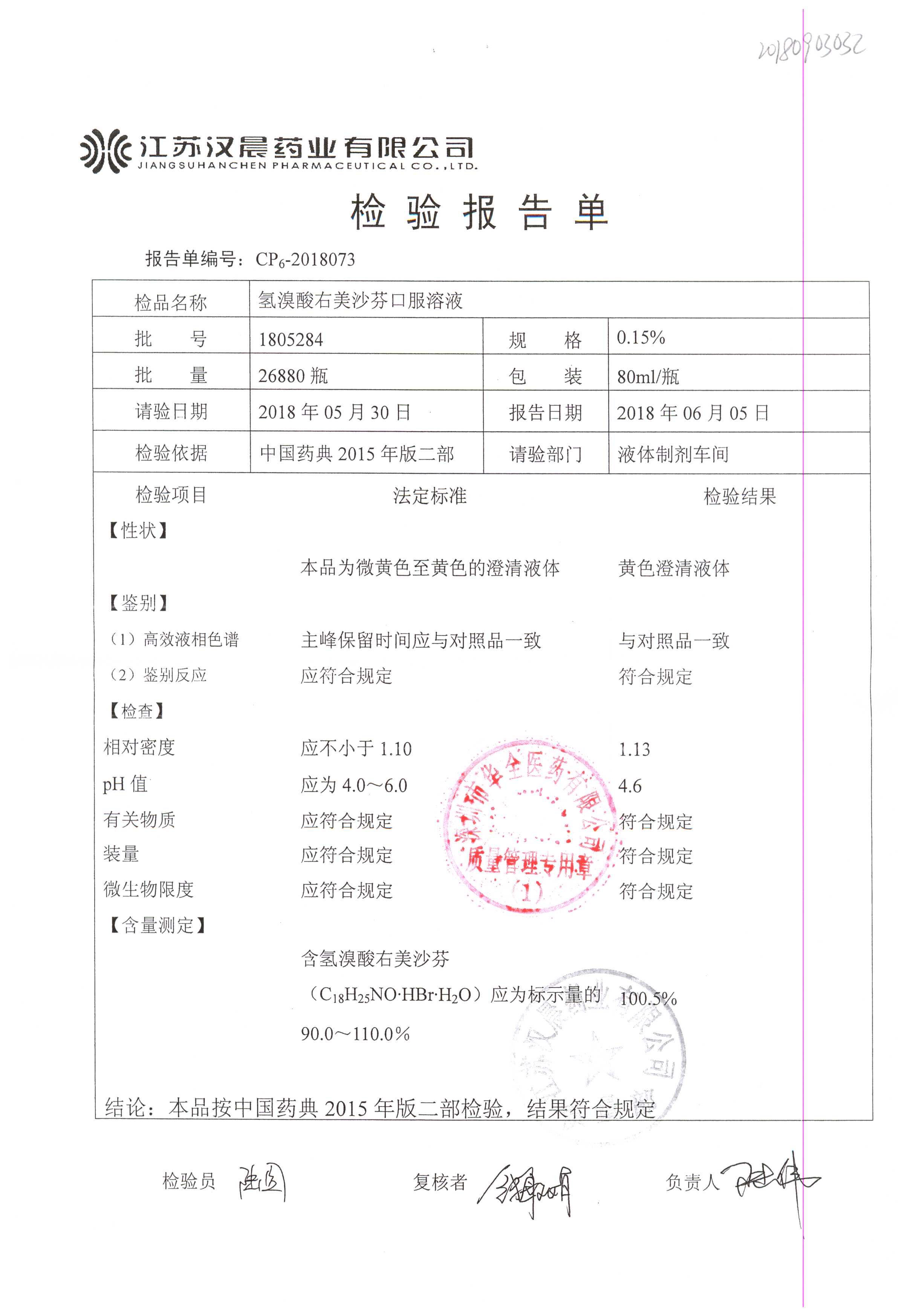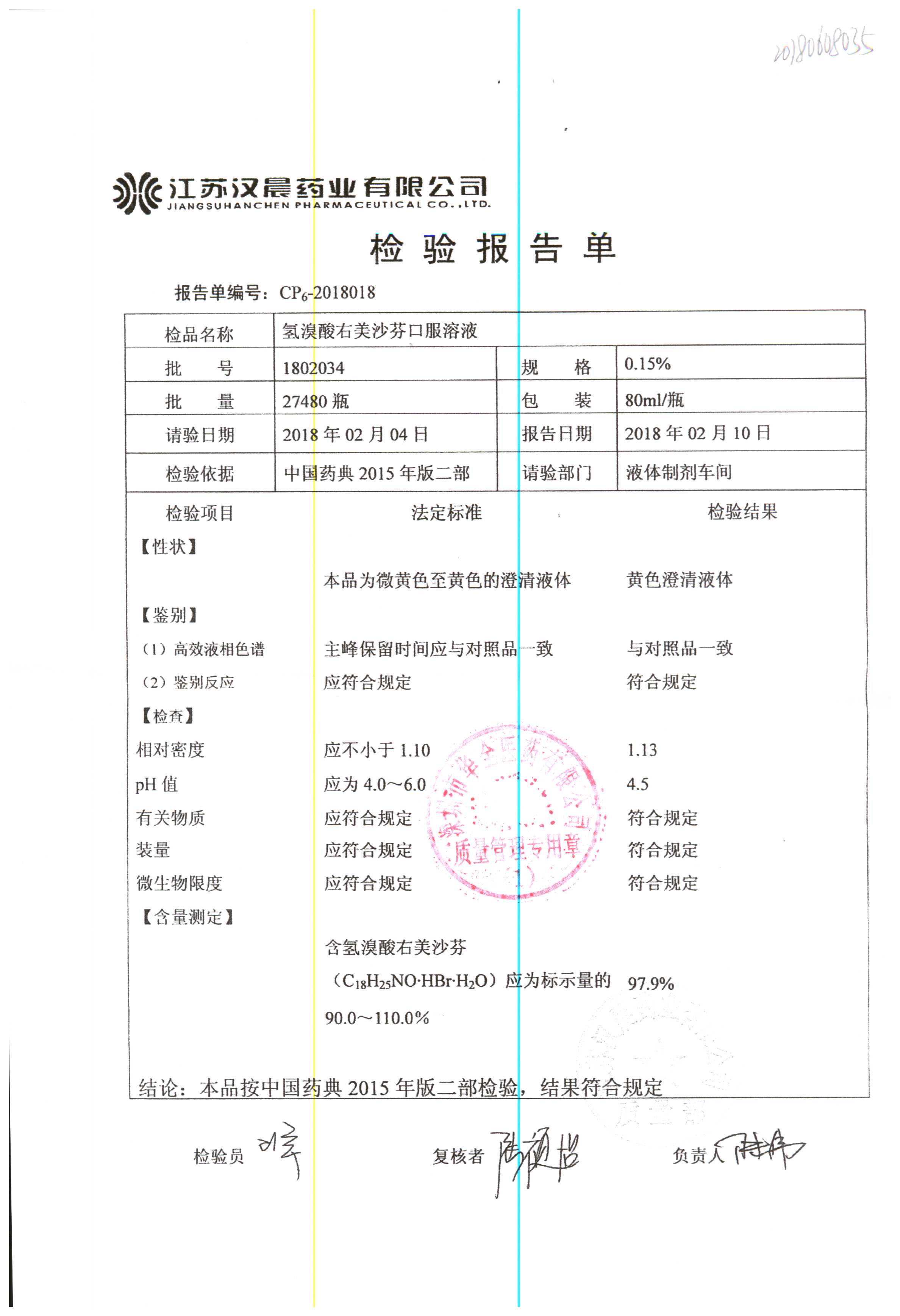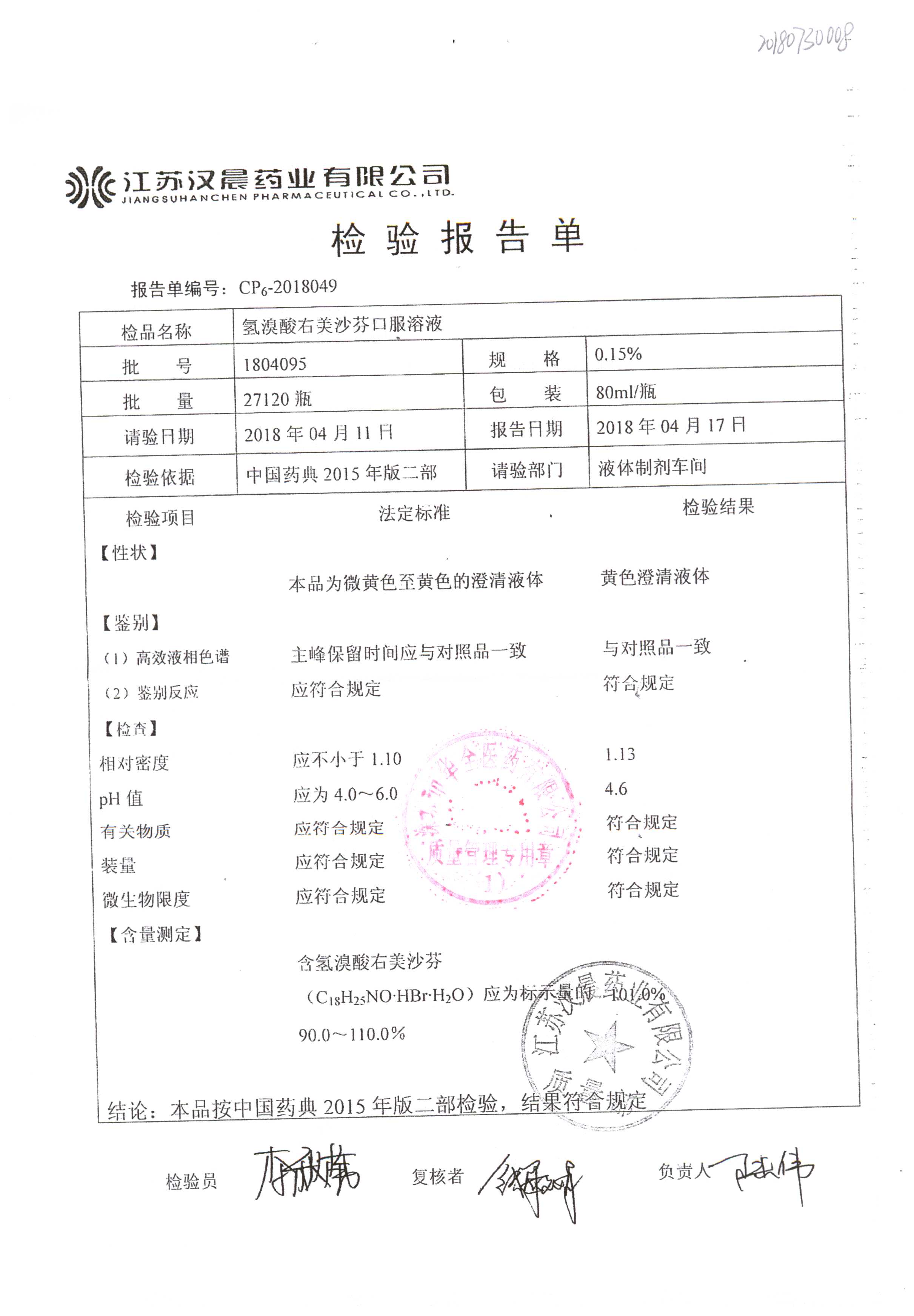 | 氫溴酸右美沙芬口服溶液 | 80ml | 1801214 | 查看詳情 |
