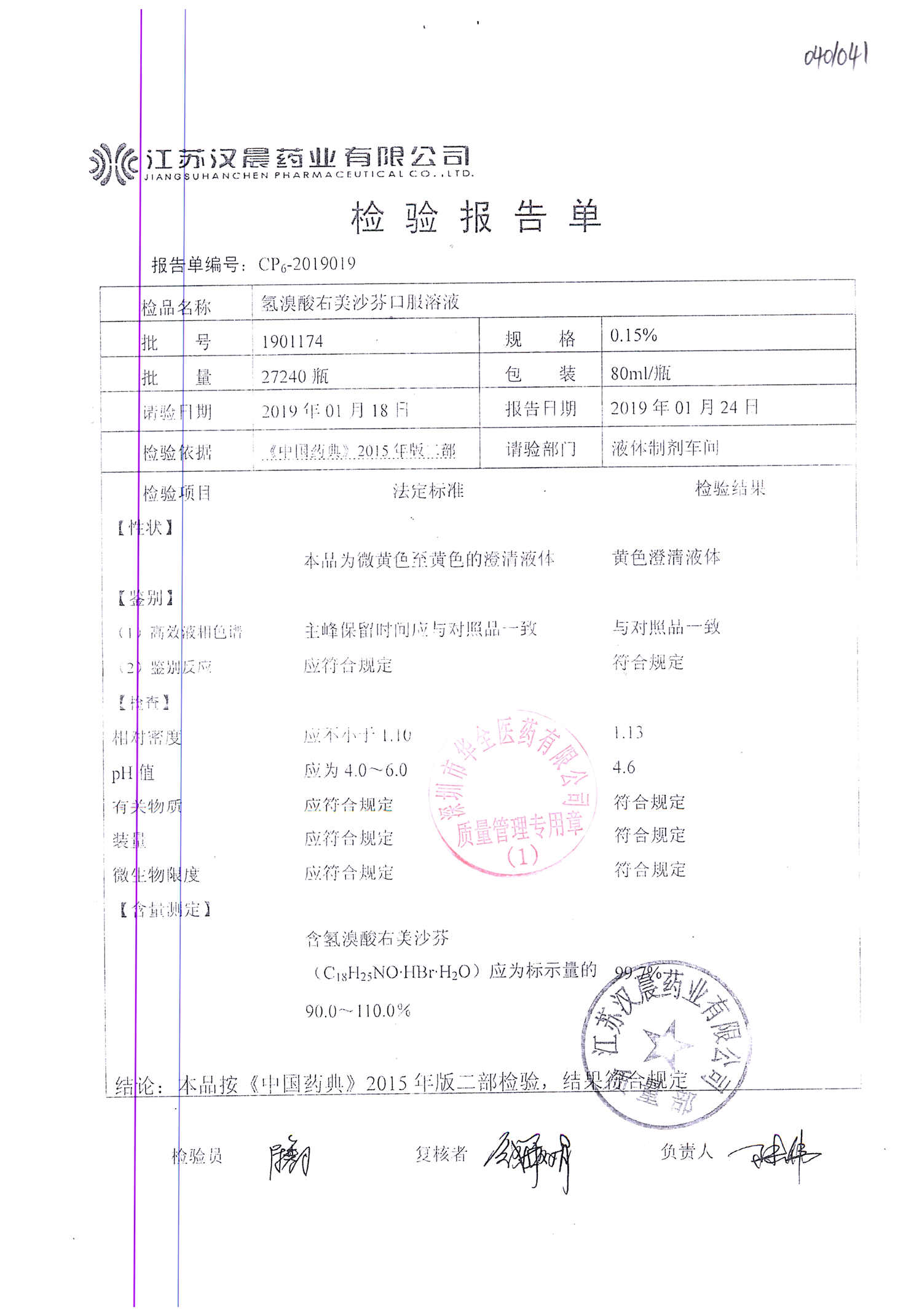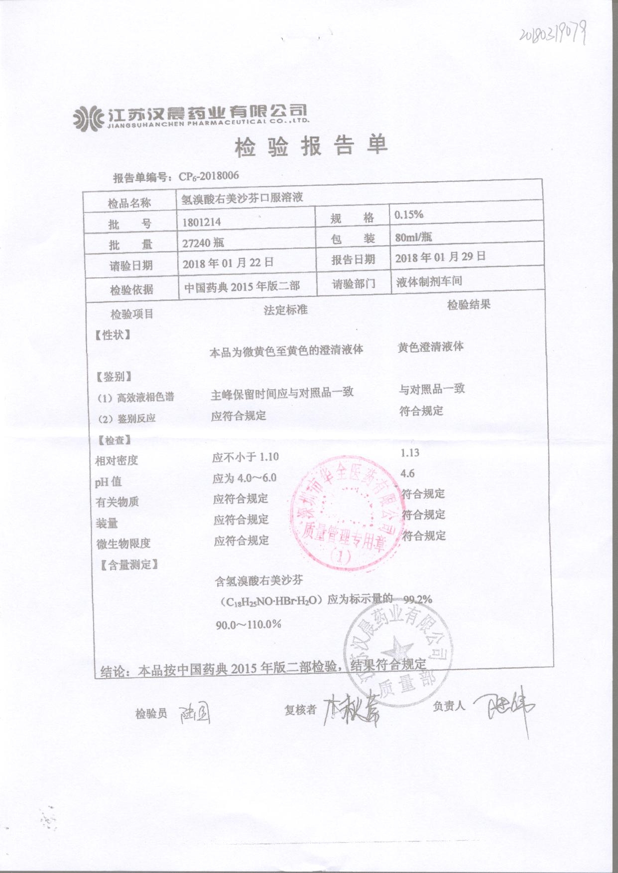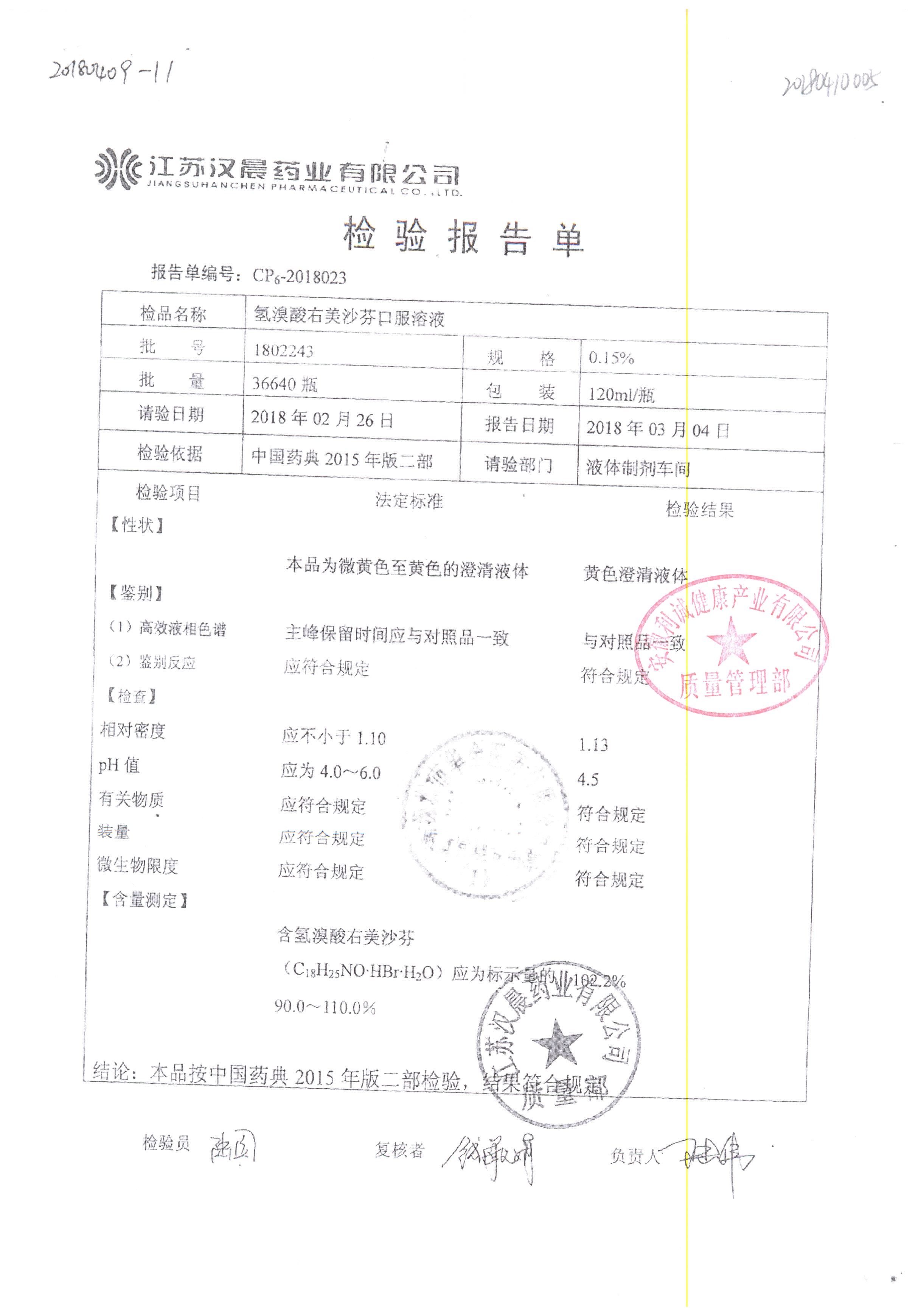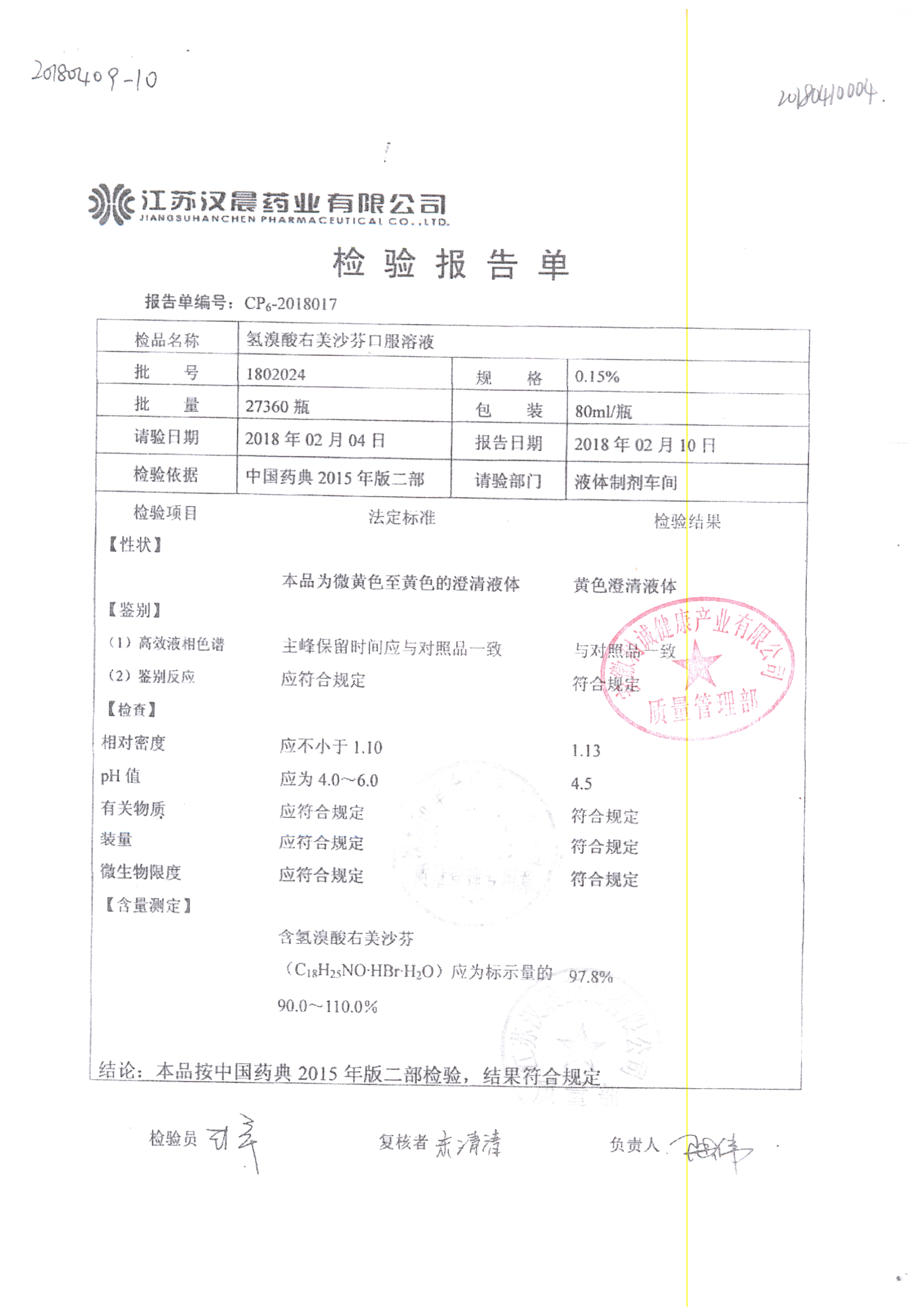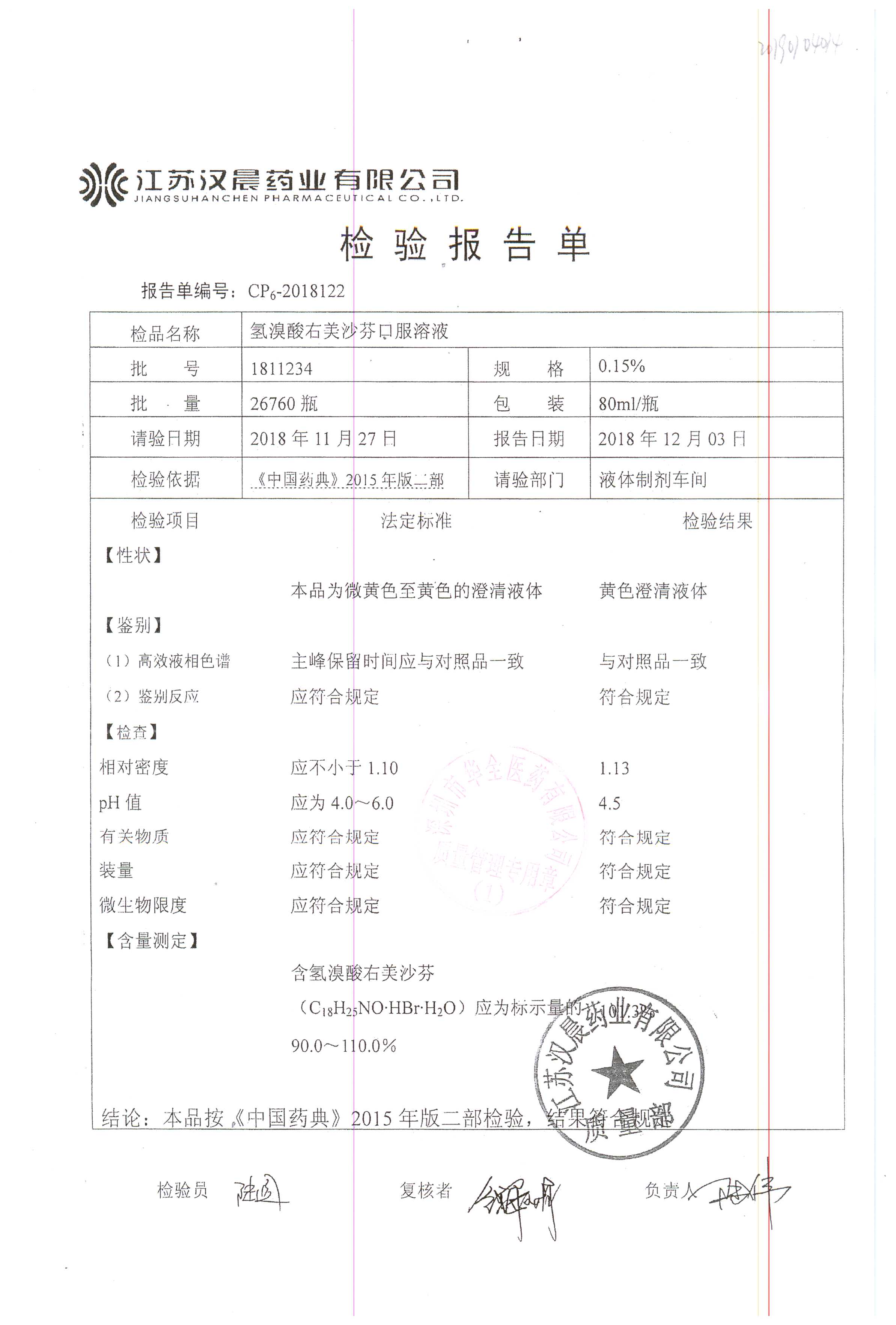 | 氫溴酸右美沙芬口服溶液 | 80ml | 1801214 | 查看詳情 |