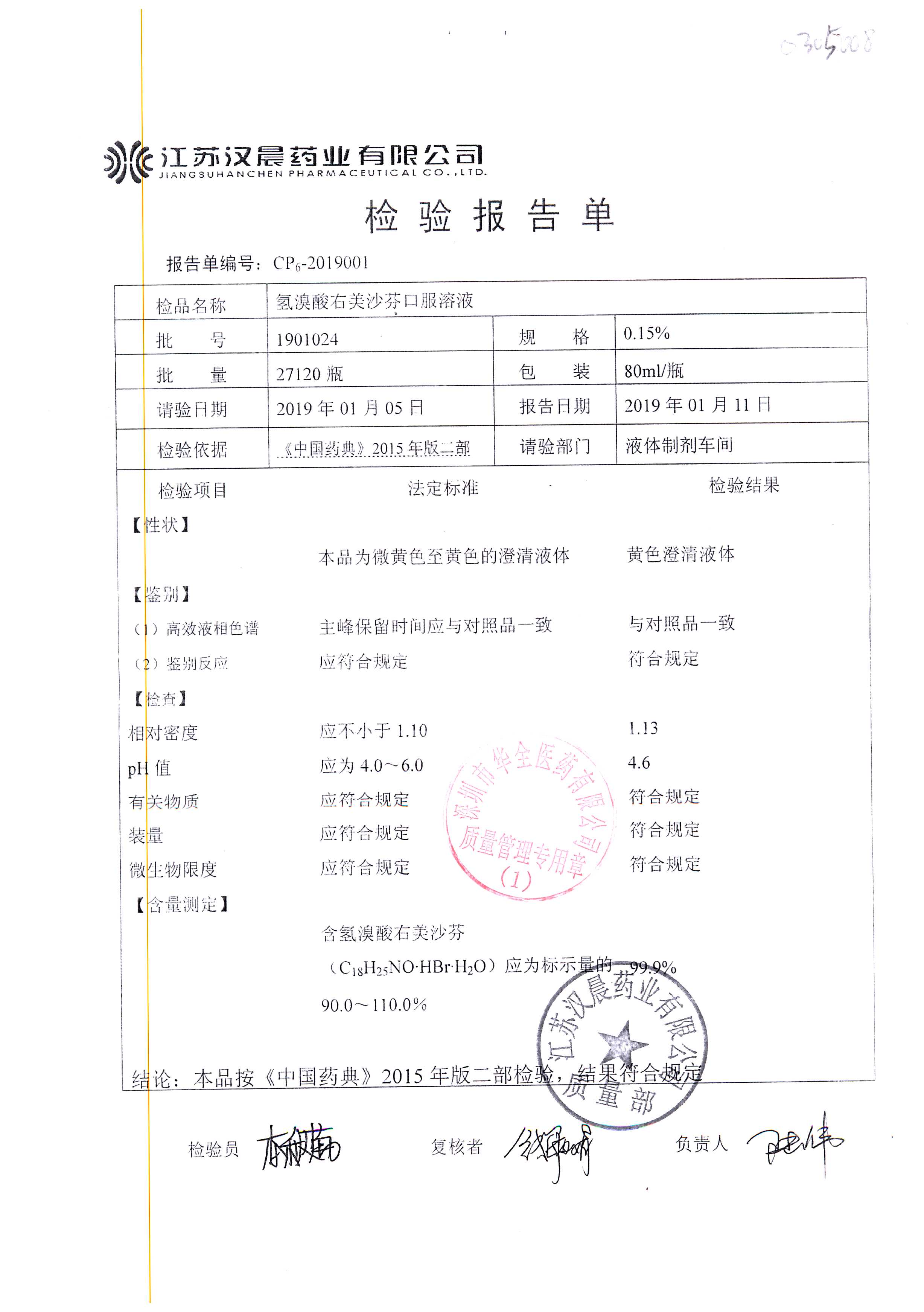 | 氫溴酸右美沙芬口服溶液 | 80ml | 1901024 | 查看詳情 |