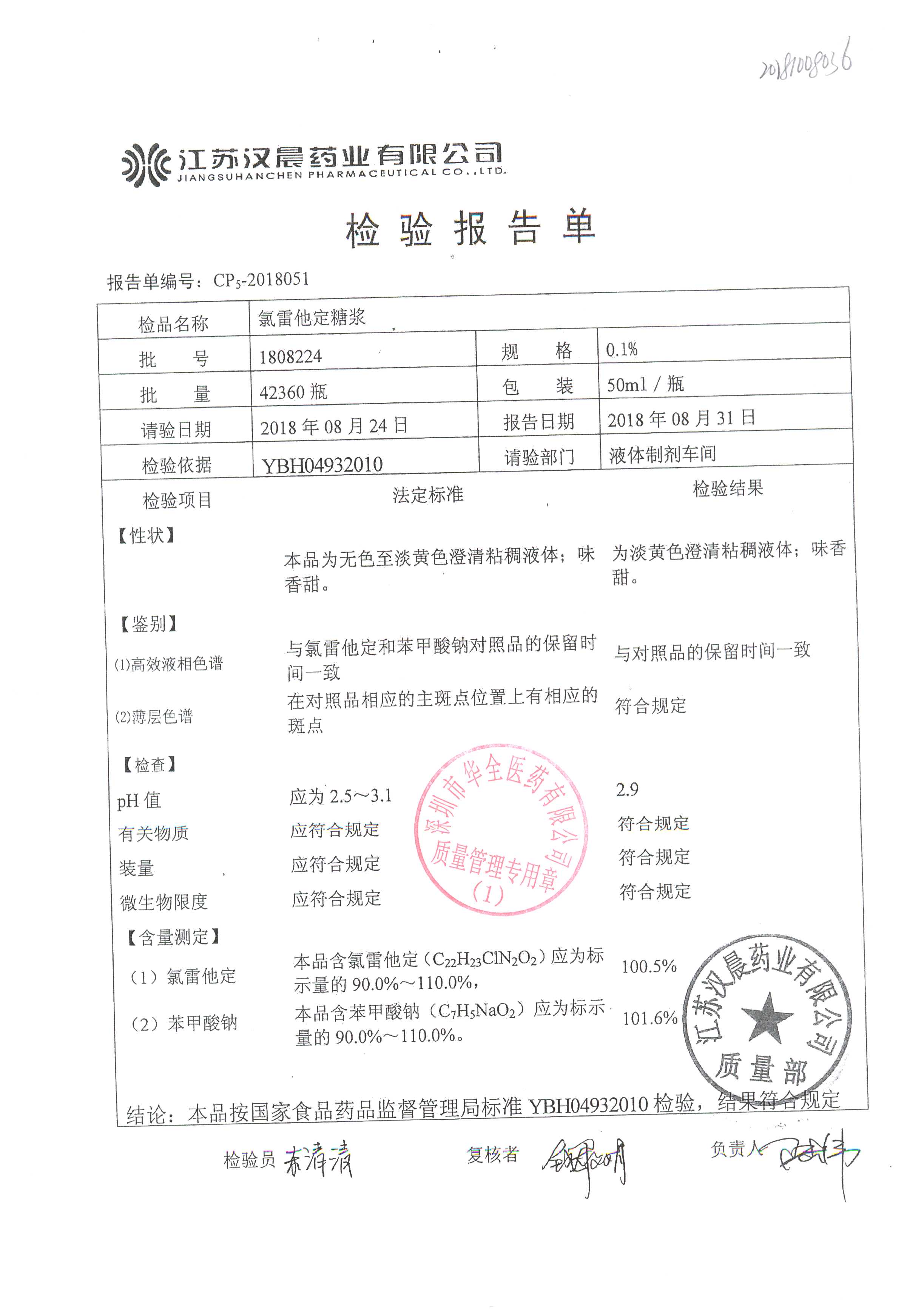 | 氯雷他定糖漿 | 50ml | 1811224 | 查看詳情 |