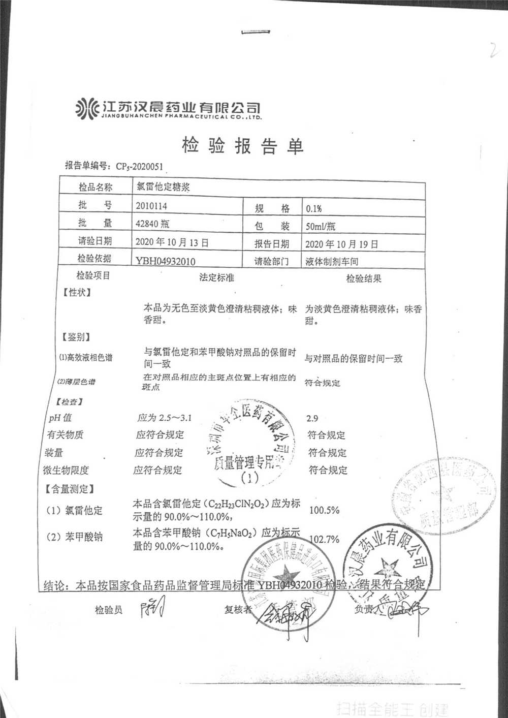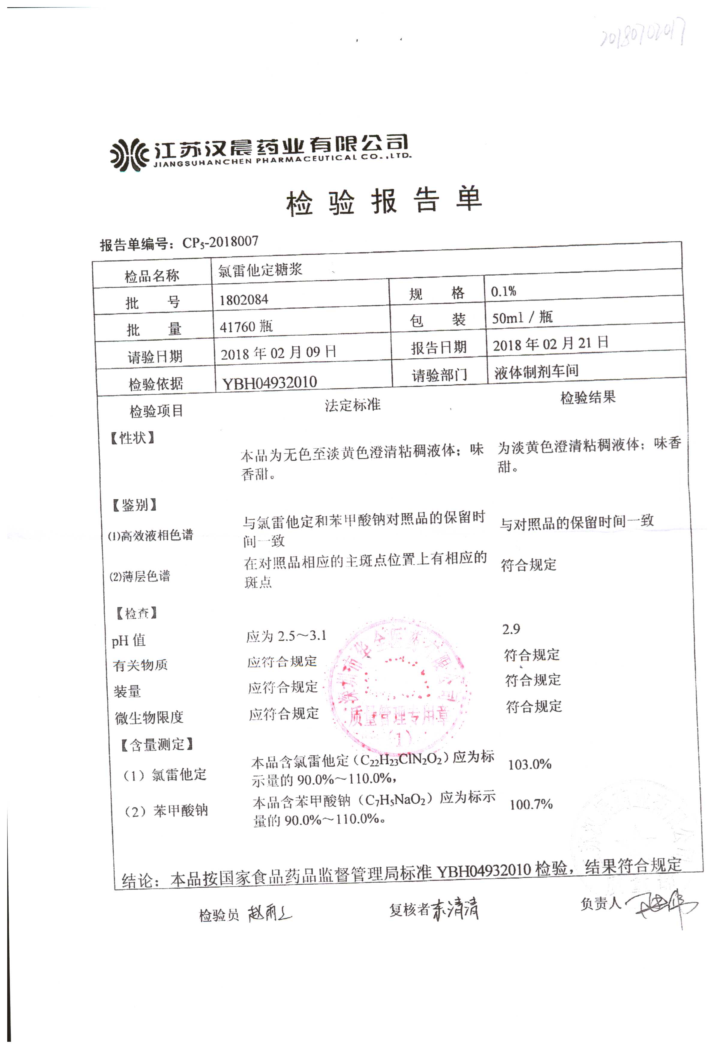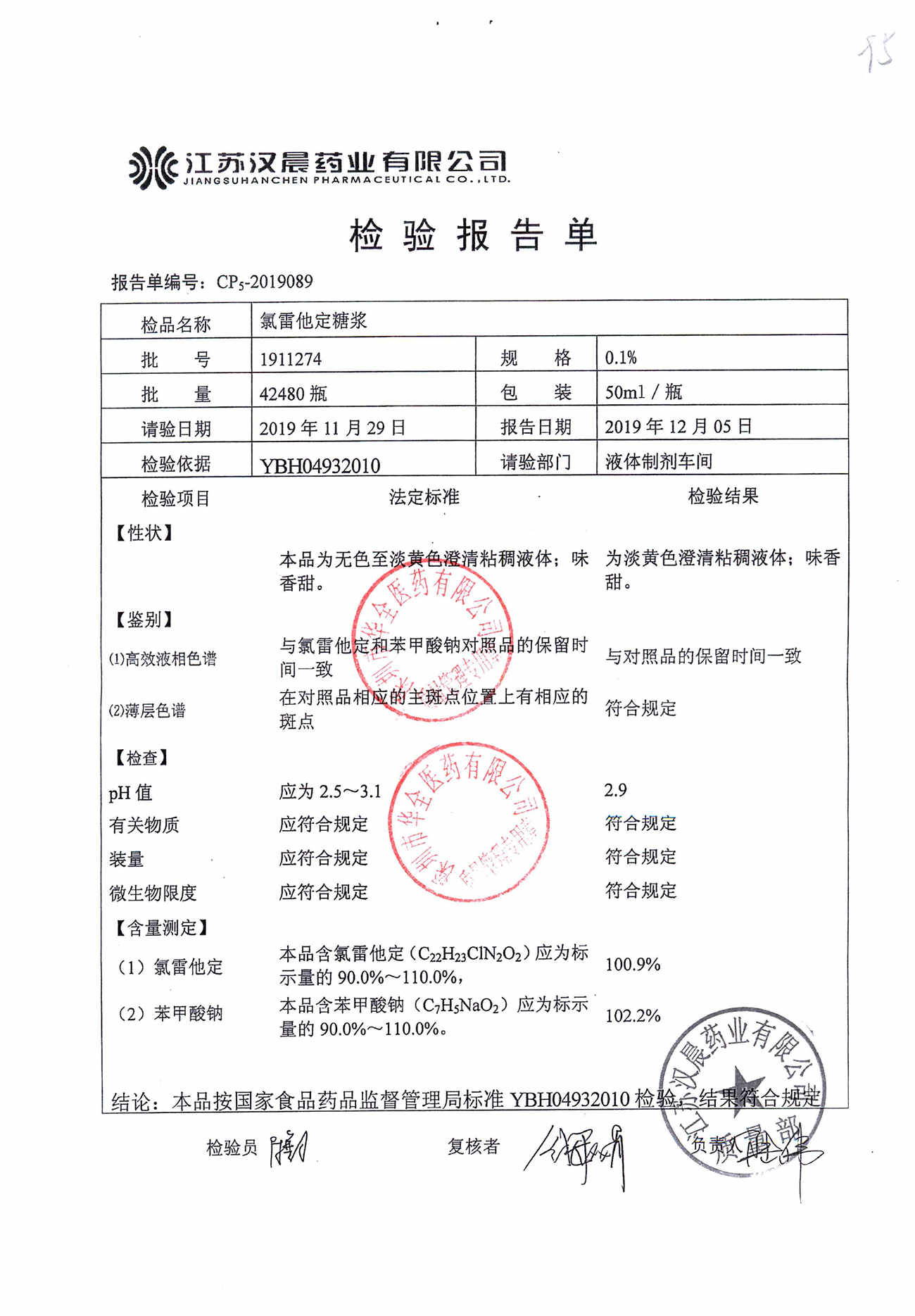 | 氯雷他定糖漿 | 50ml | 2010114 | 查看詳情 |