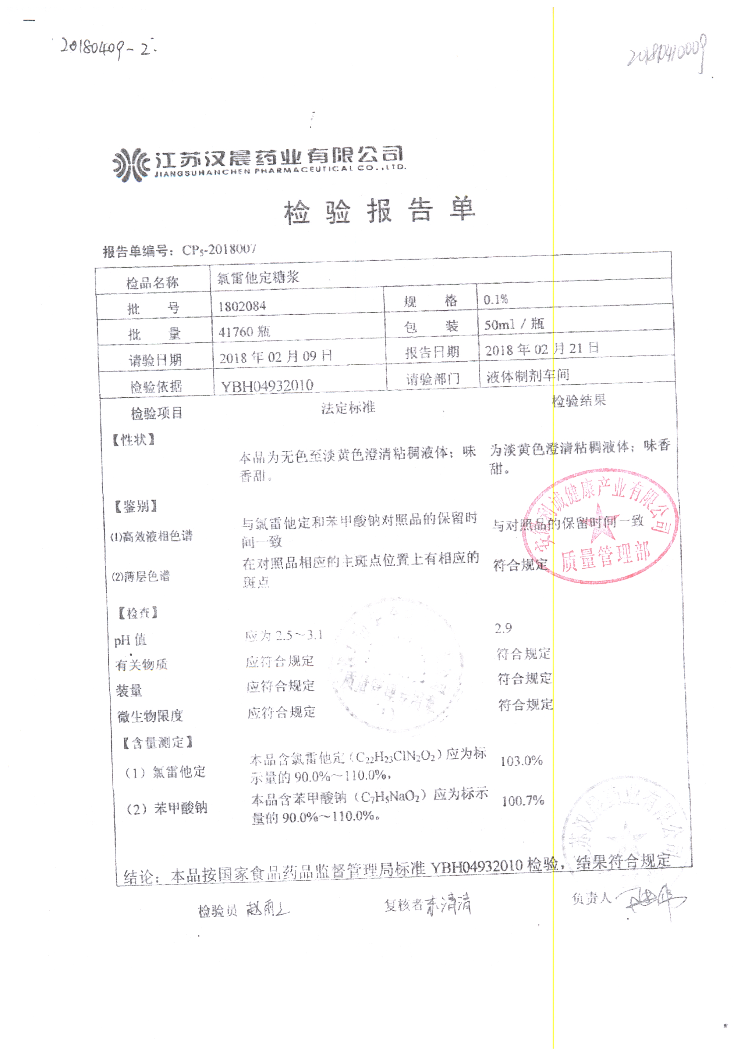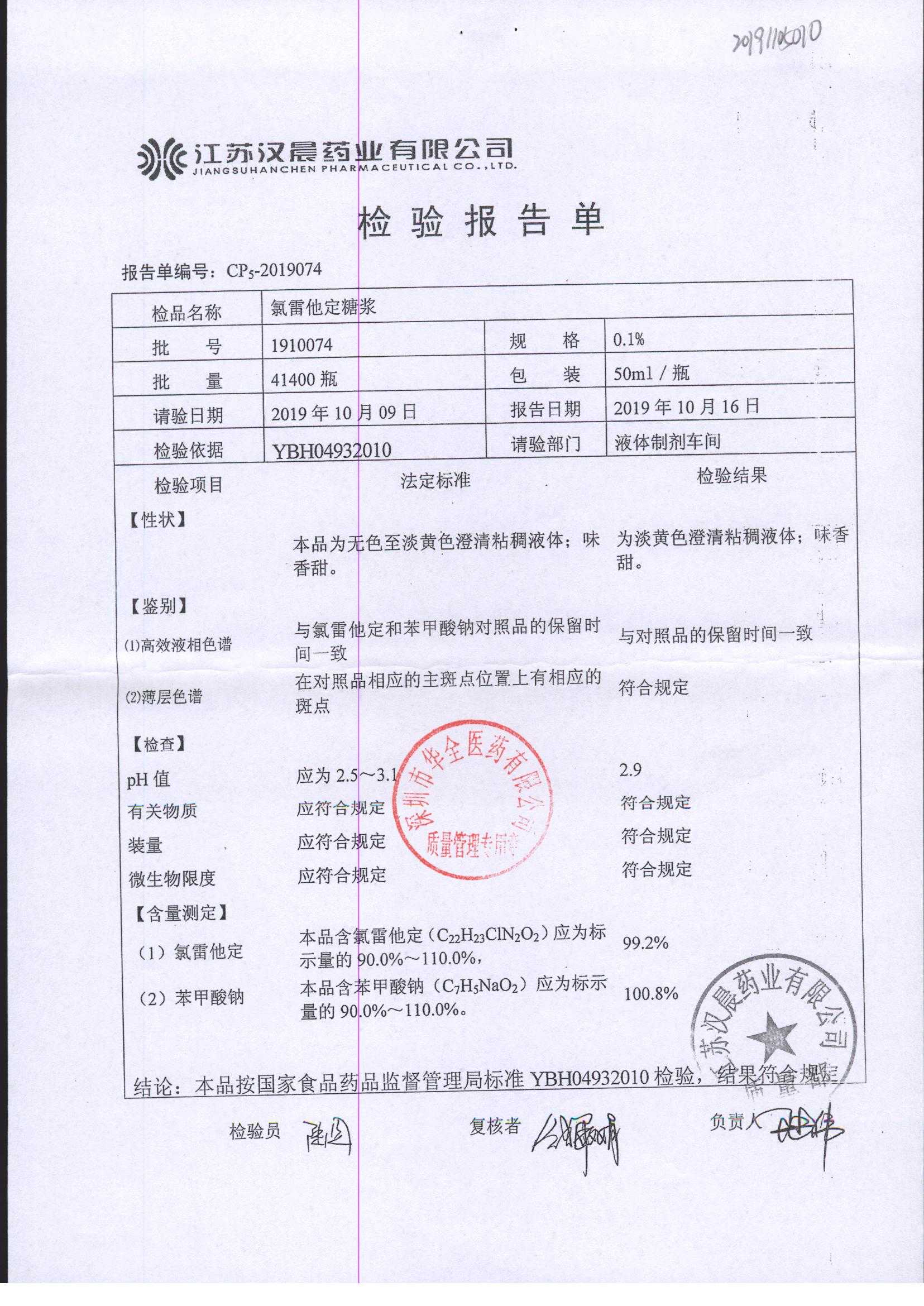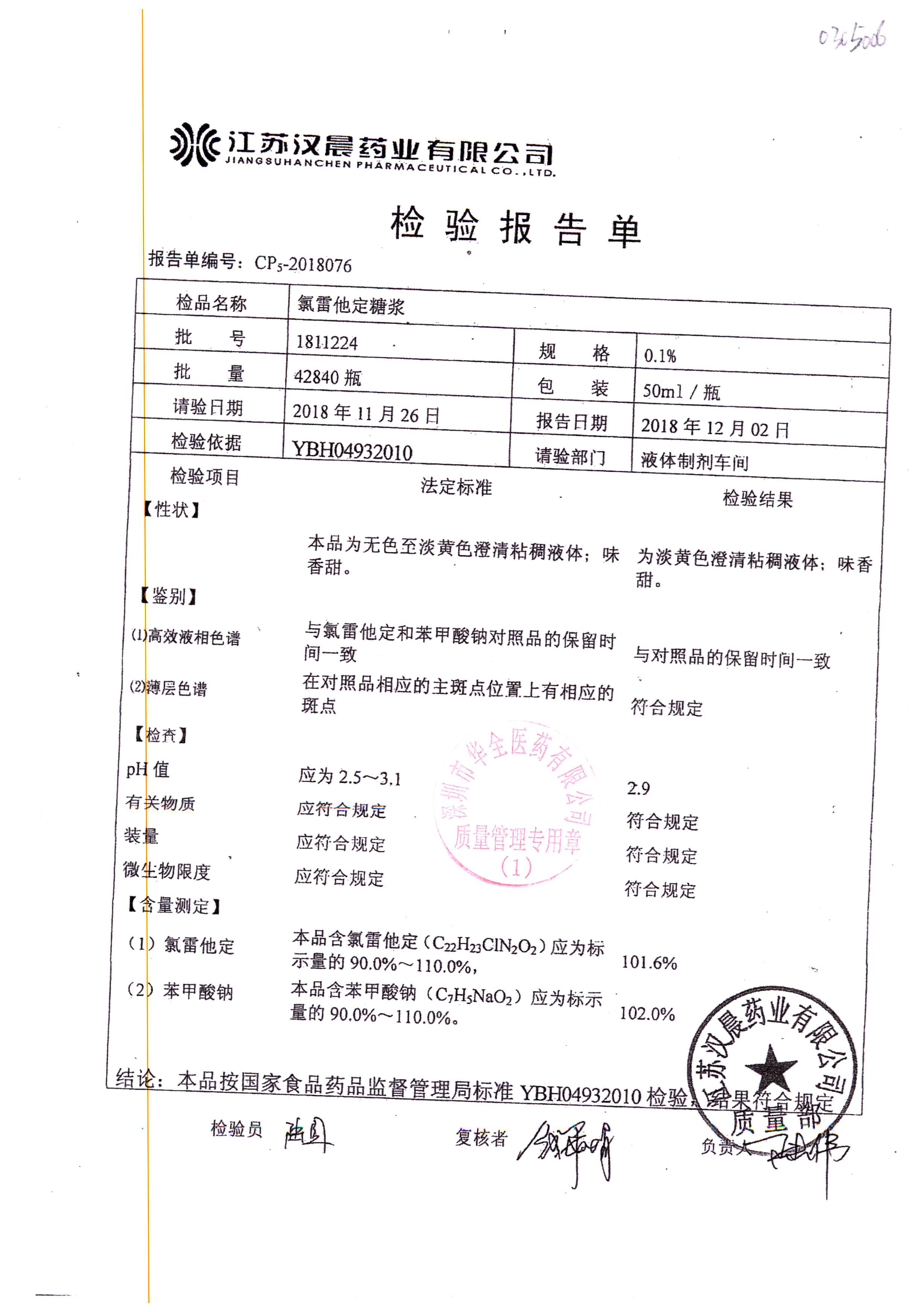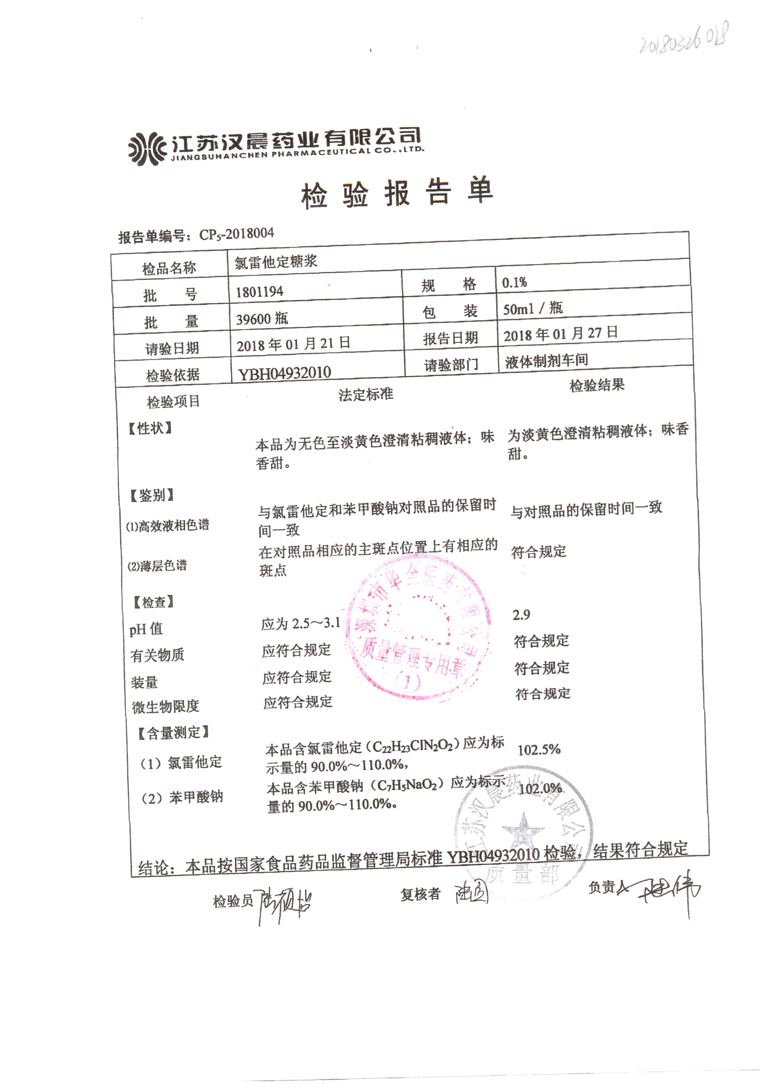 | 氯雷他定糖漿 | 50ml | 2010114 | 查看詳情 |