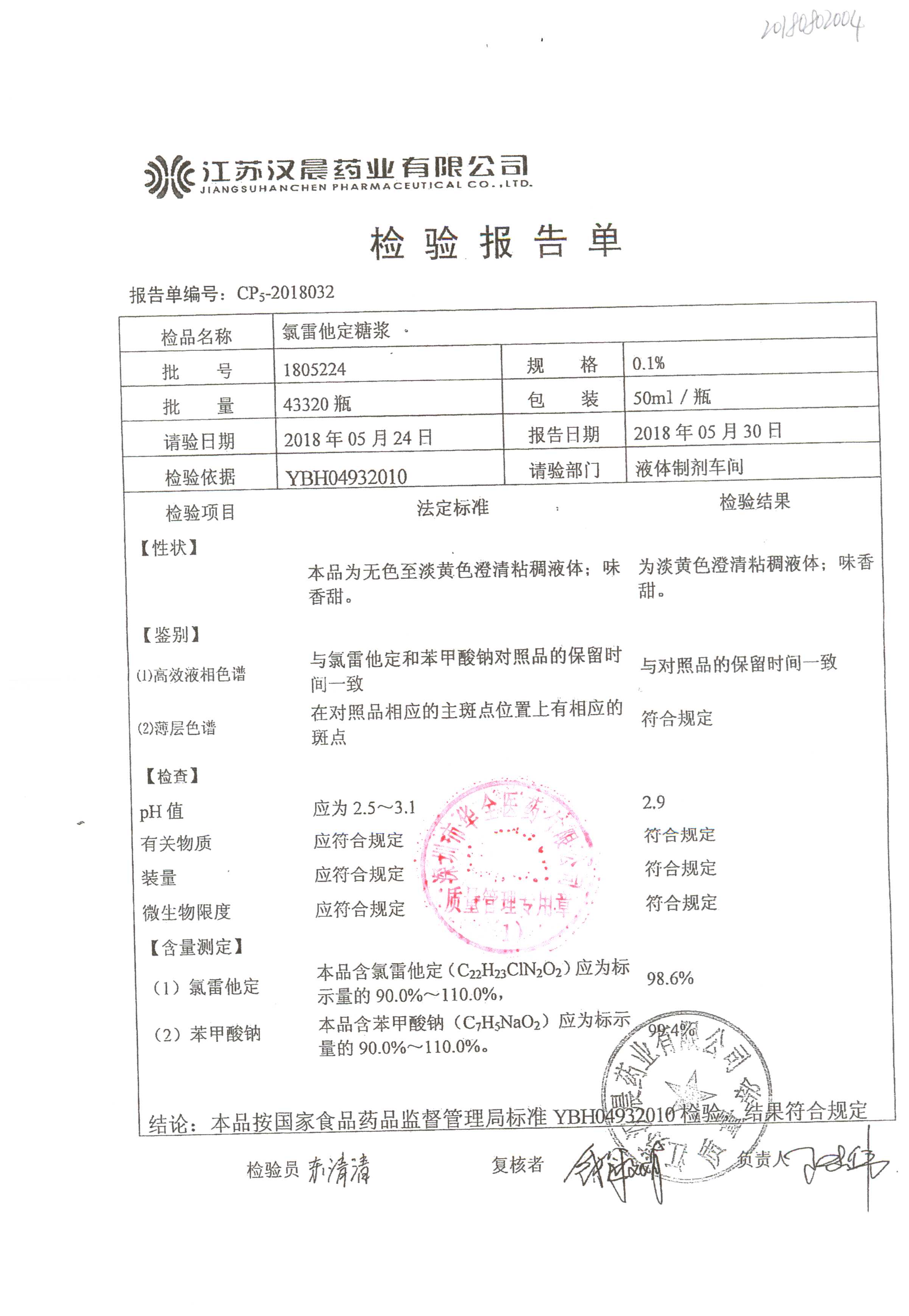 | 氯雷他定糖漿 | 50ml | 1805224 | 查看詳情 |