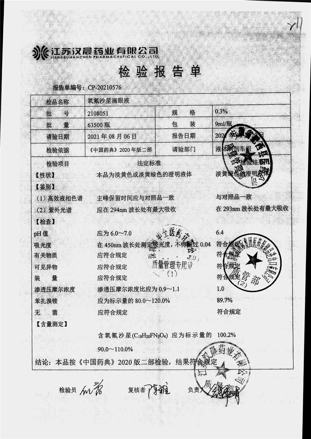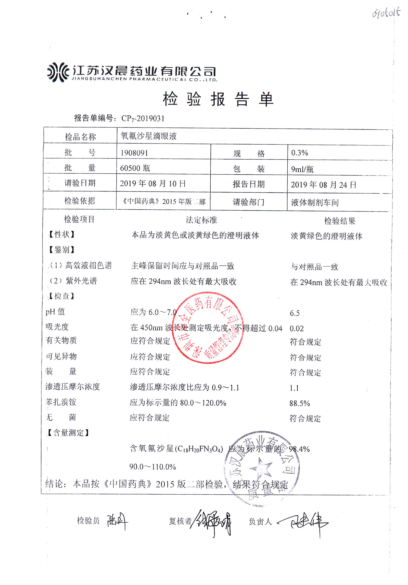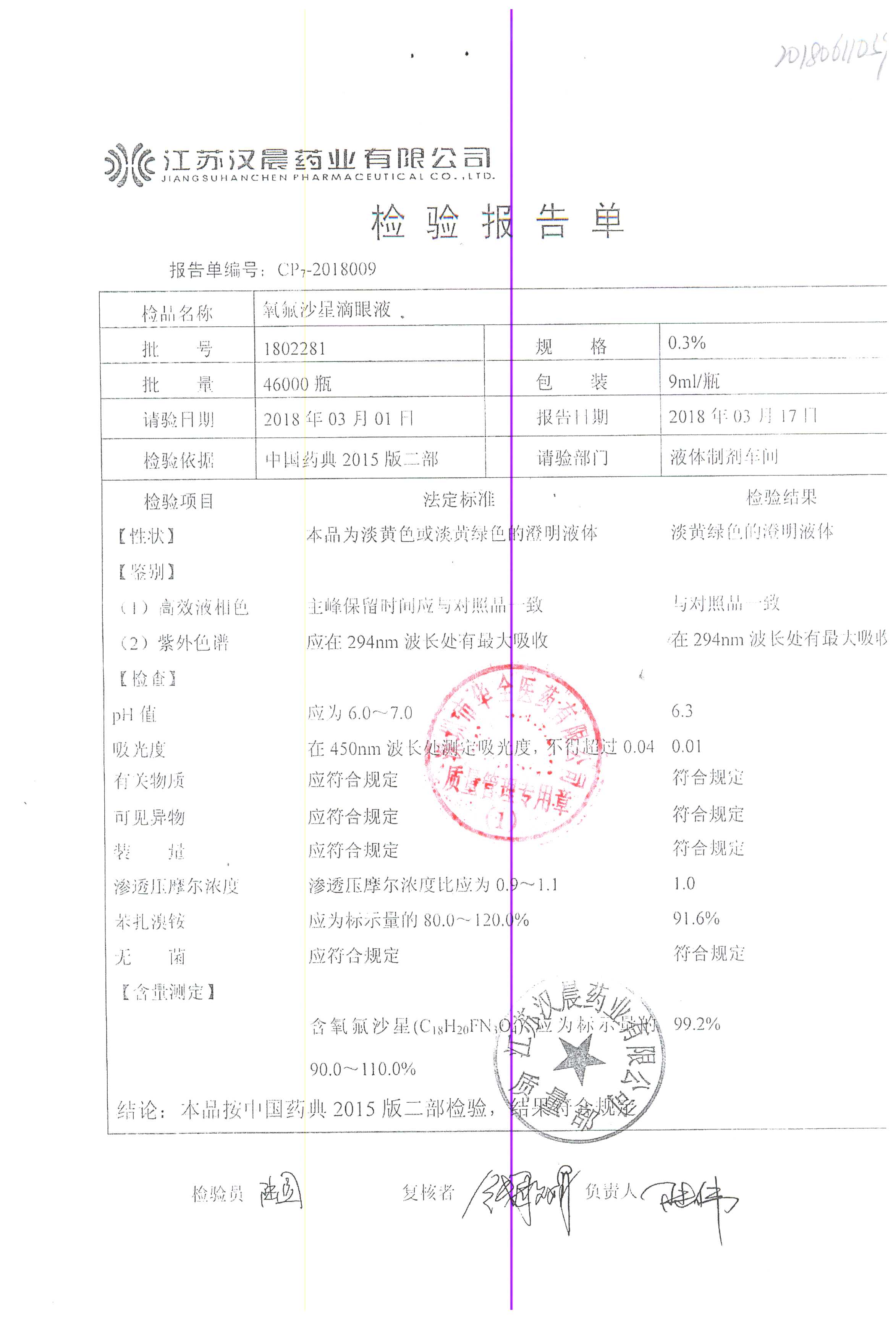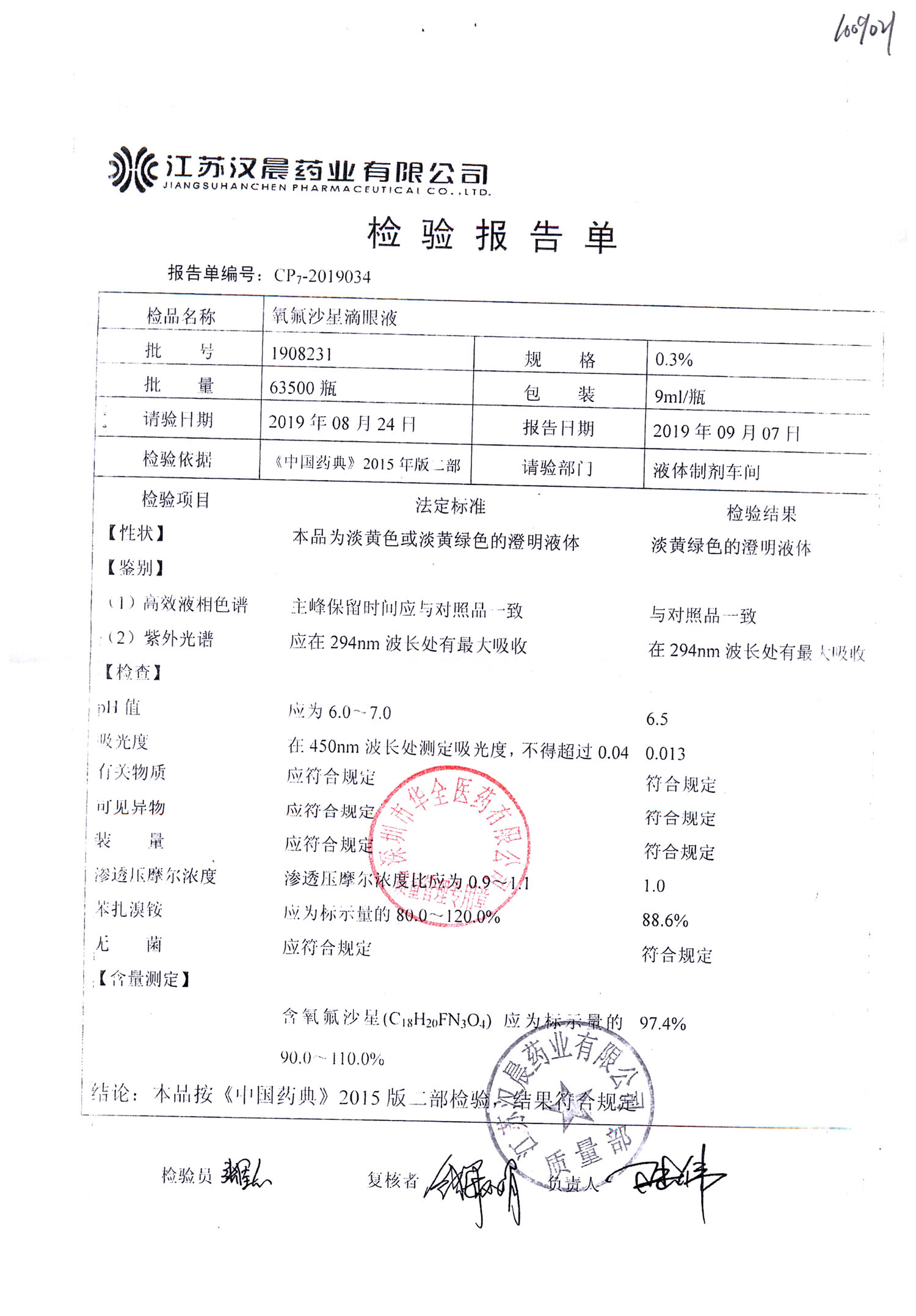 | 氧氟沙星滴眼液 | 9ml | 2008031 | 查看詳情 |
