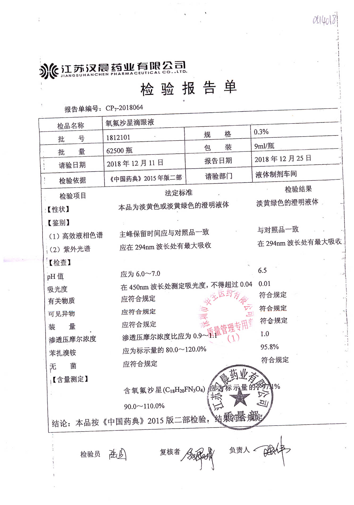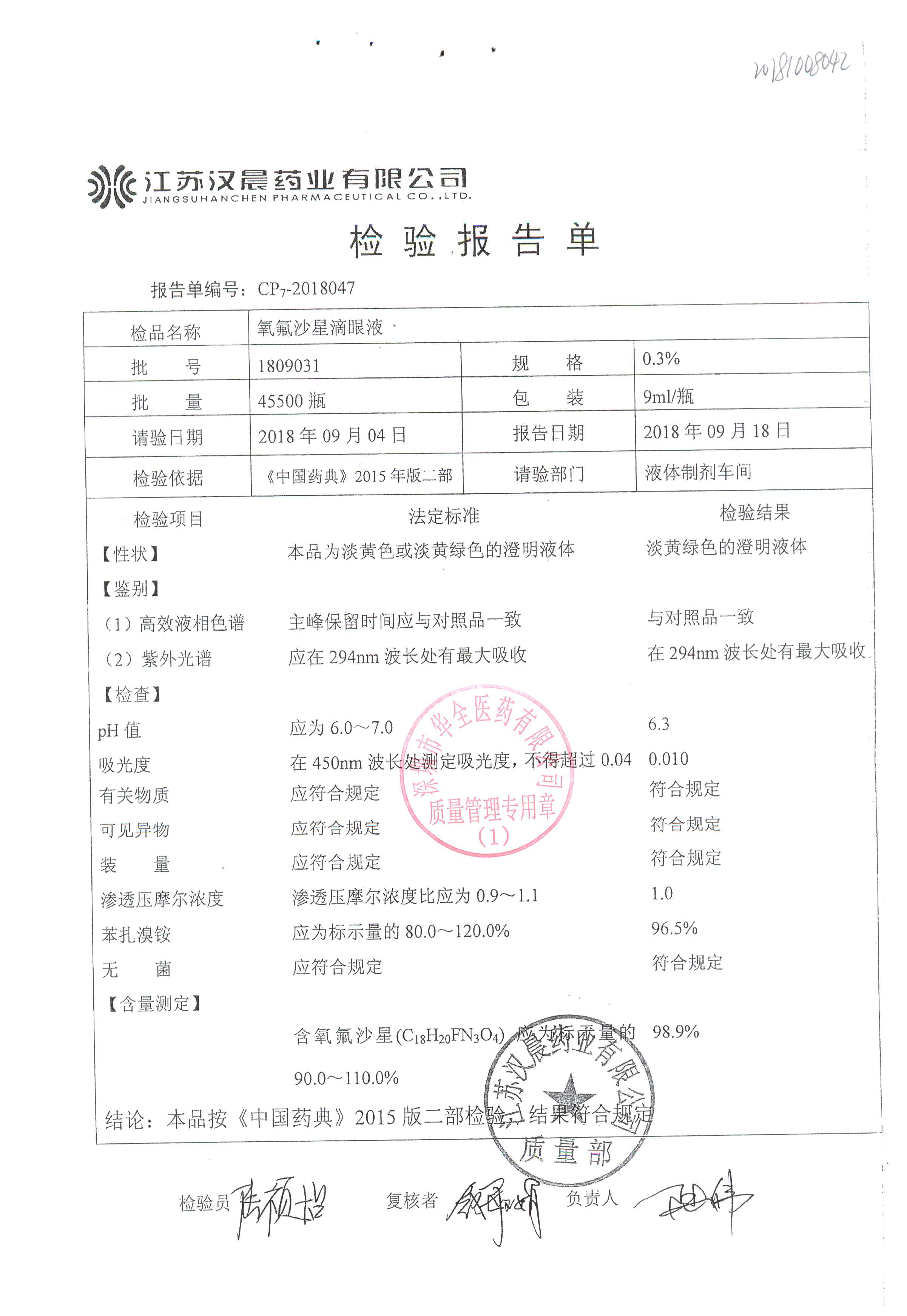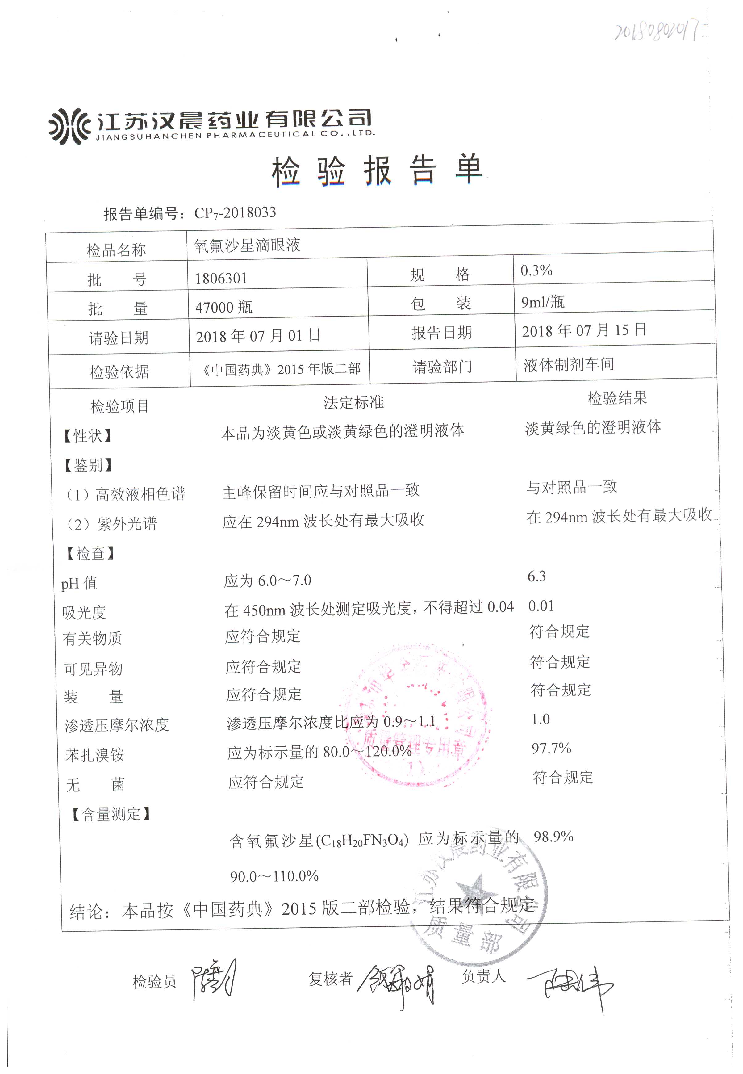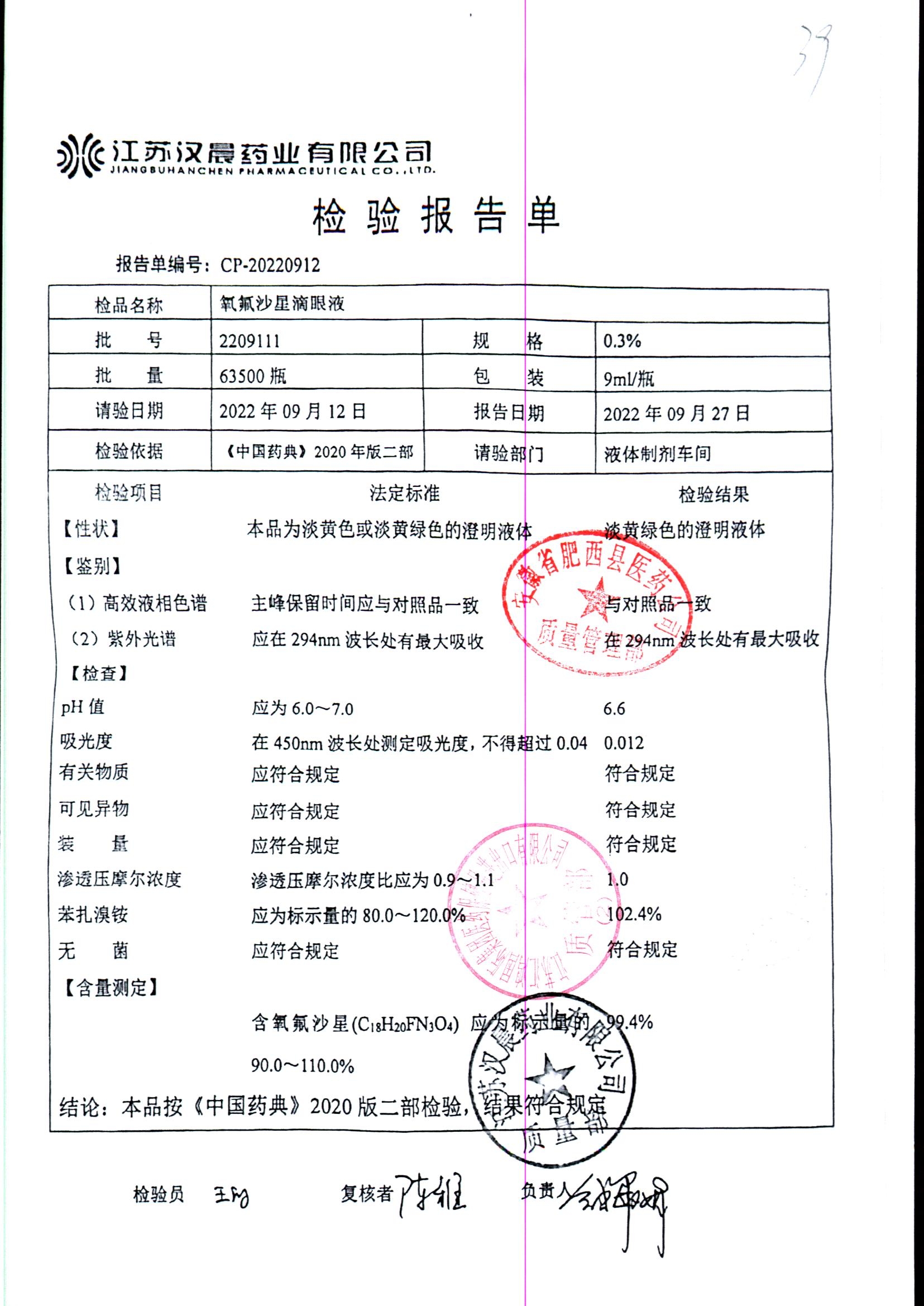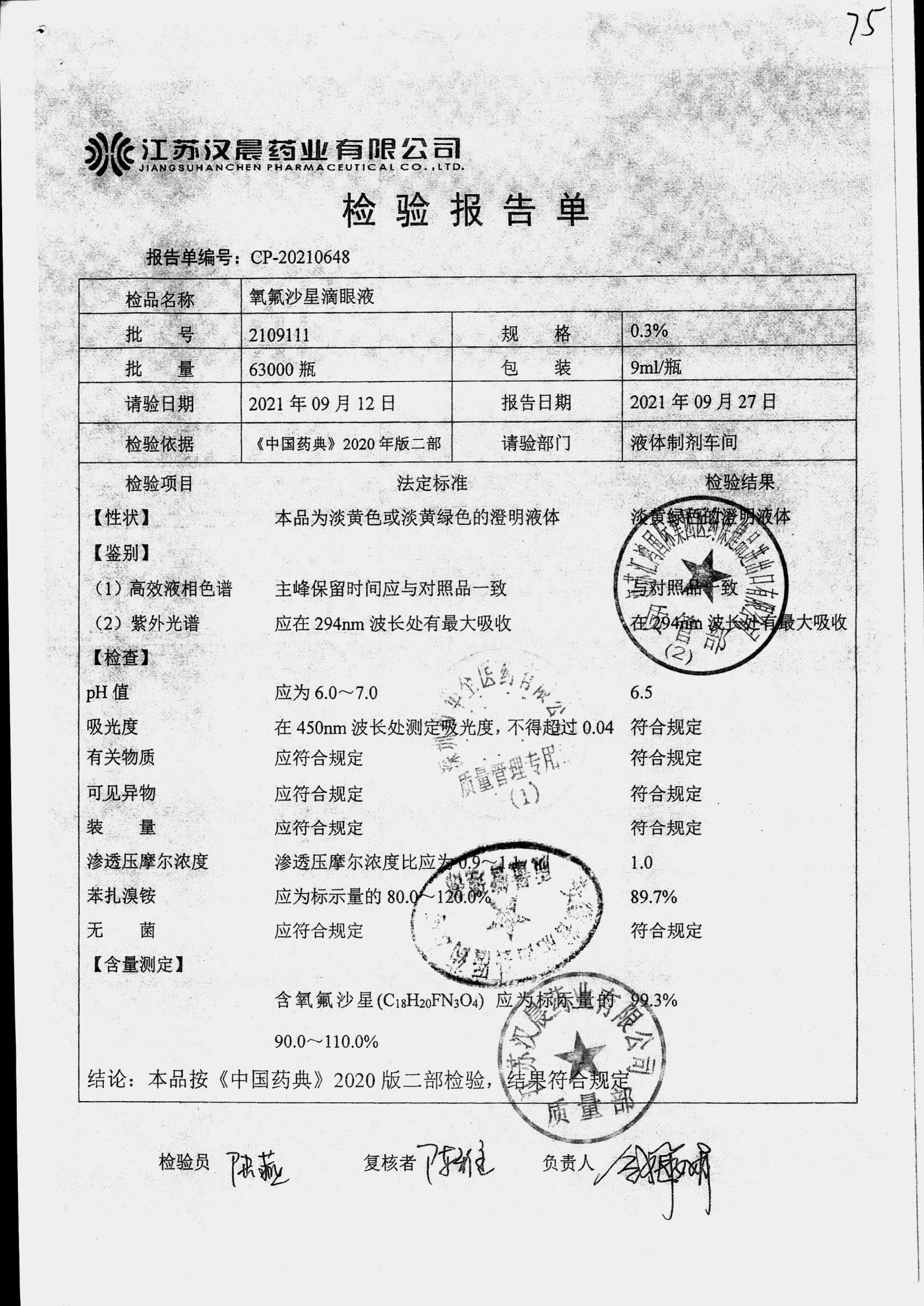 | 氧氟沙星滴眼液 | 9ml | 2008031 | 查看詳情 |