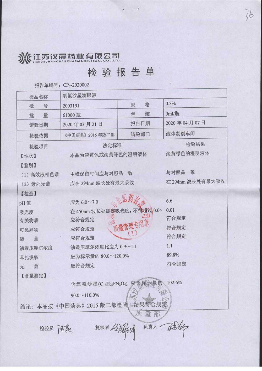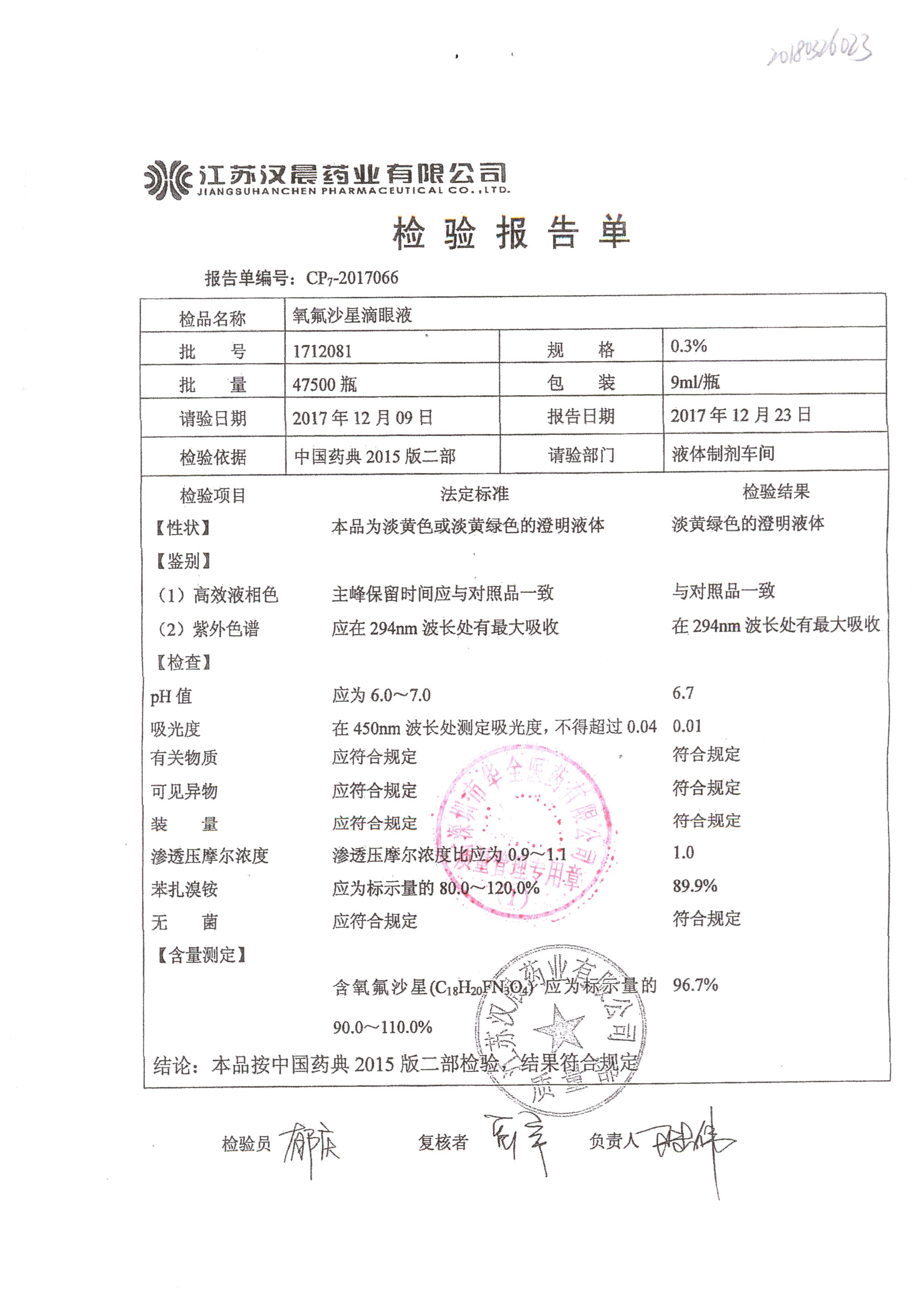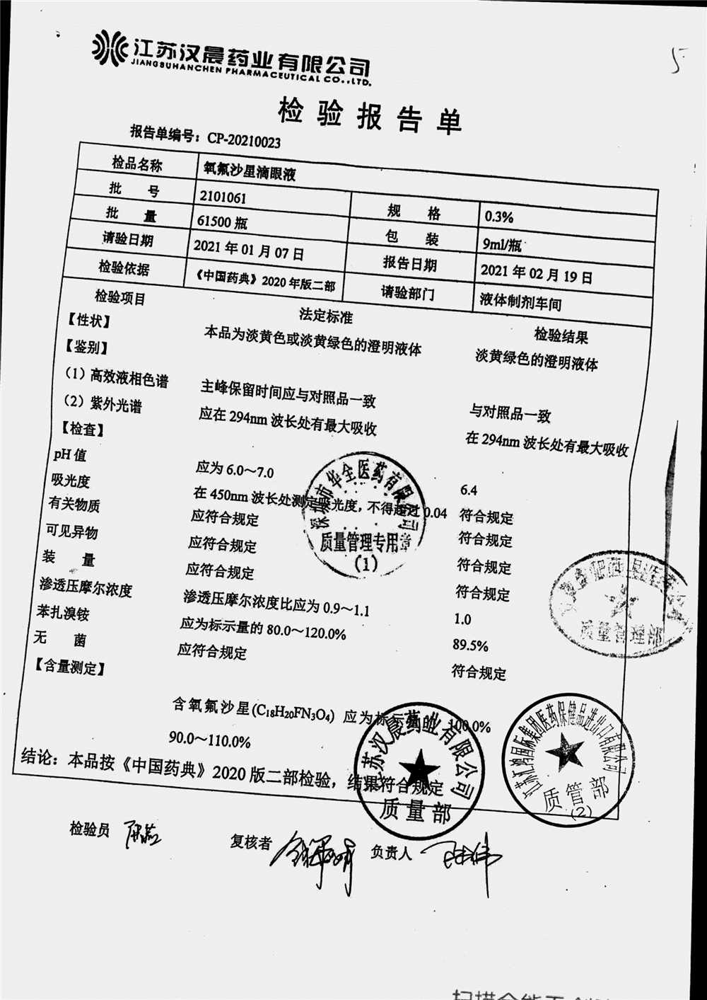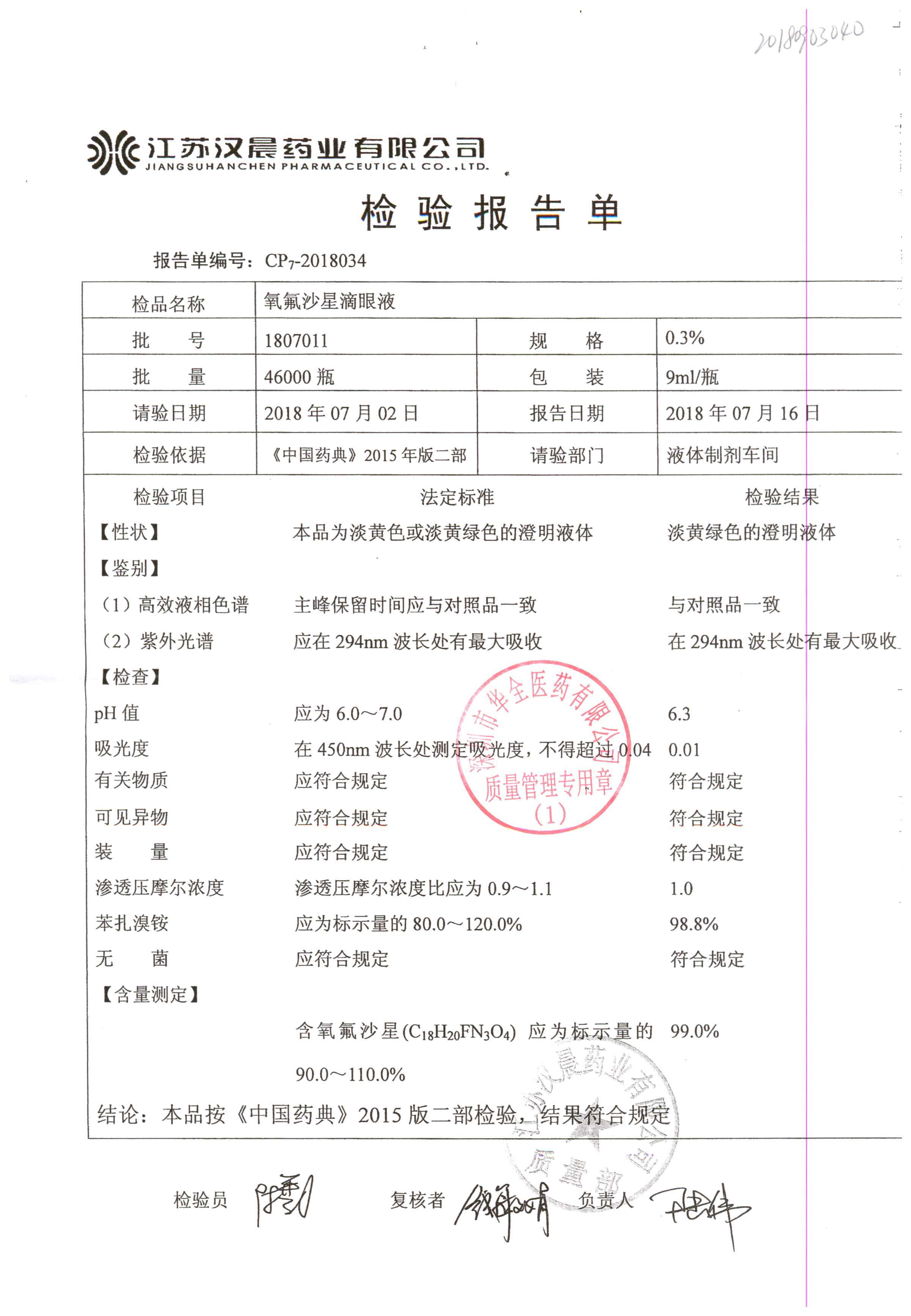 | 氧氟沙星滴眼液 | 9ml | 2008031 | 查看詳情 |