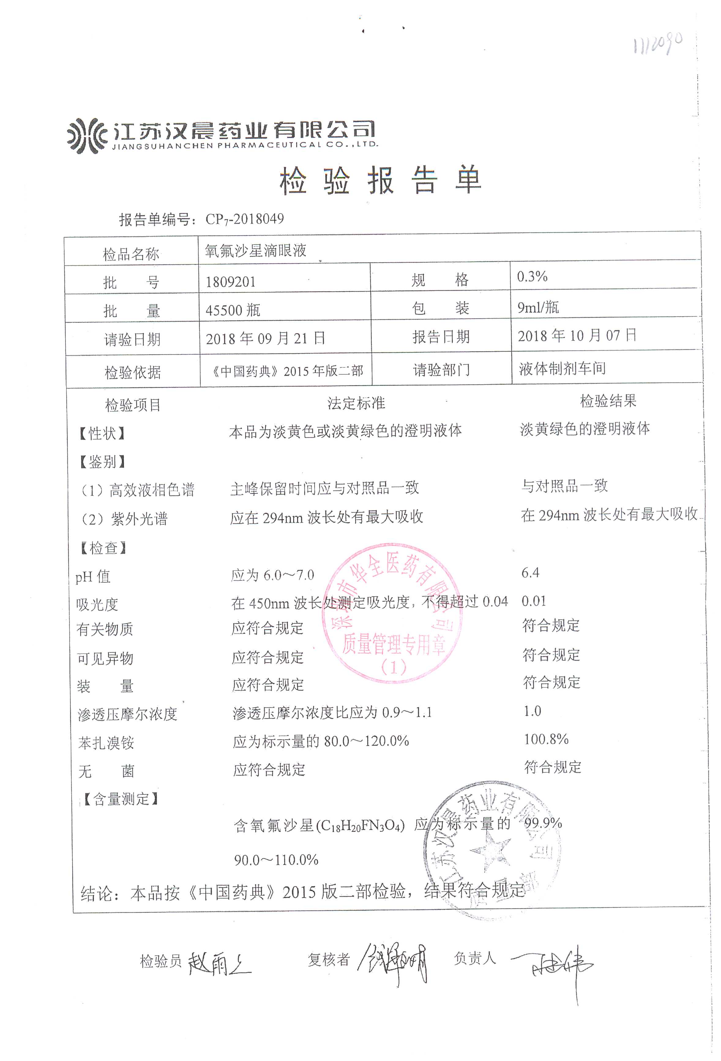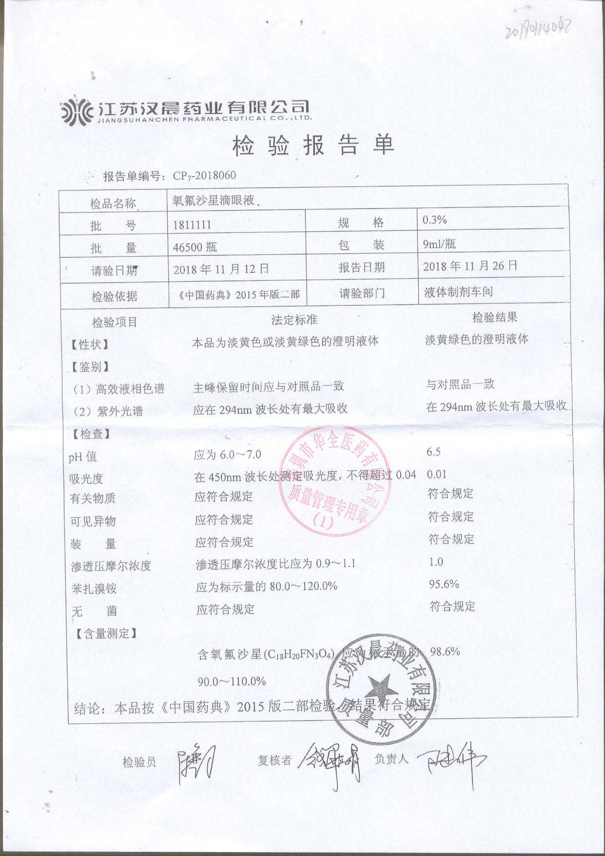 | 氧氟沙星滴眼液 | 9ml | 1811111 | 查看詳情 |