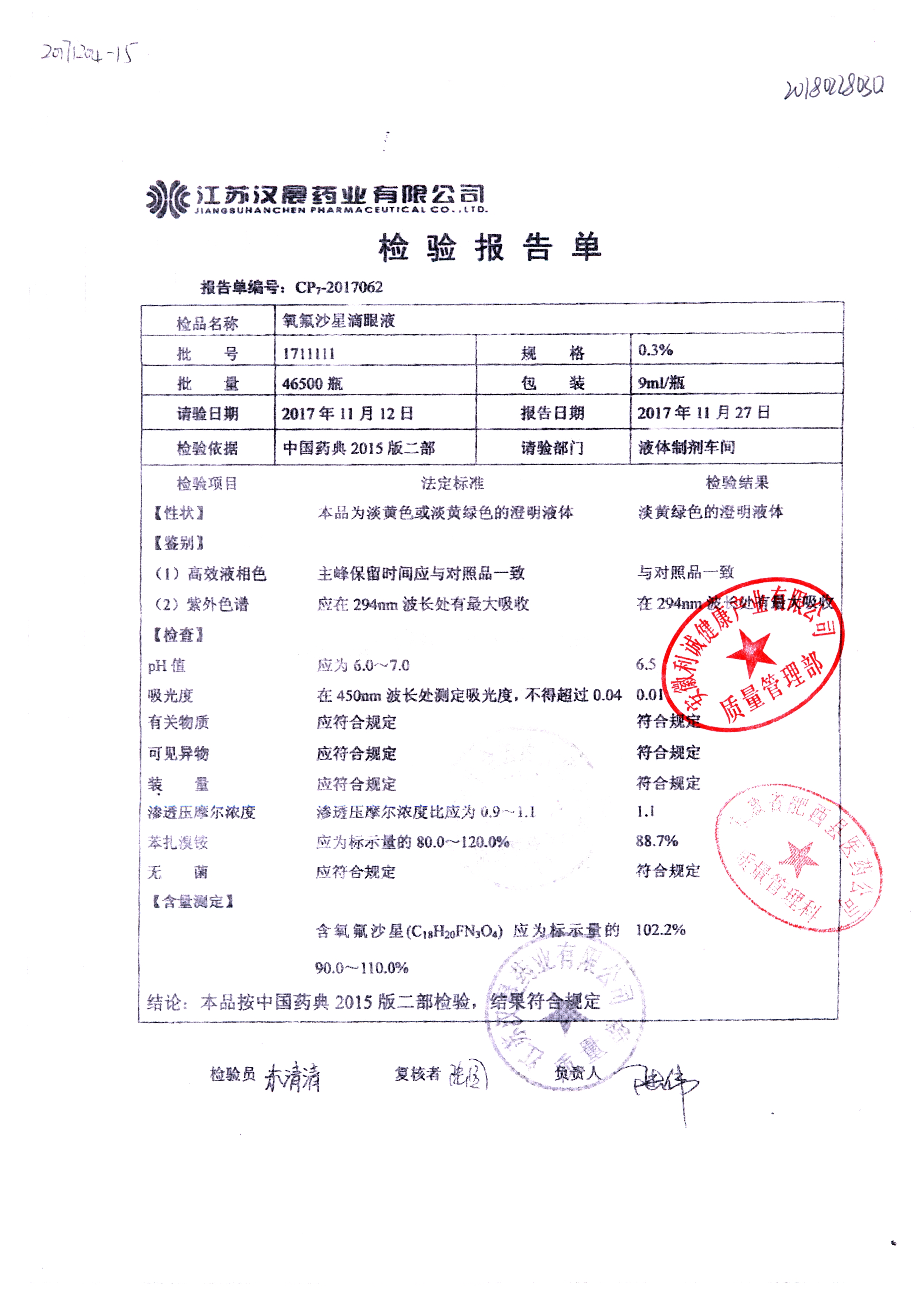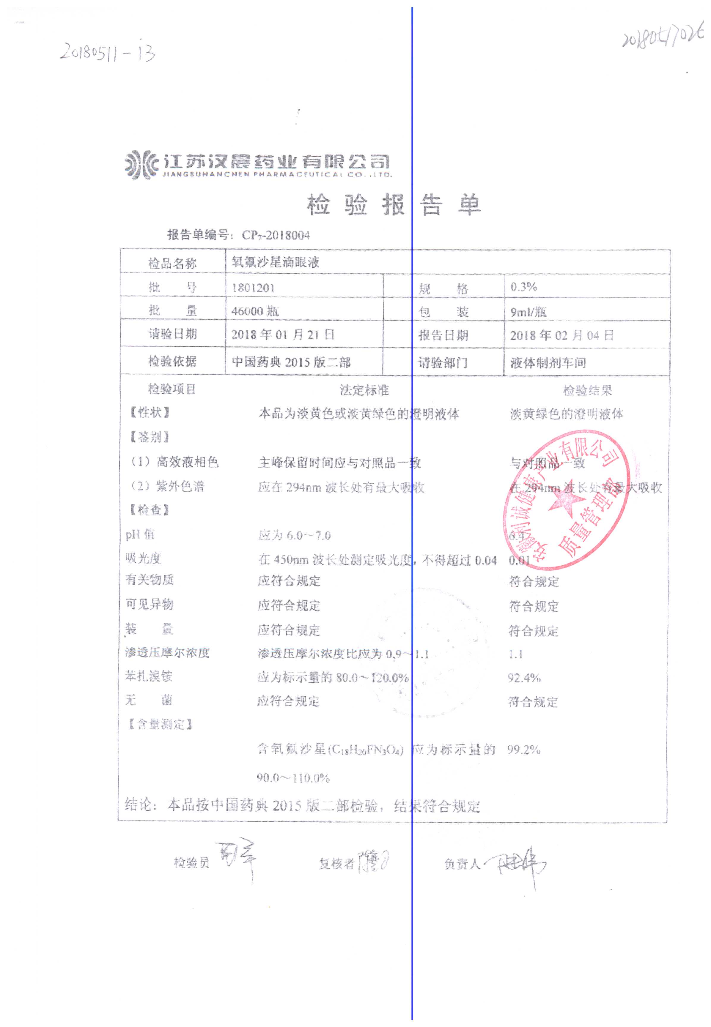 | 氧氟沙星滴眼液 | 9ml | 1801201 | 查看詳情 |