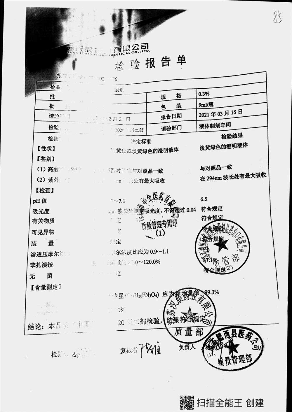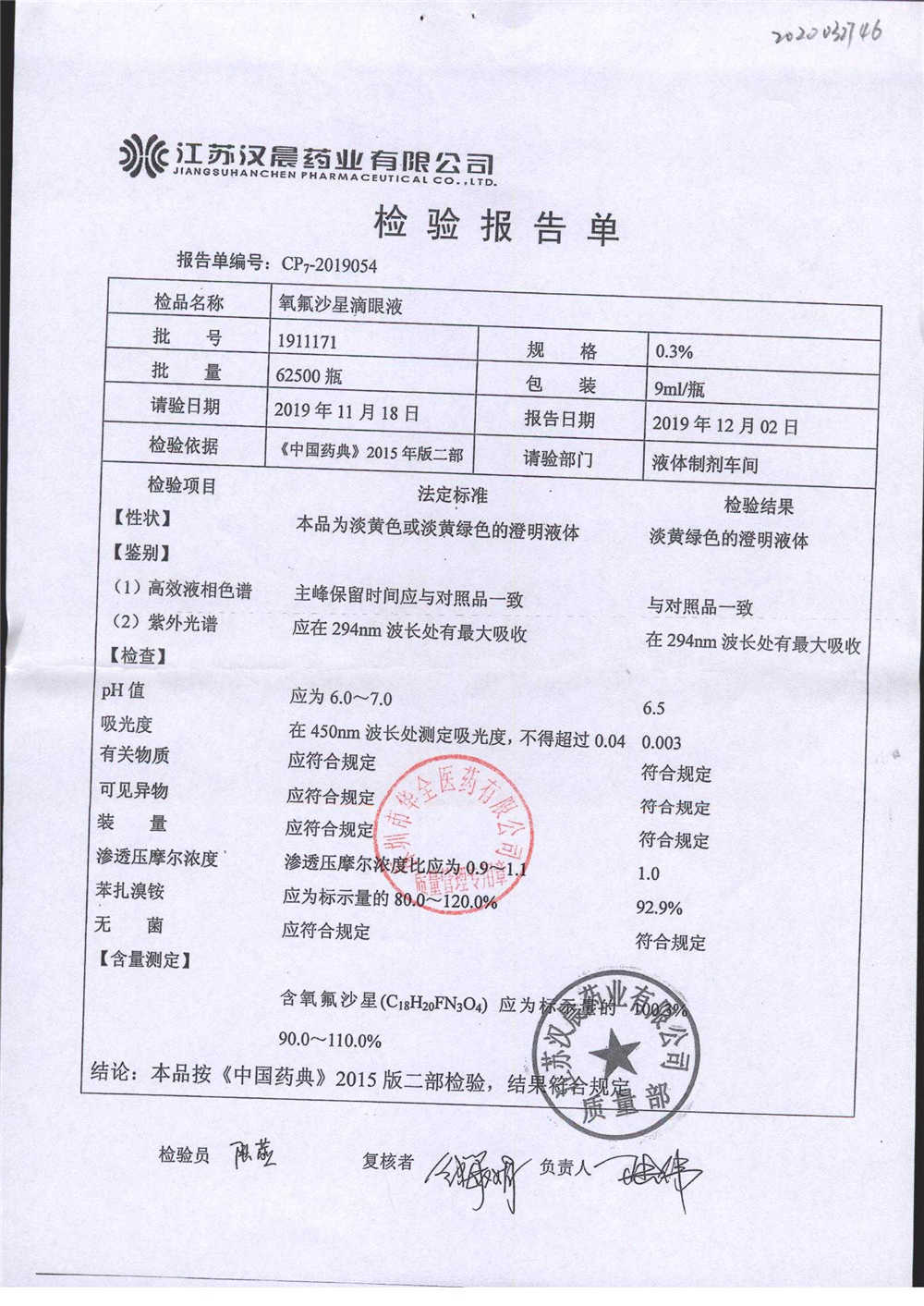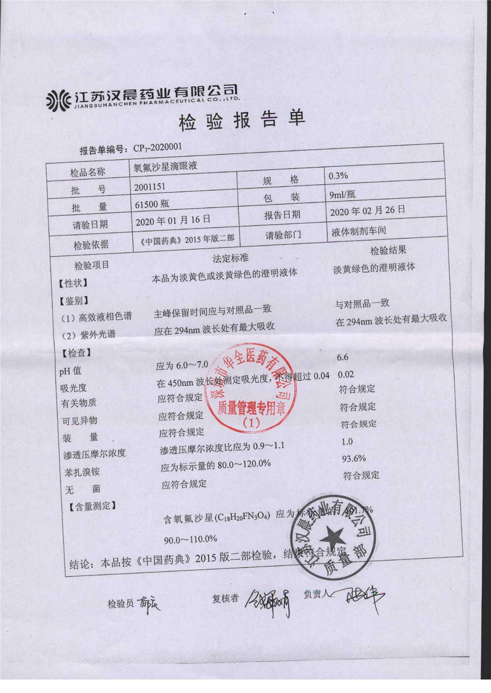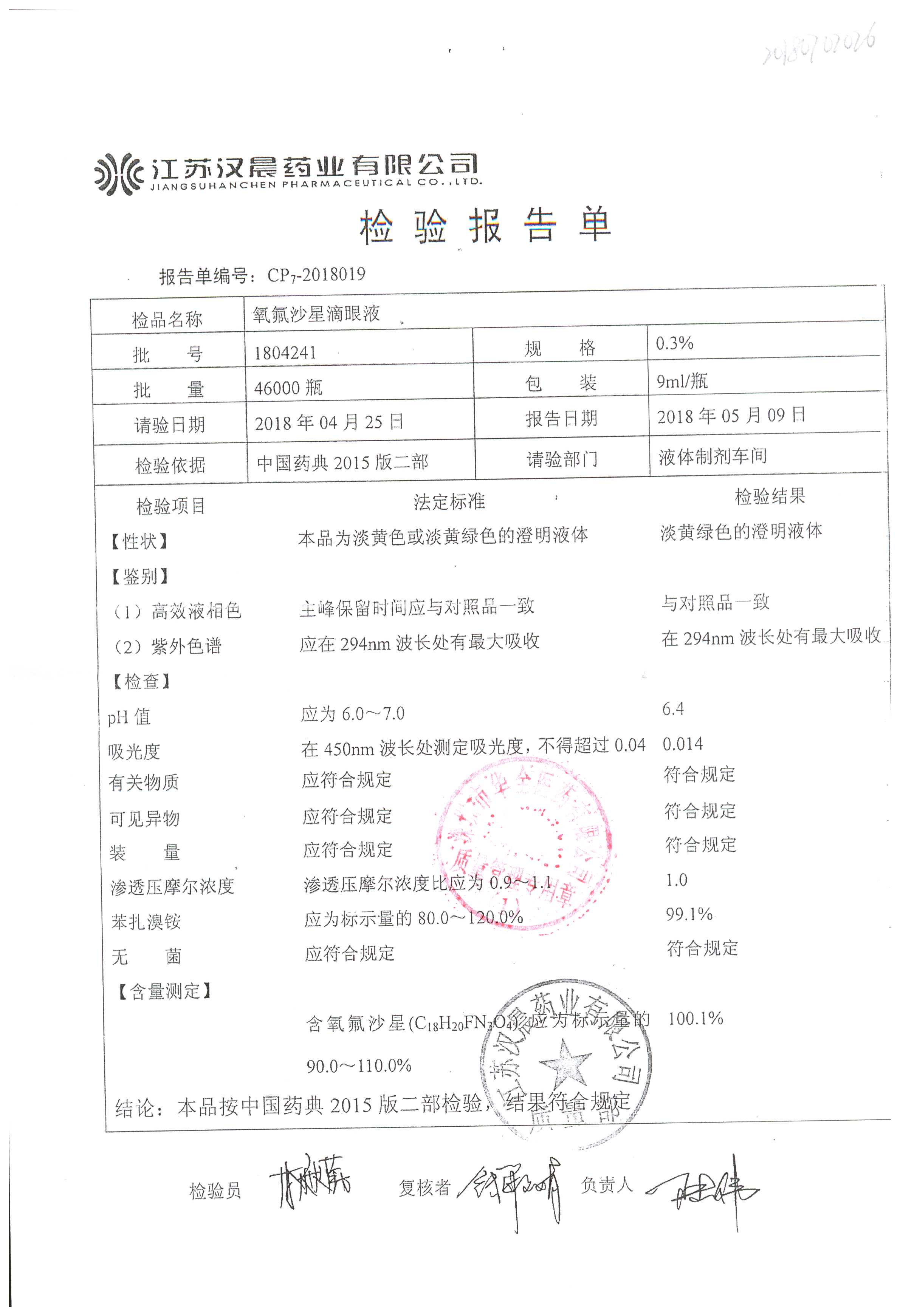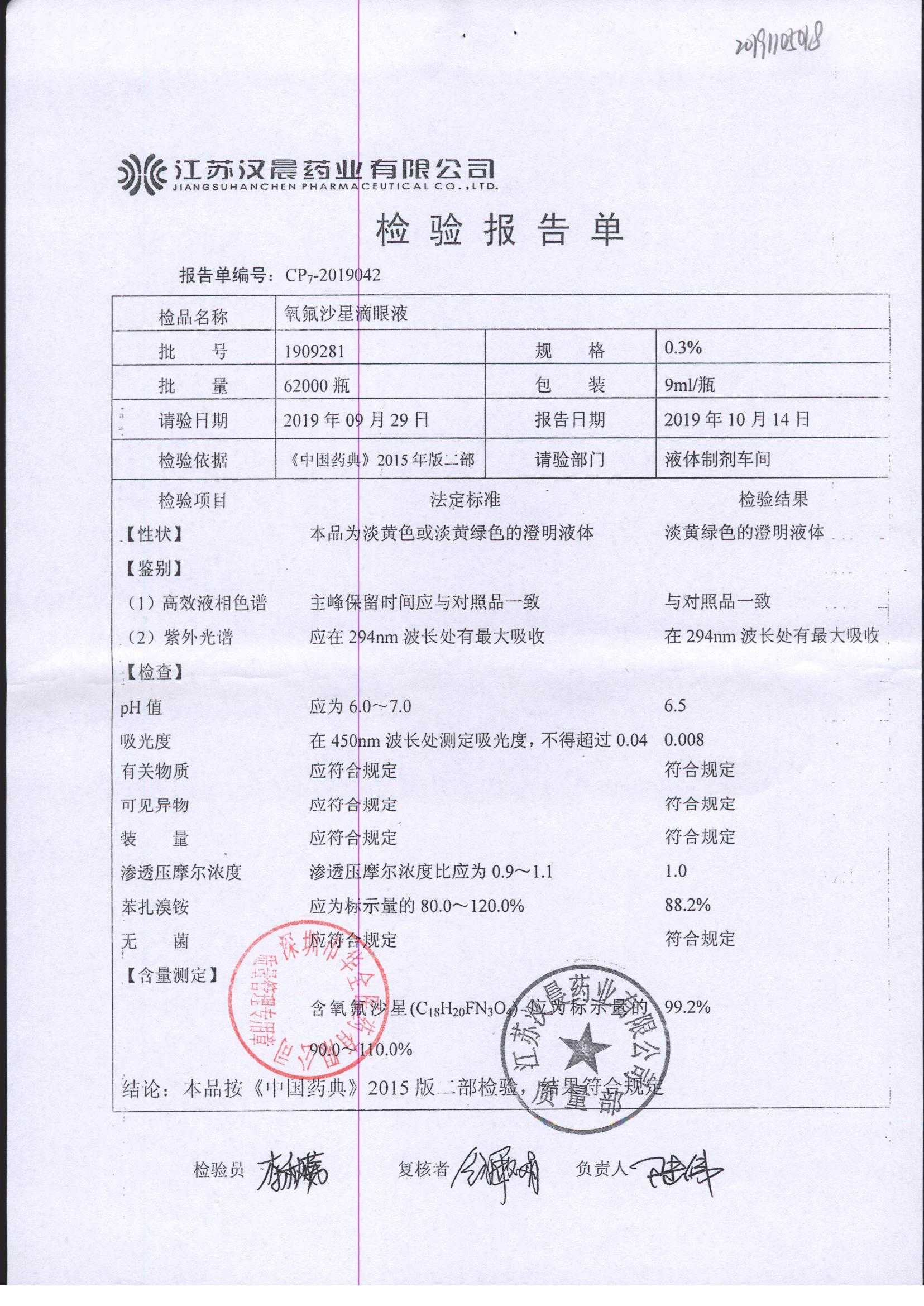 | 氧氟沙星滴眼液 | 9ml | 2005081 | 查看詳情 |