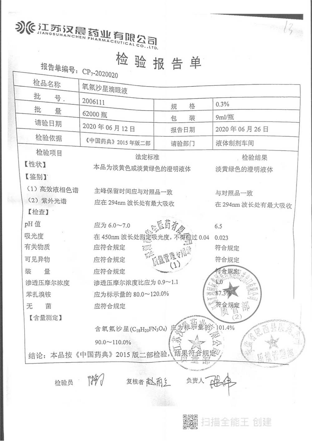 | 氧氟沙星滴眼液 | 9ml | 2006111 | 查看詳情 |