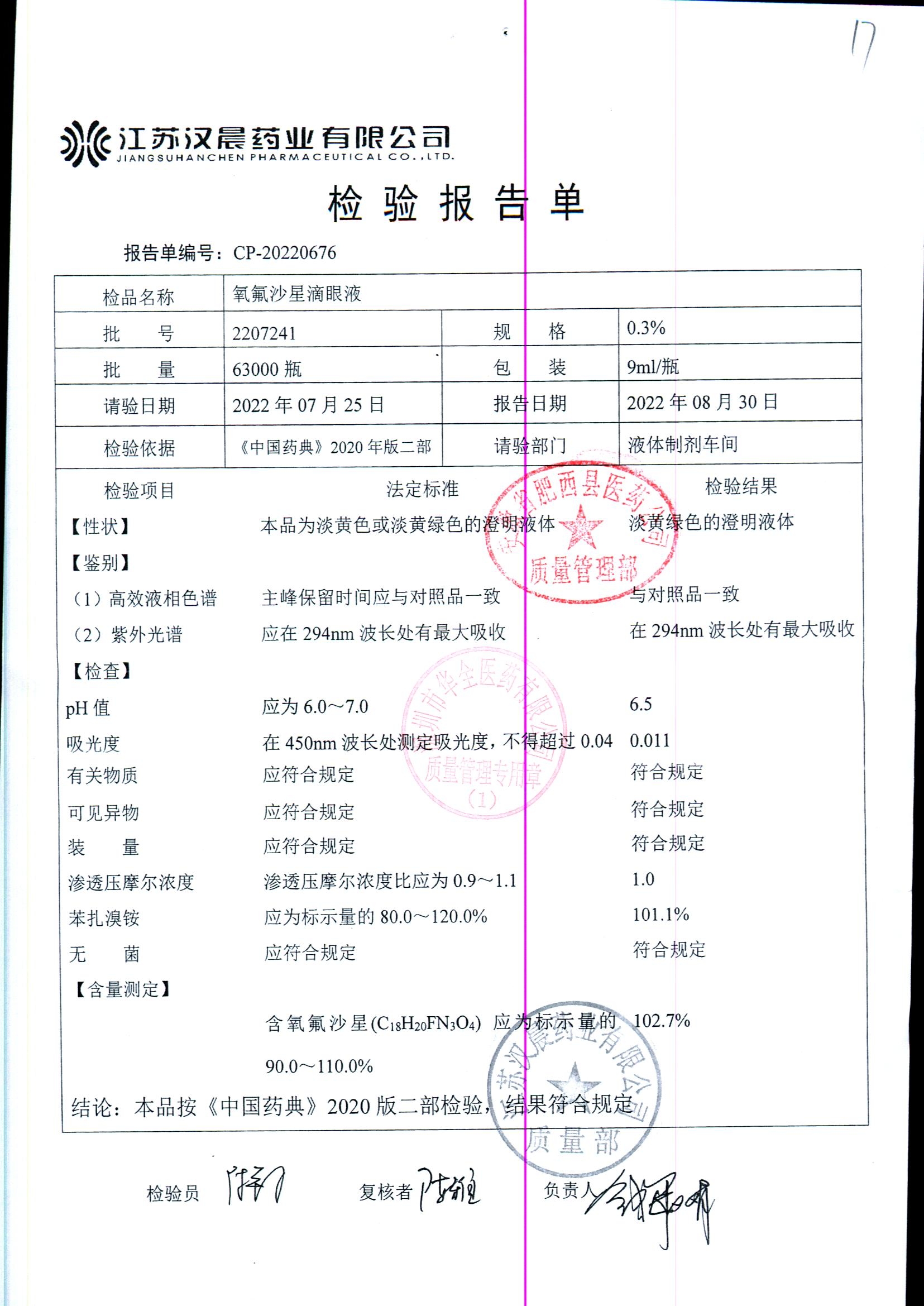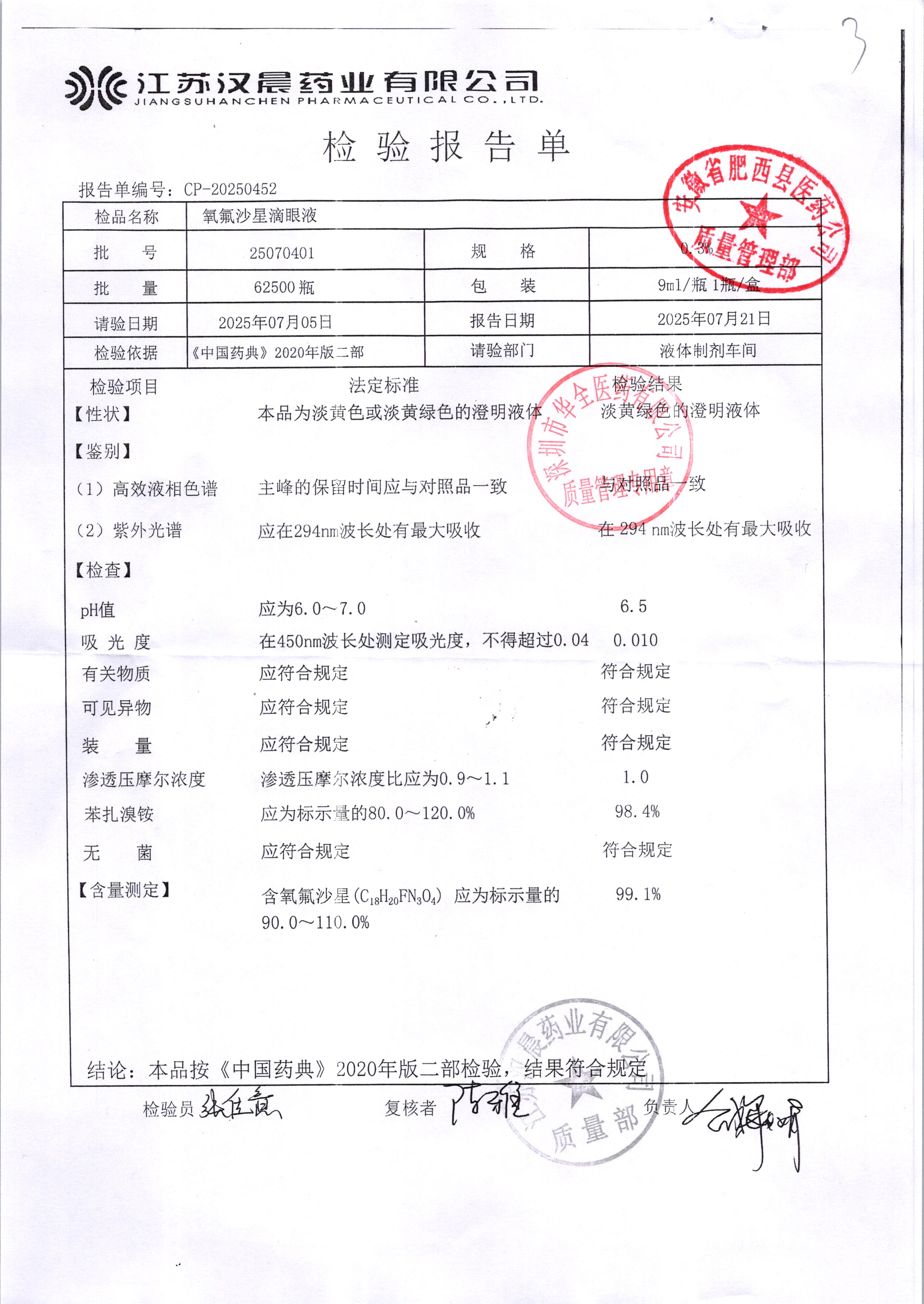 | 氧氟沙星滴眼液 | 9ml | 25070401 | 查看詳情 |