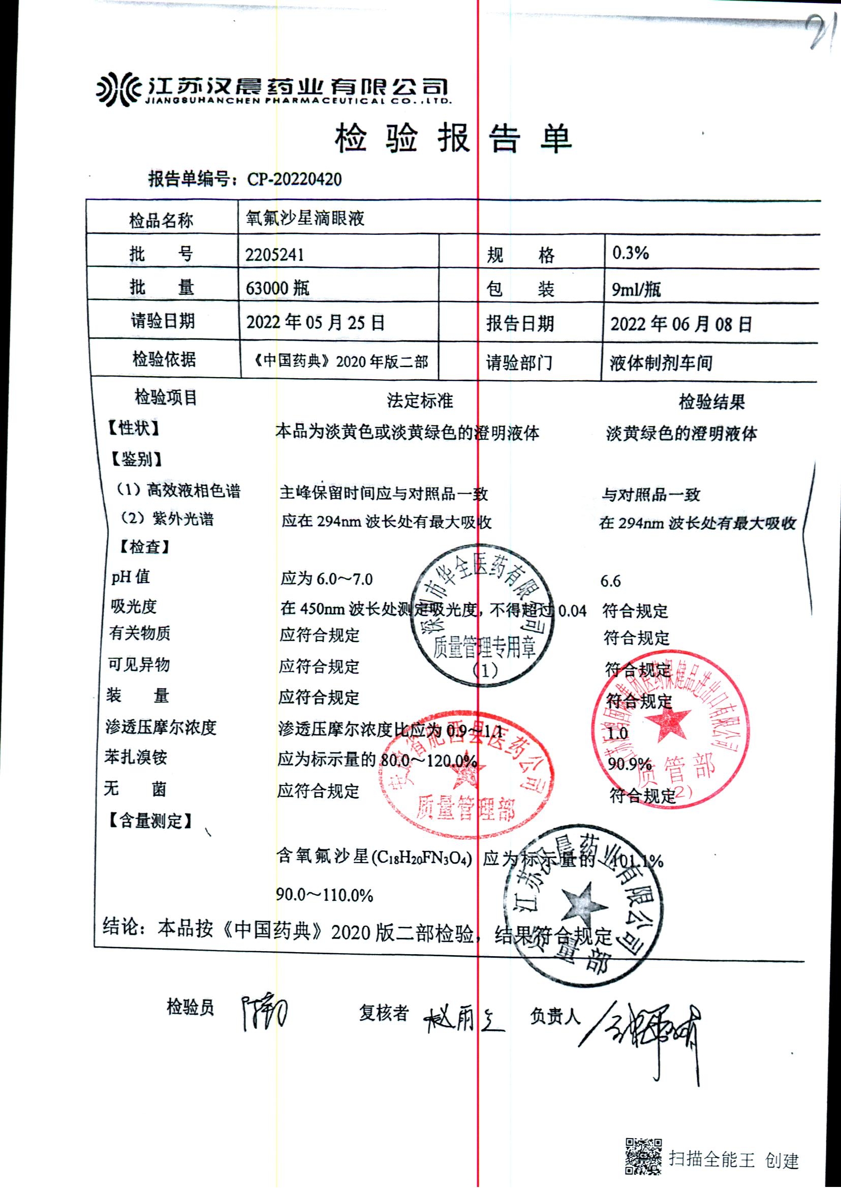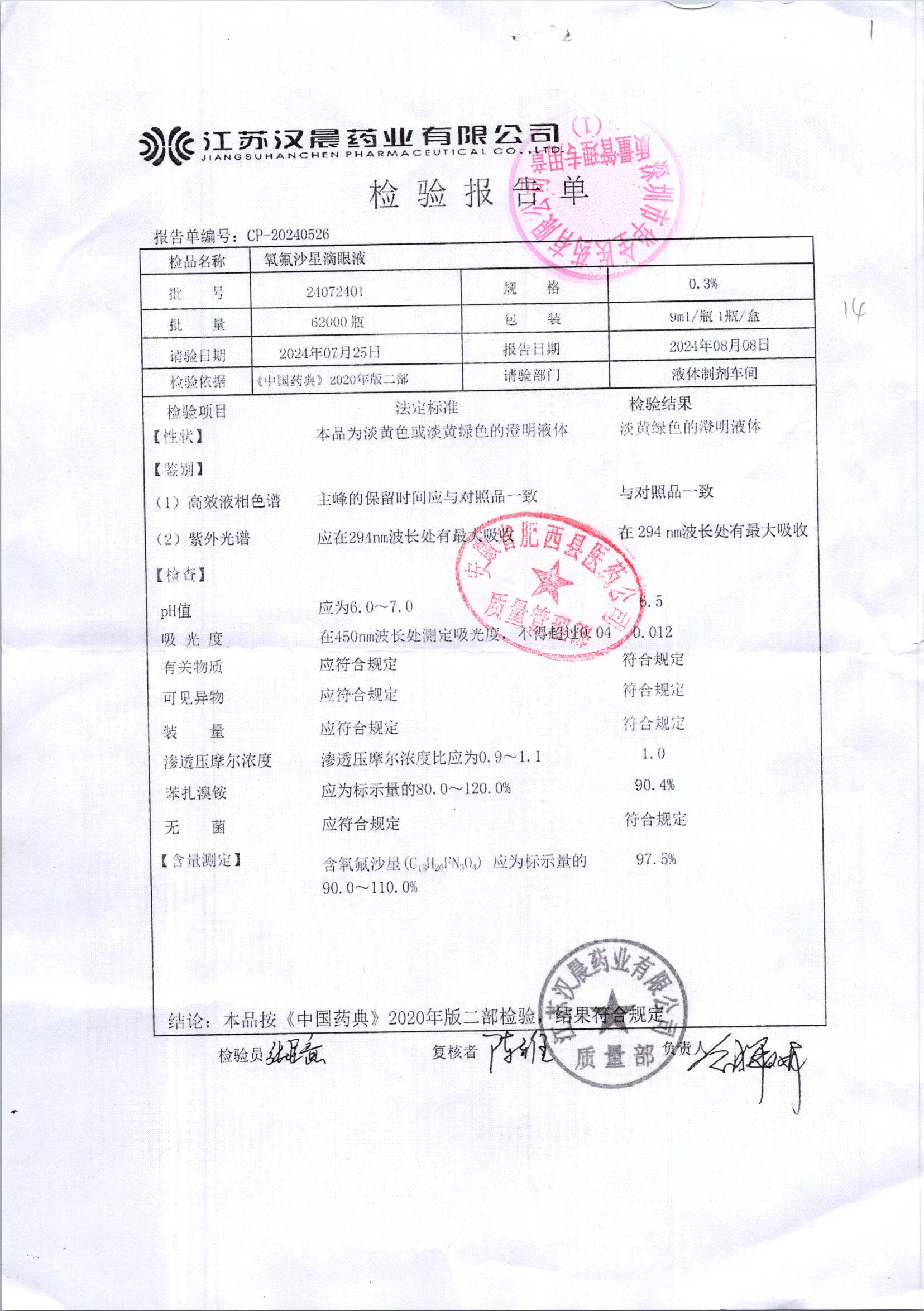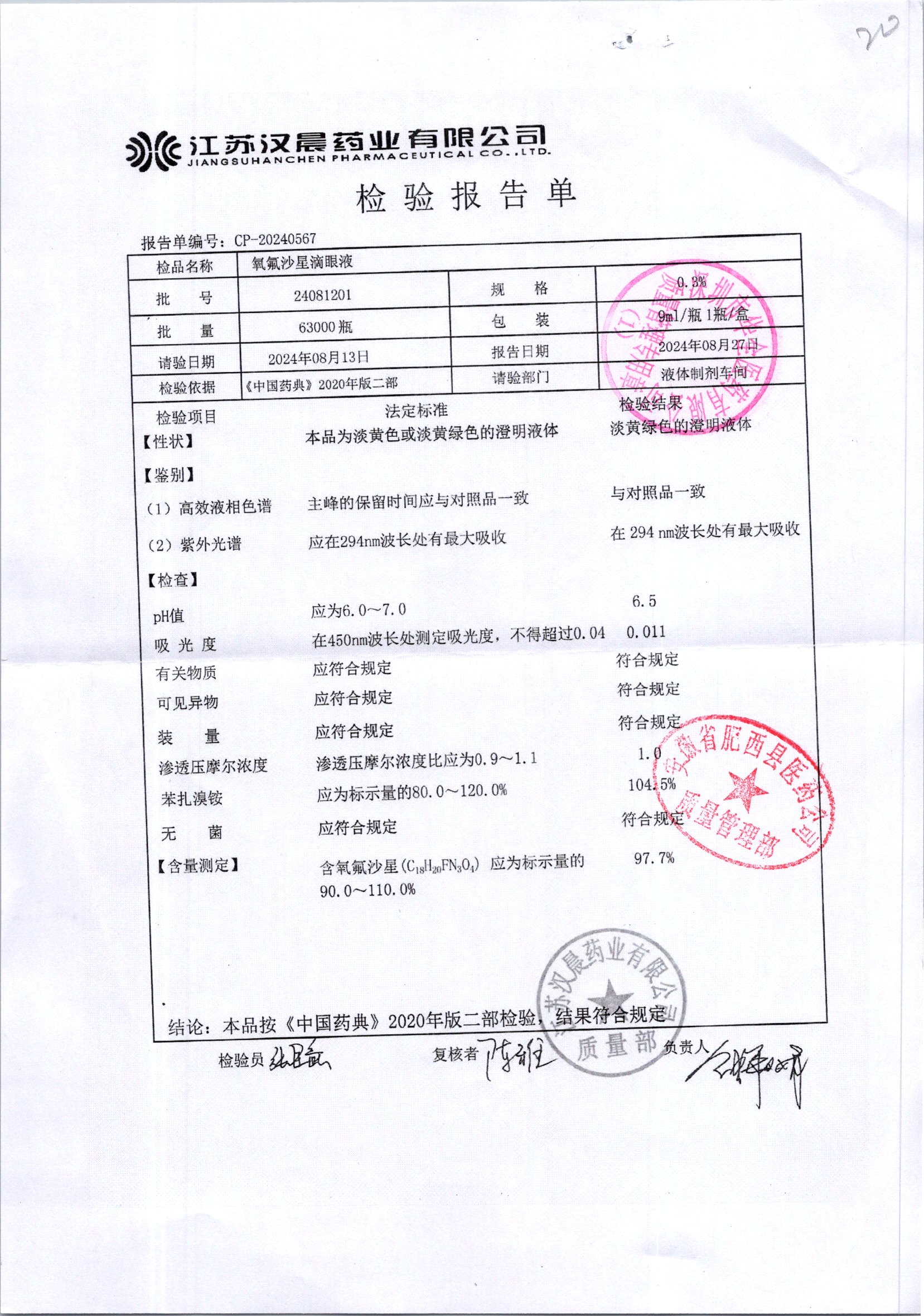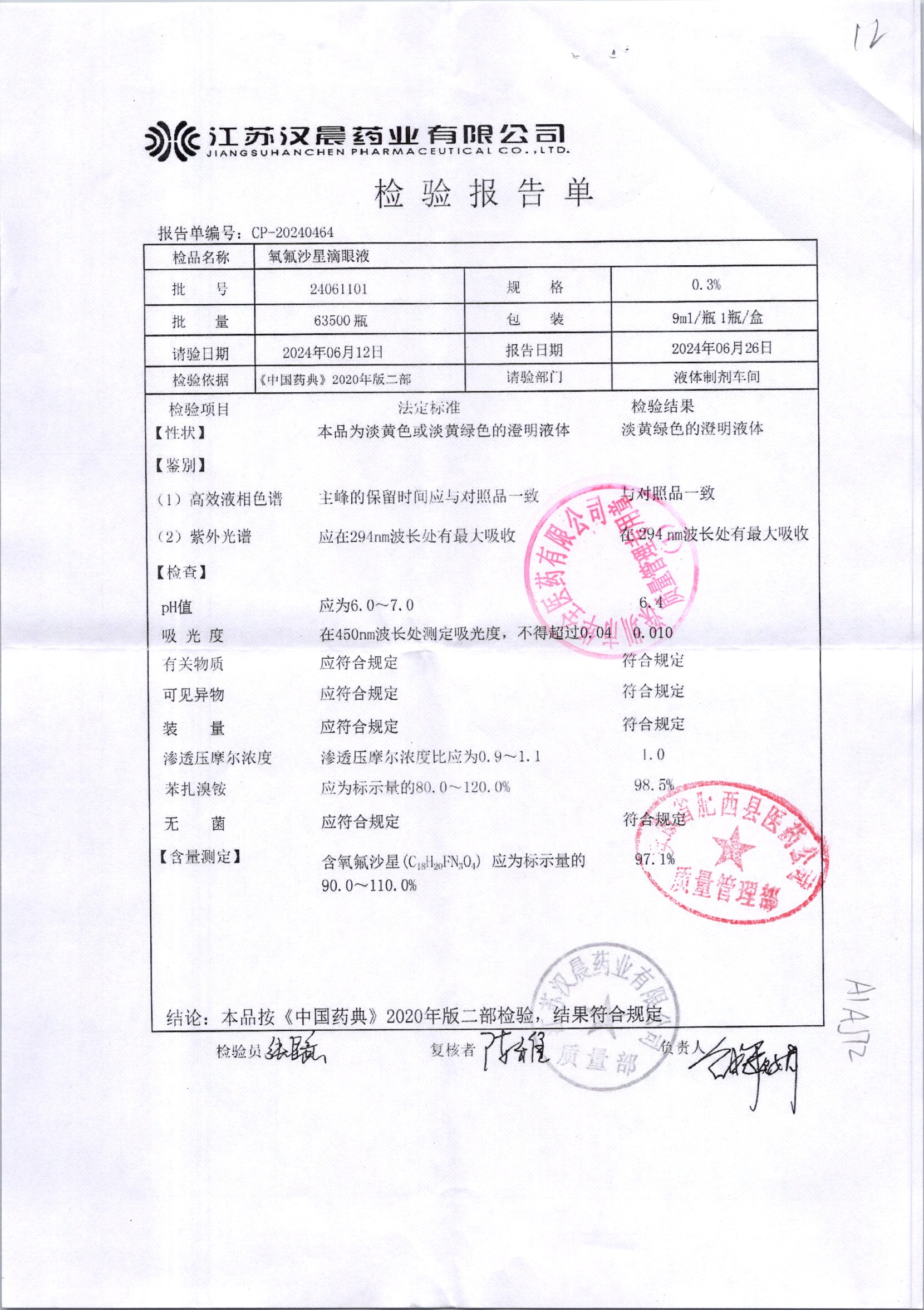 | 氧氟沙星滴眼液 | 9ml | 24061101 | 查看詳情 |