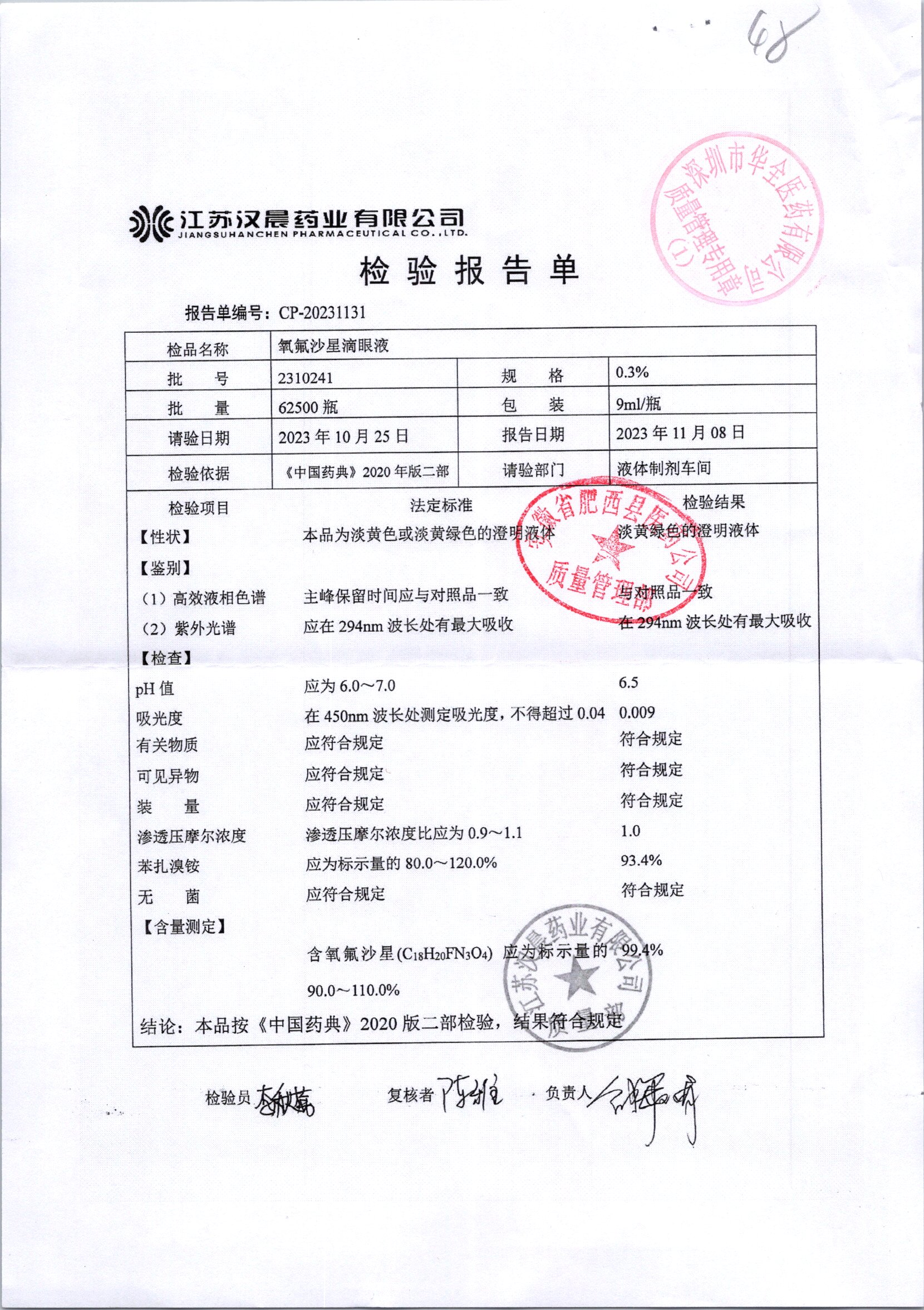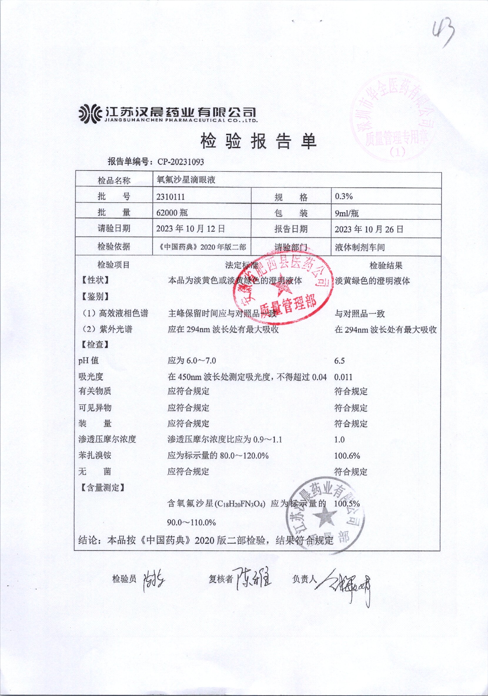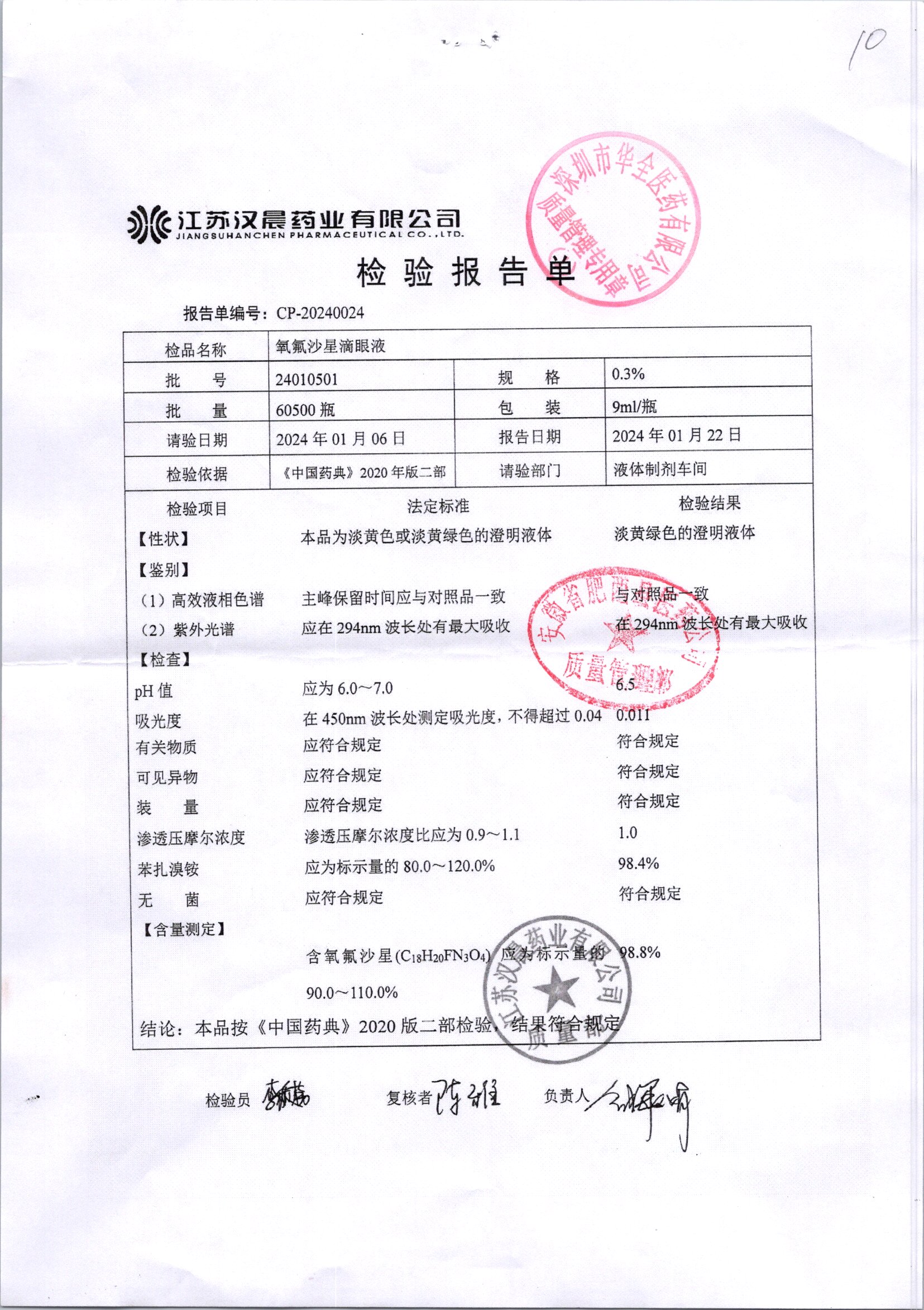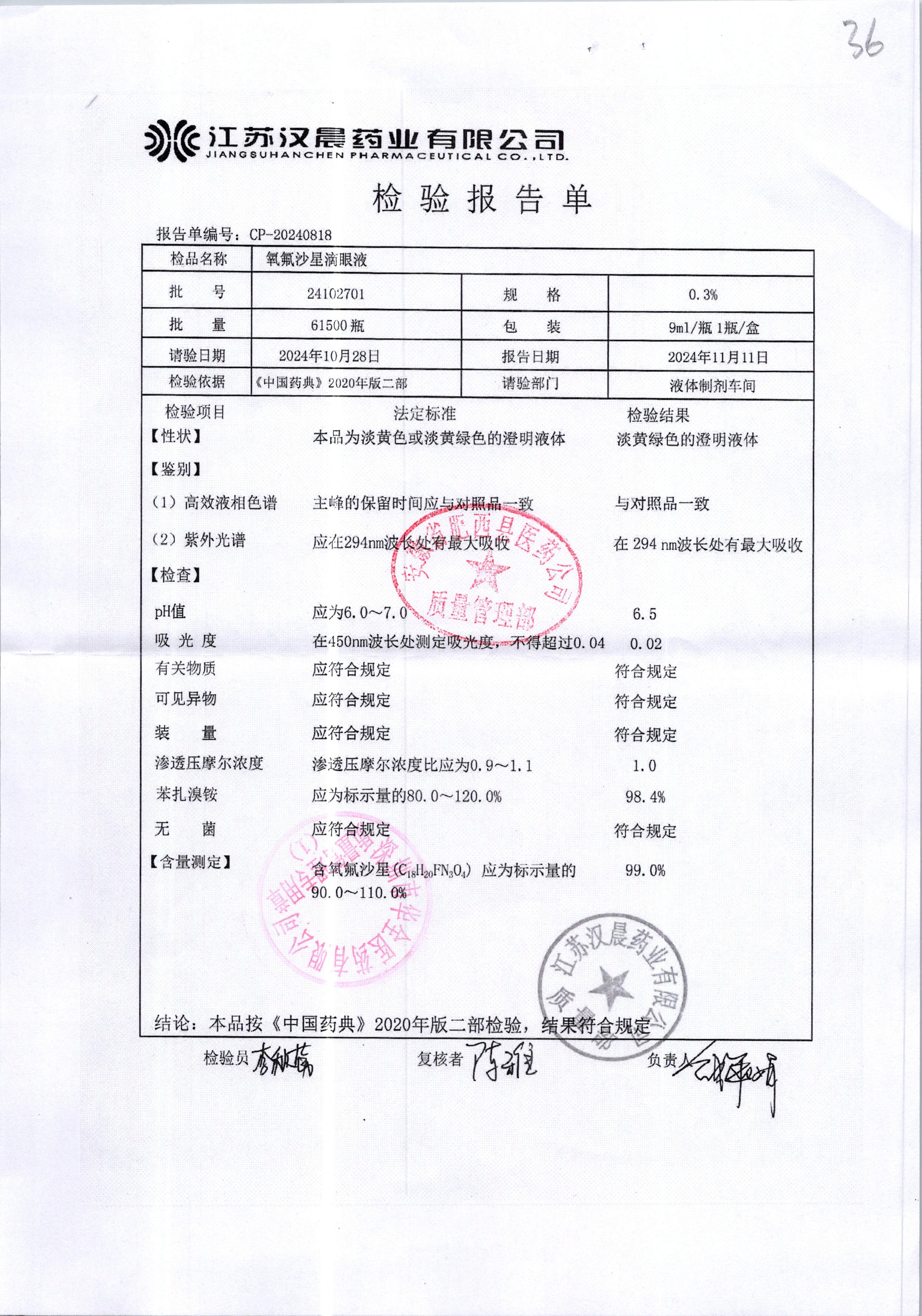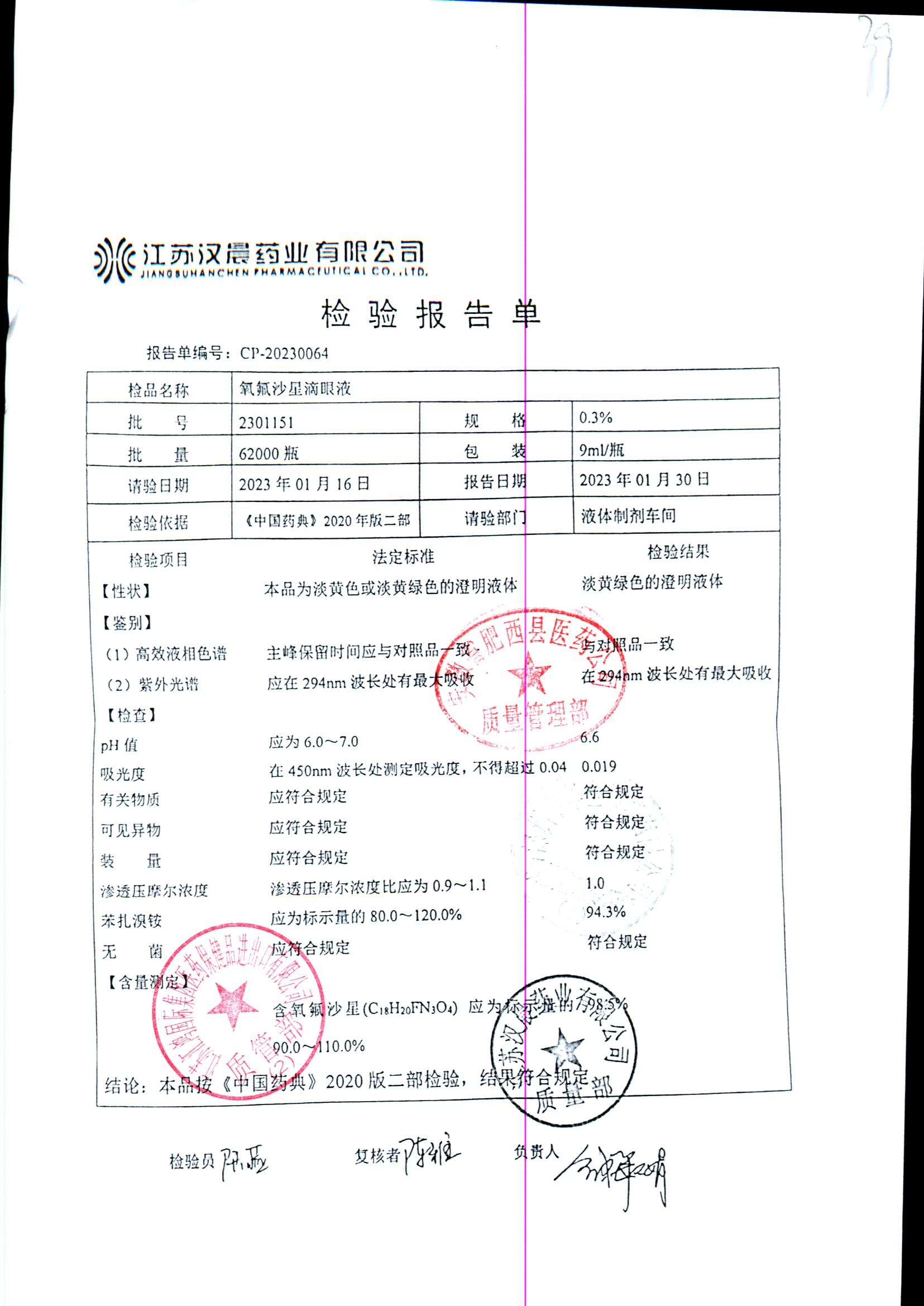 | 氧氟沙星滴眼液 | 9ml | 24061101 | 查看詳情 |