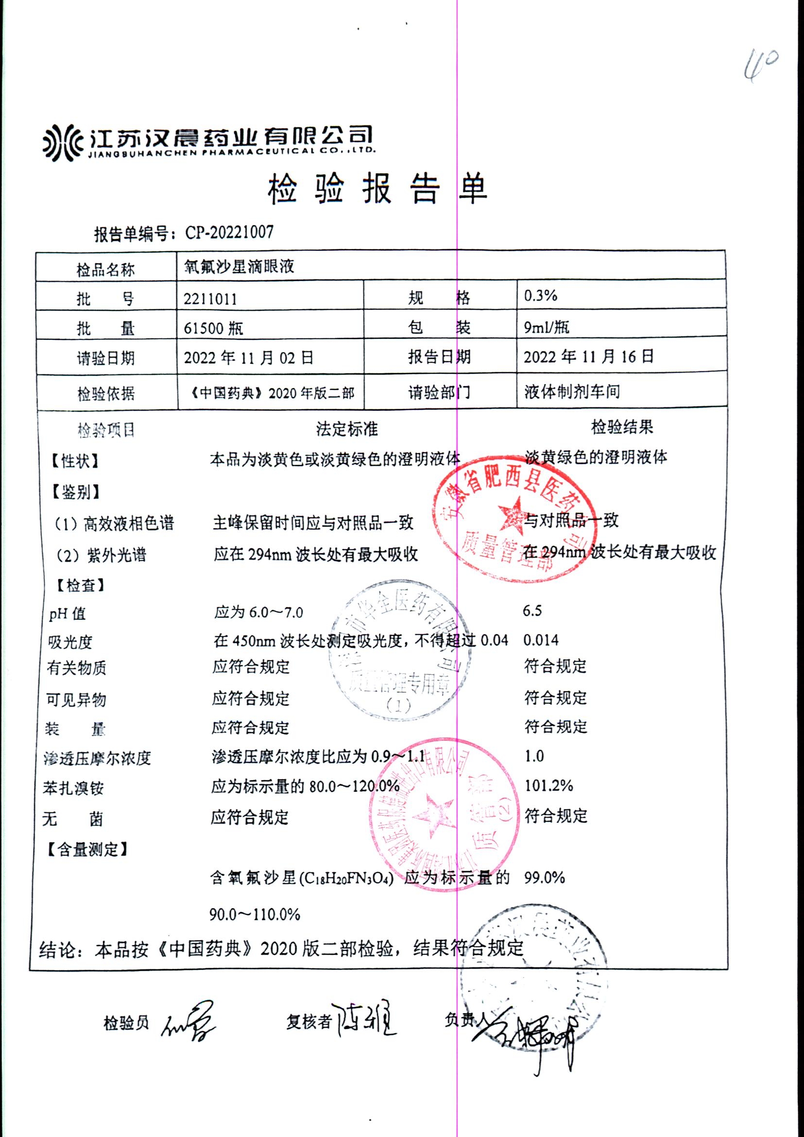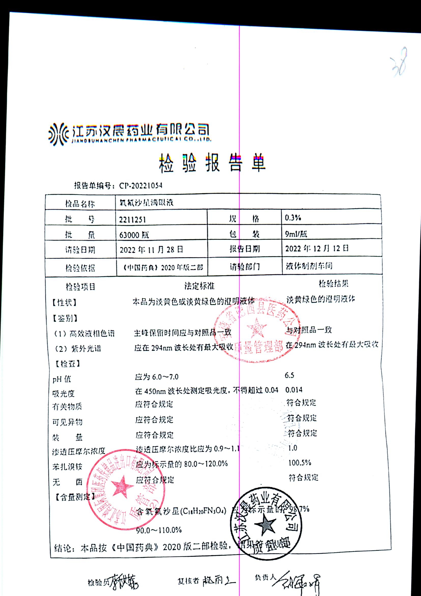 | 氧氟沙星滴眼液 | 9ml | 2211011 | 查看詳情 |