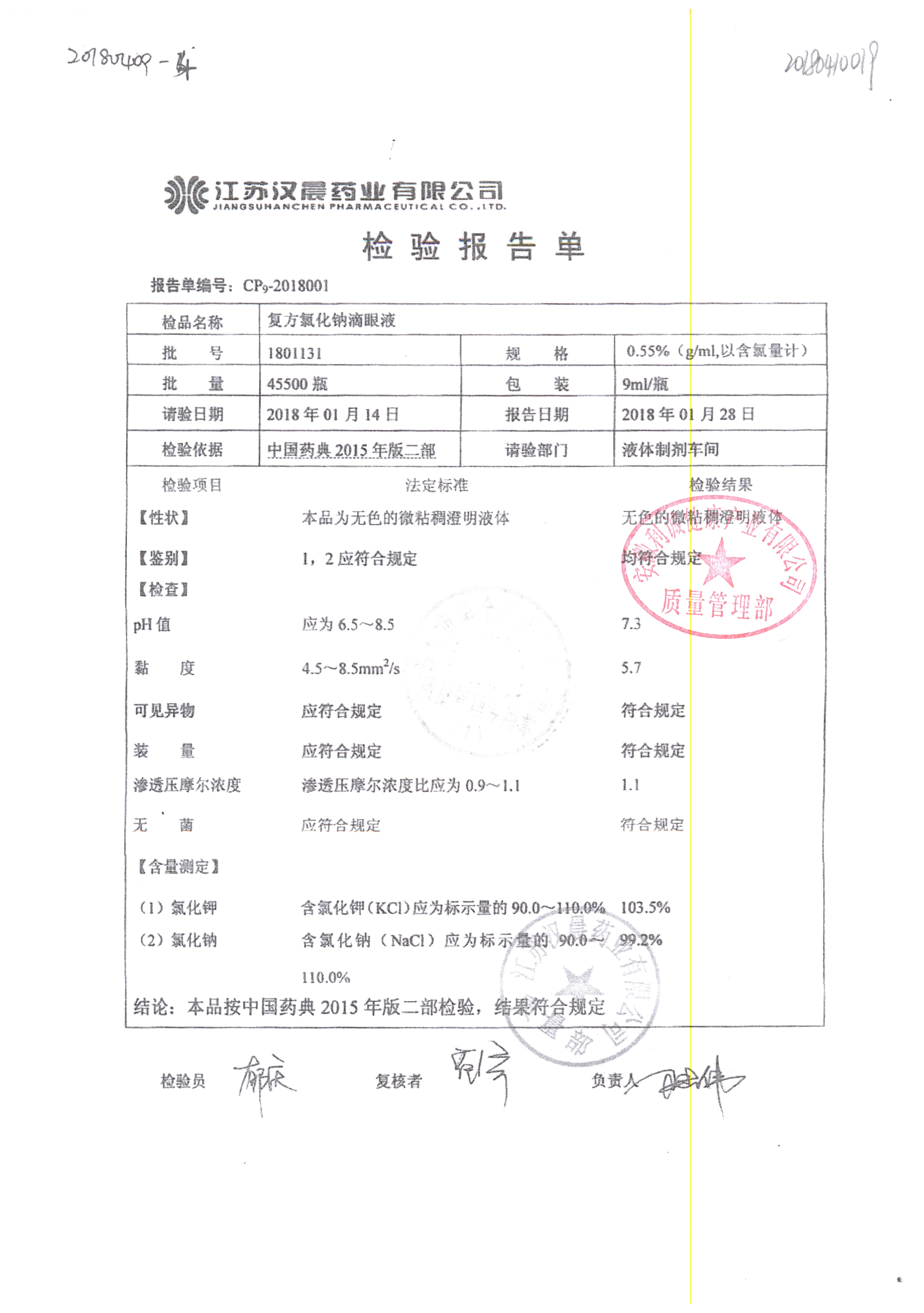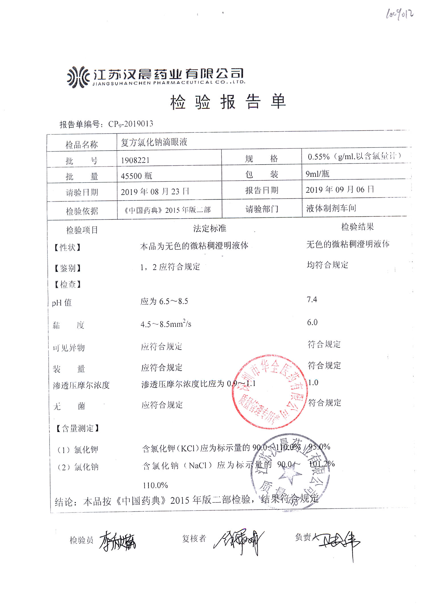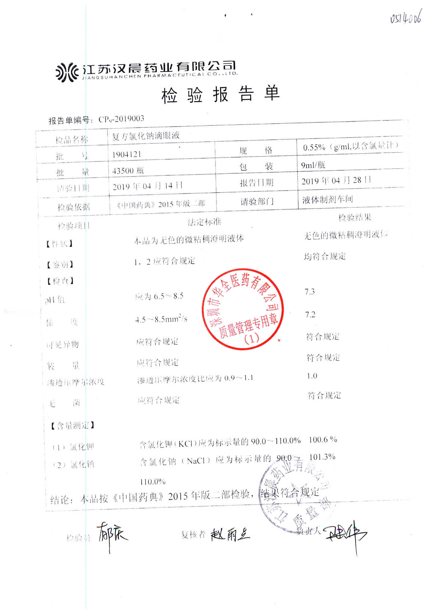| 復(fù)方氯化鈉滴眼液 | 9ml | 1910071 | 查看詳情 |
