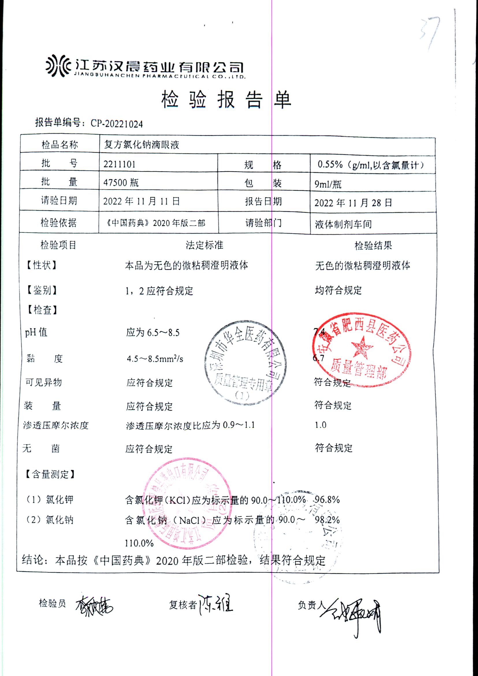 | 復(fù)方氯化鈉滴眼液 | 9ml | 2111231 | 查看詳情 |