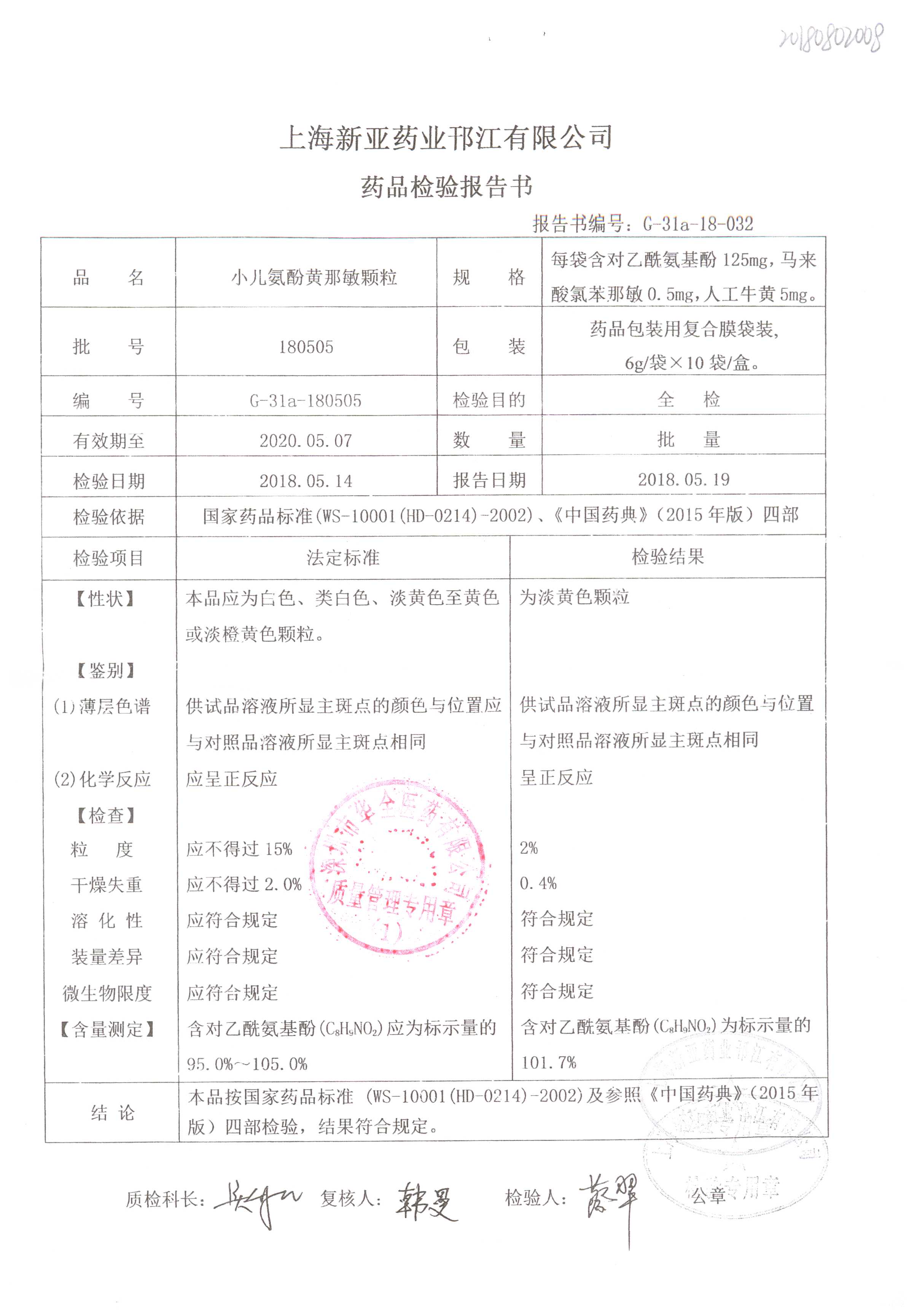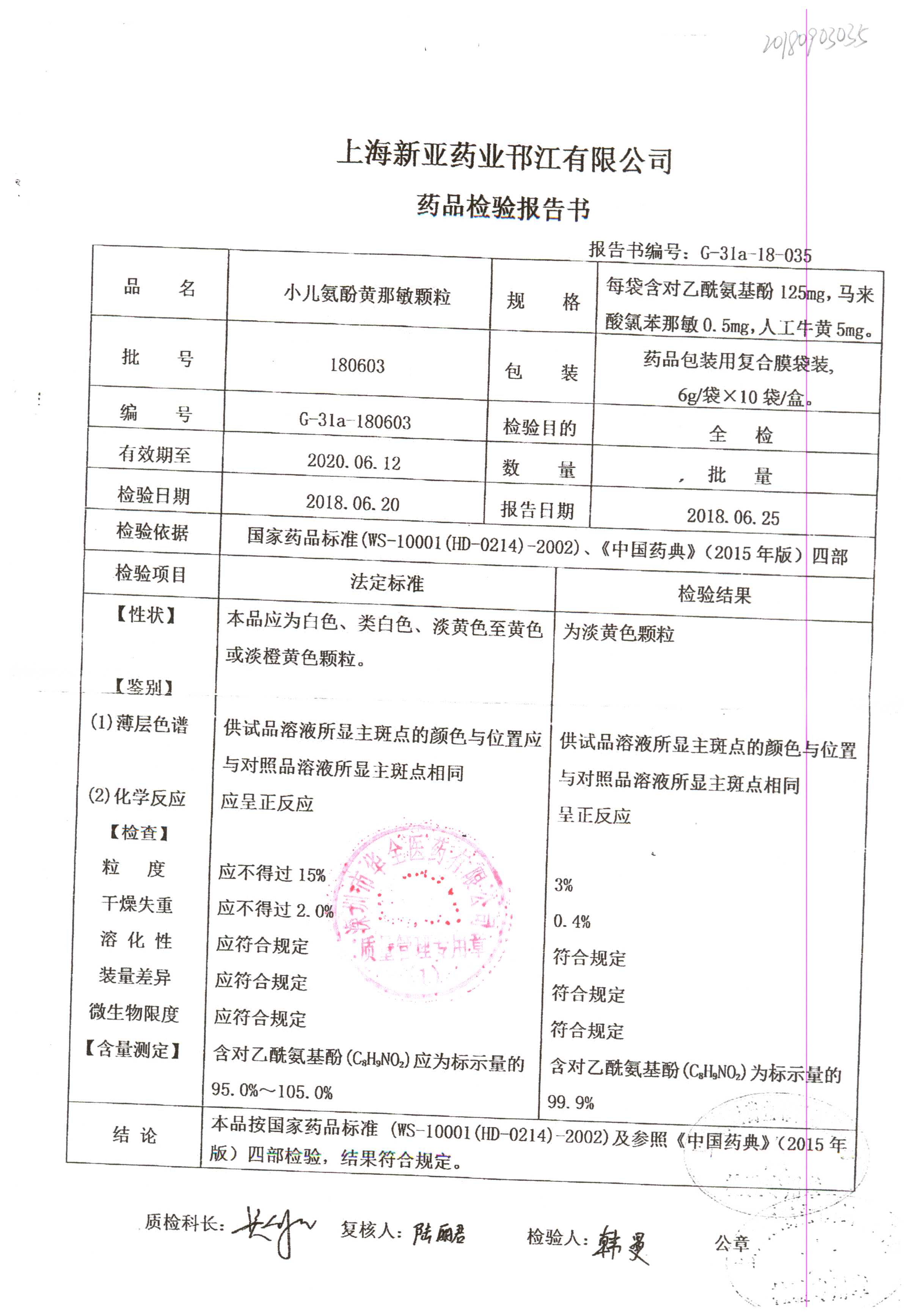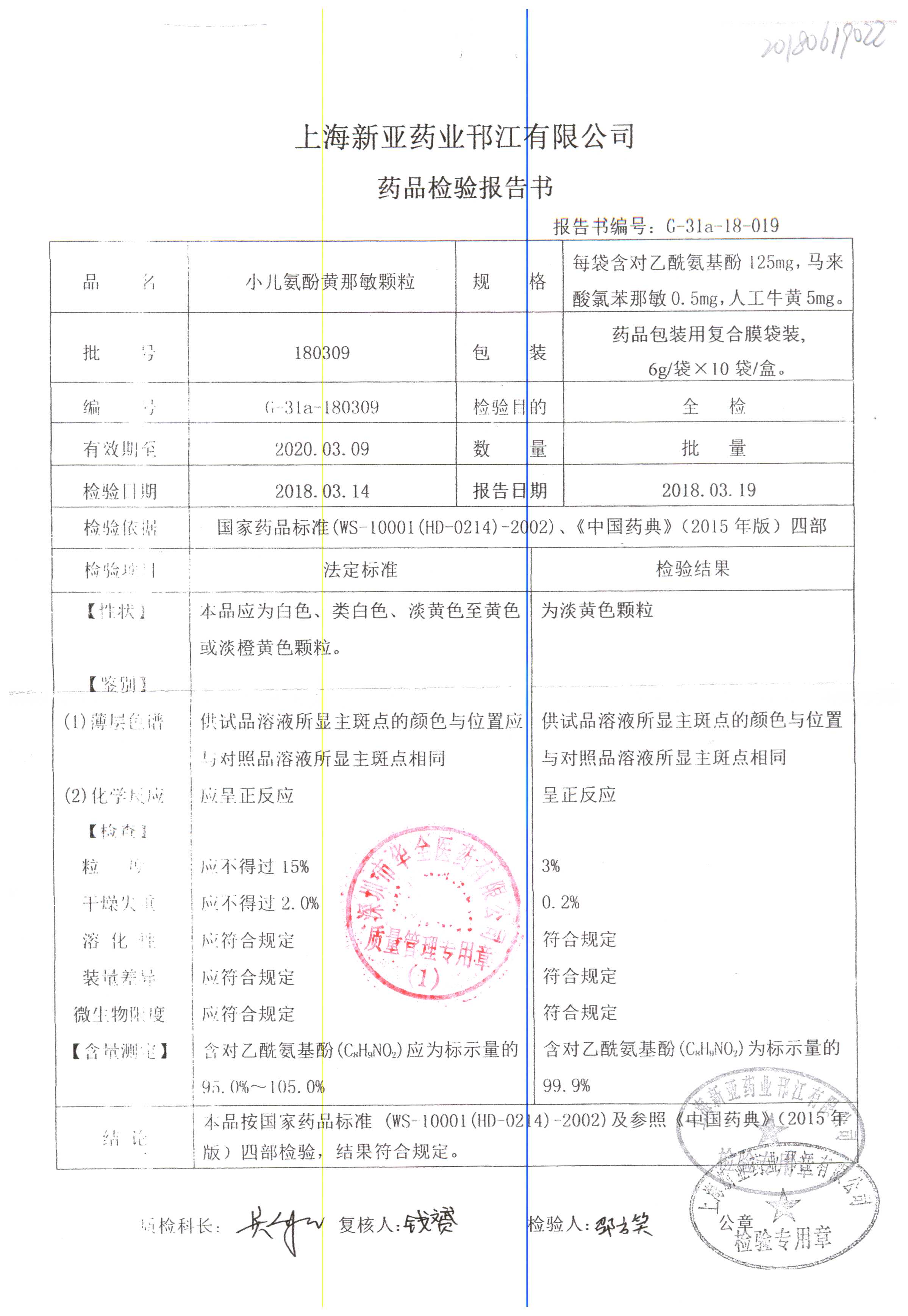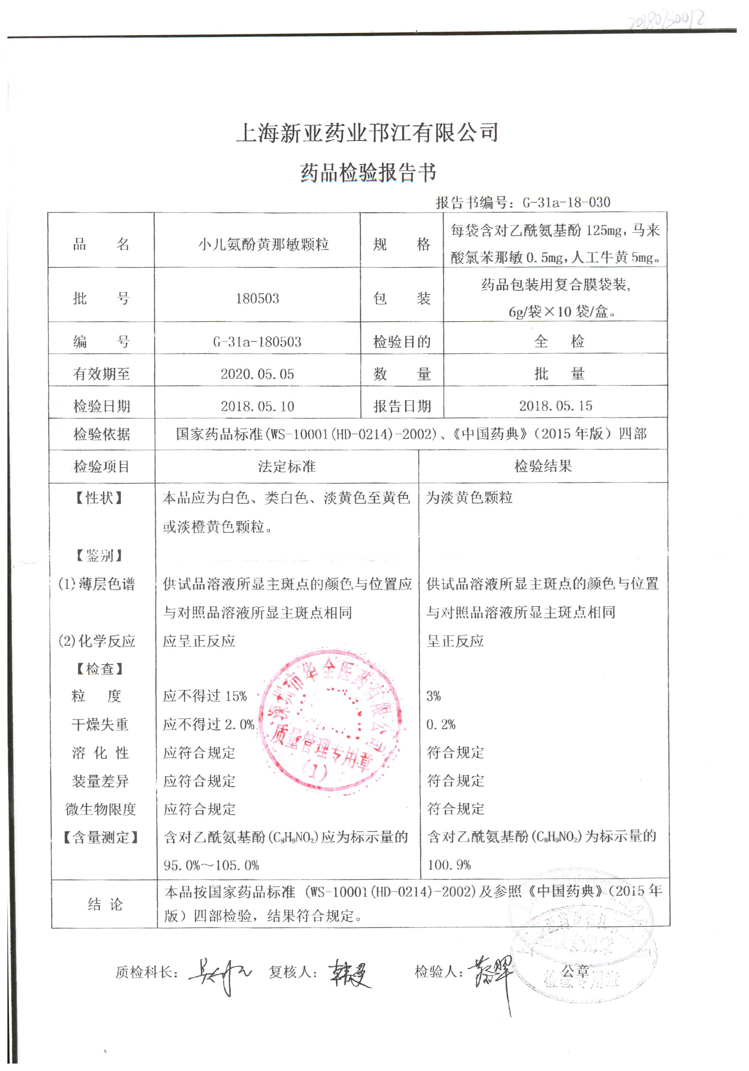 | 小兒氨酚黃那敏顆粒 | 6g*10袋 | 180603 | 查看詳情 |