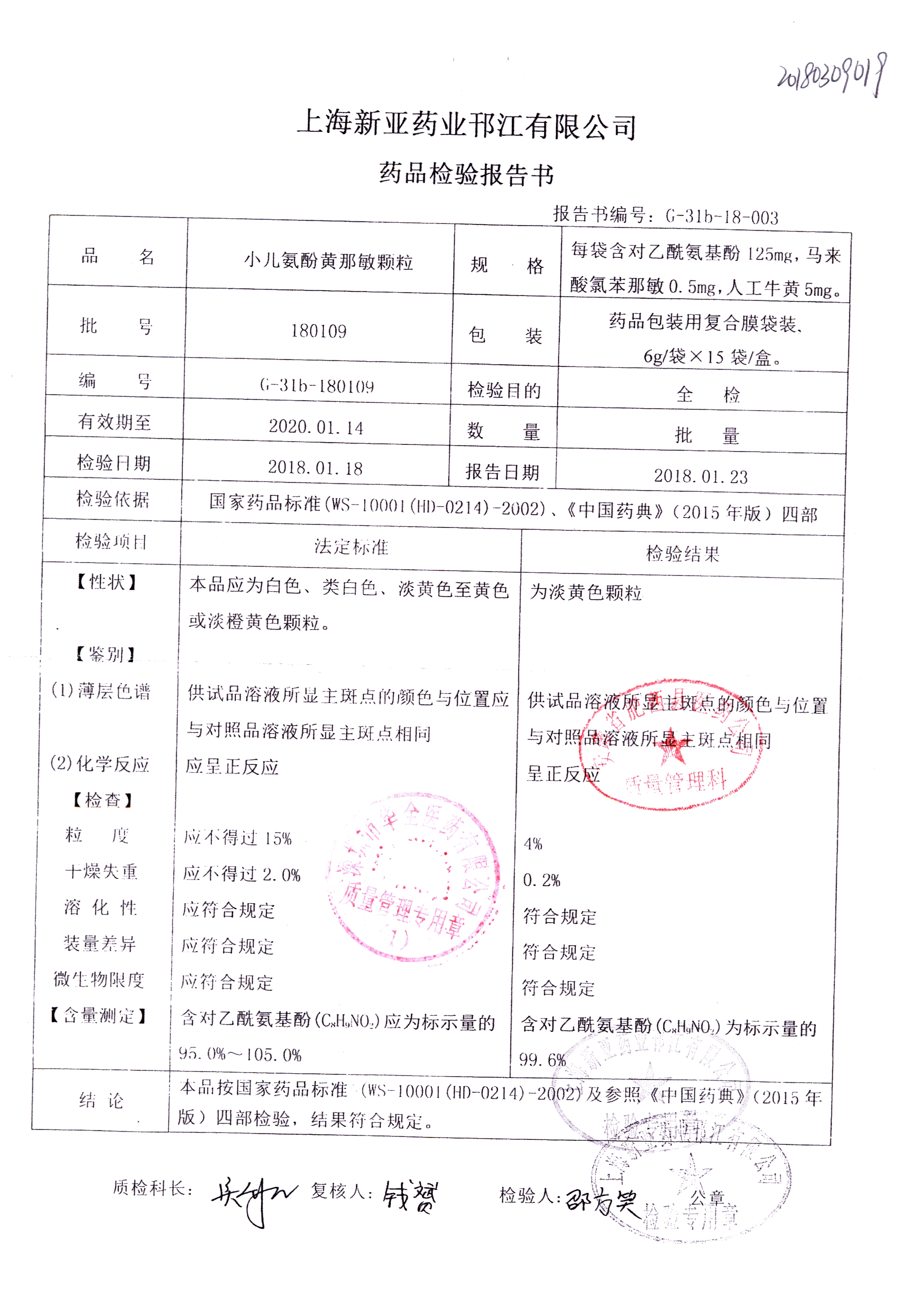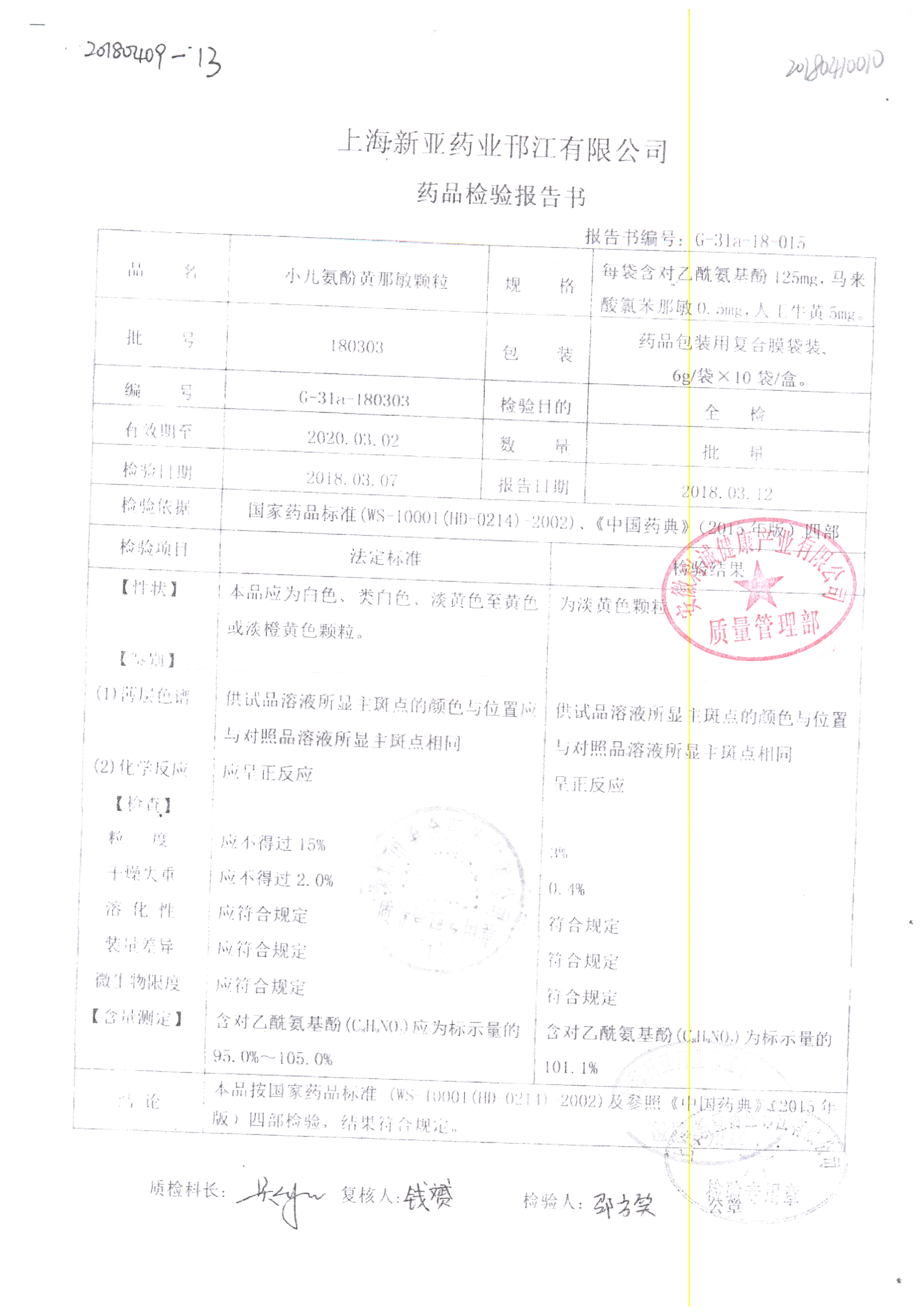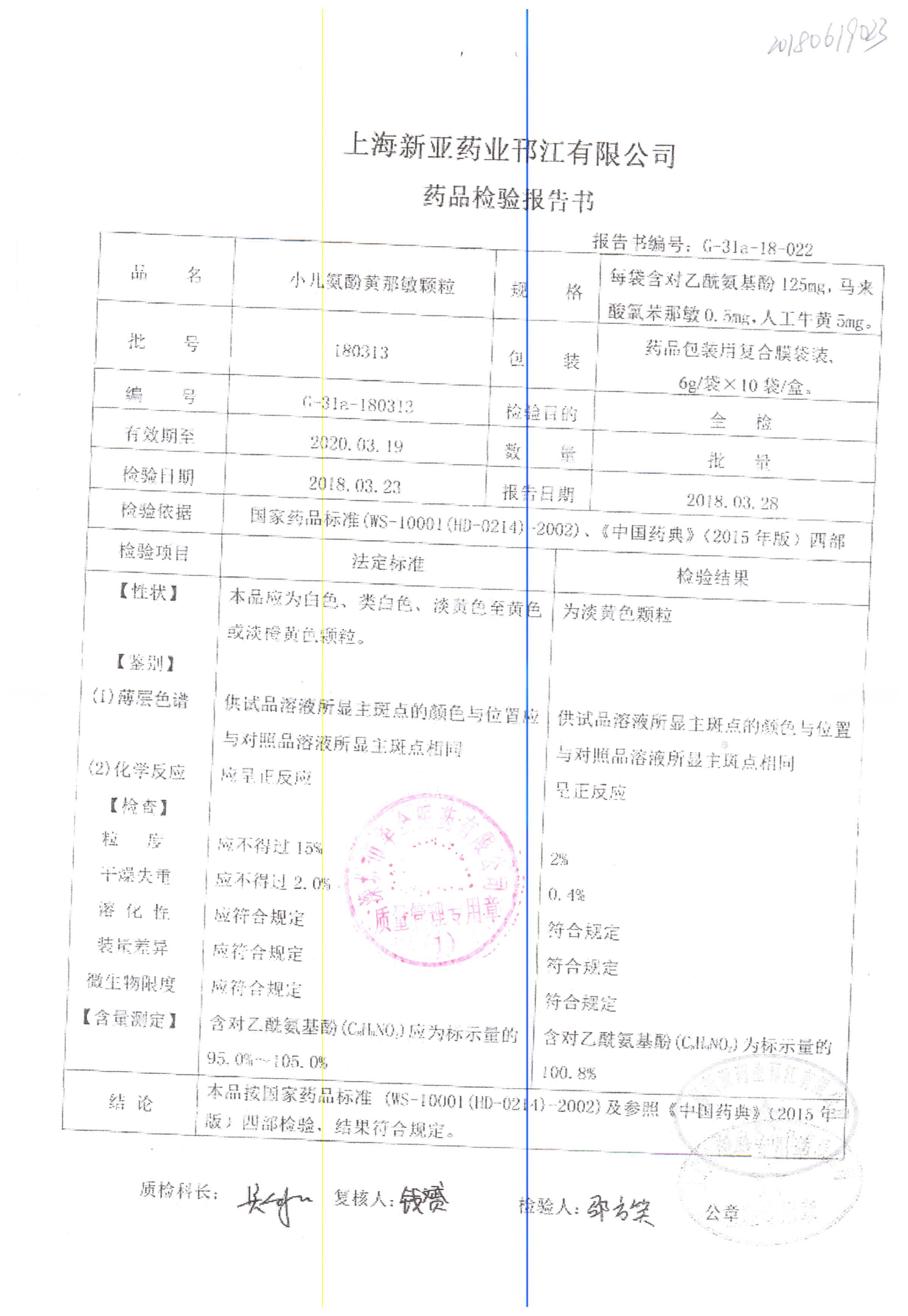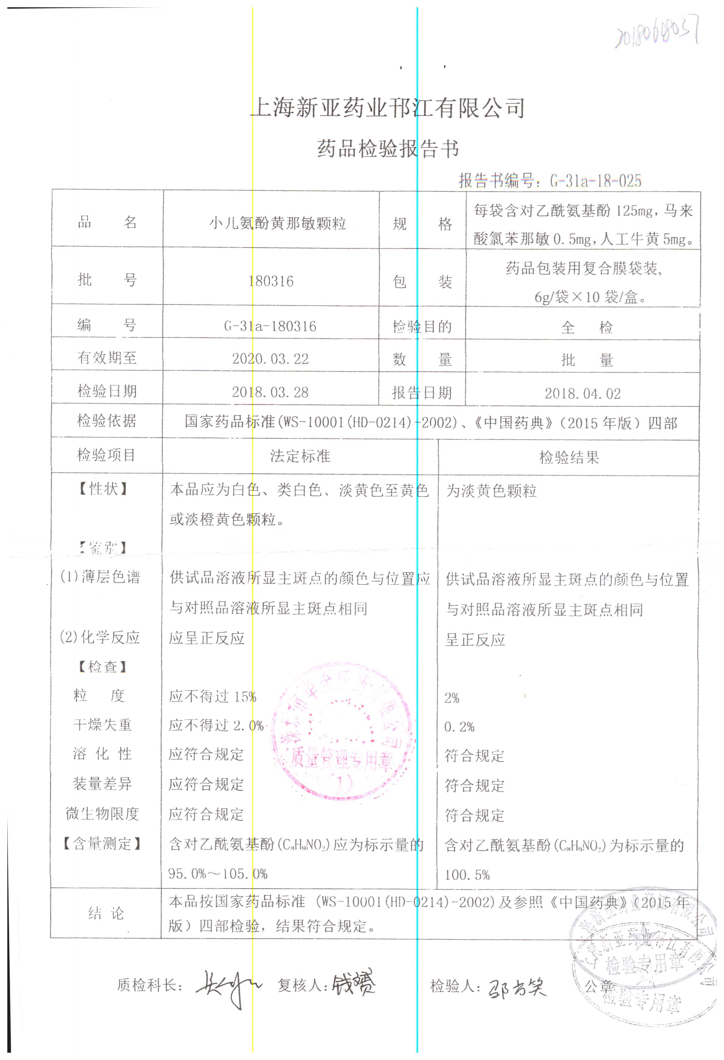 | 小兒氨酚黃那敏顆粒 | 6g*10袋 | 180603 | 查看詳情 |
