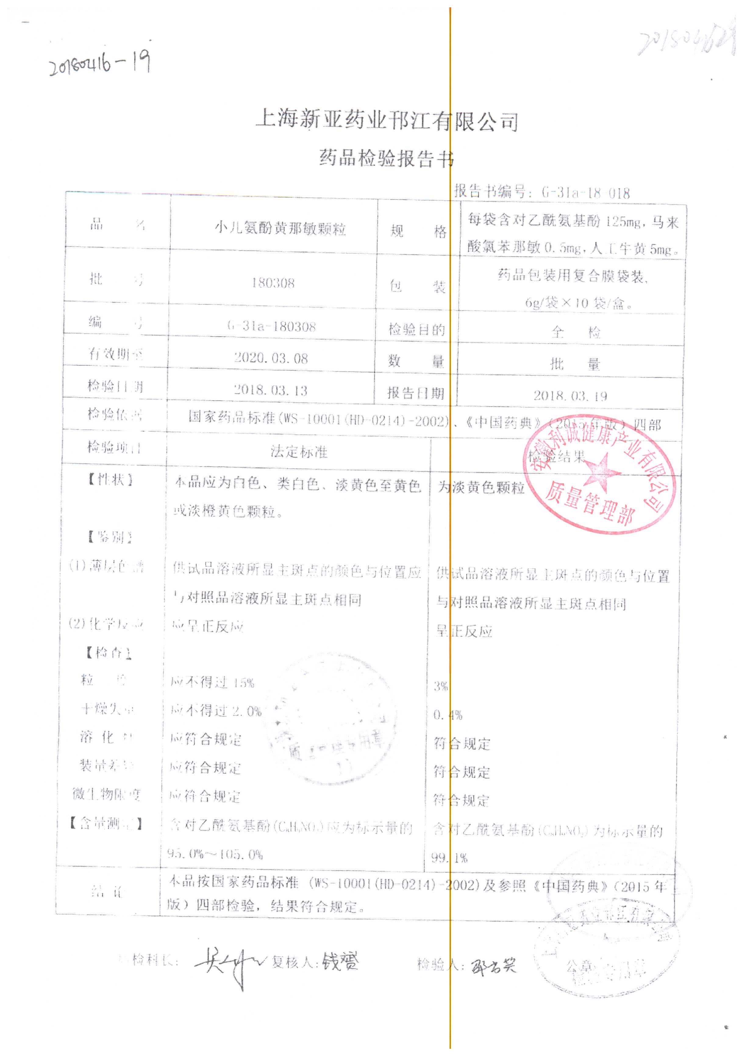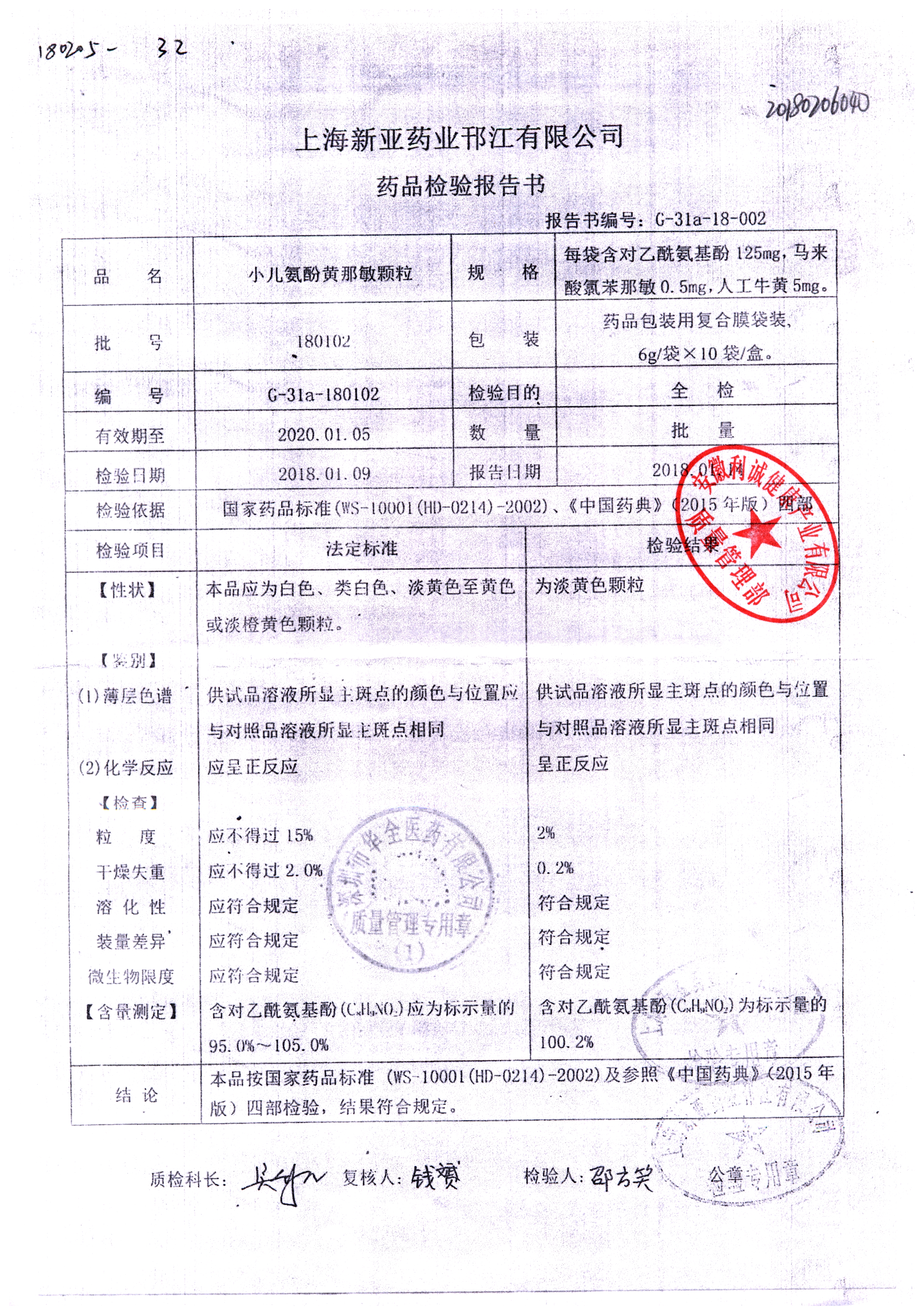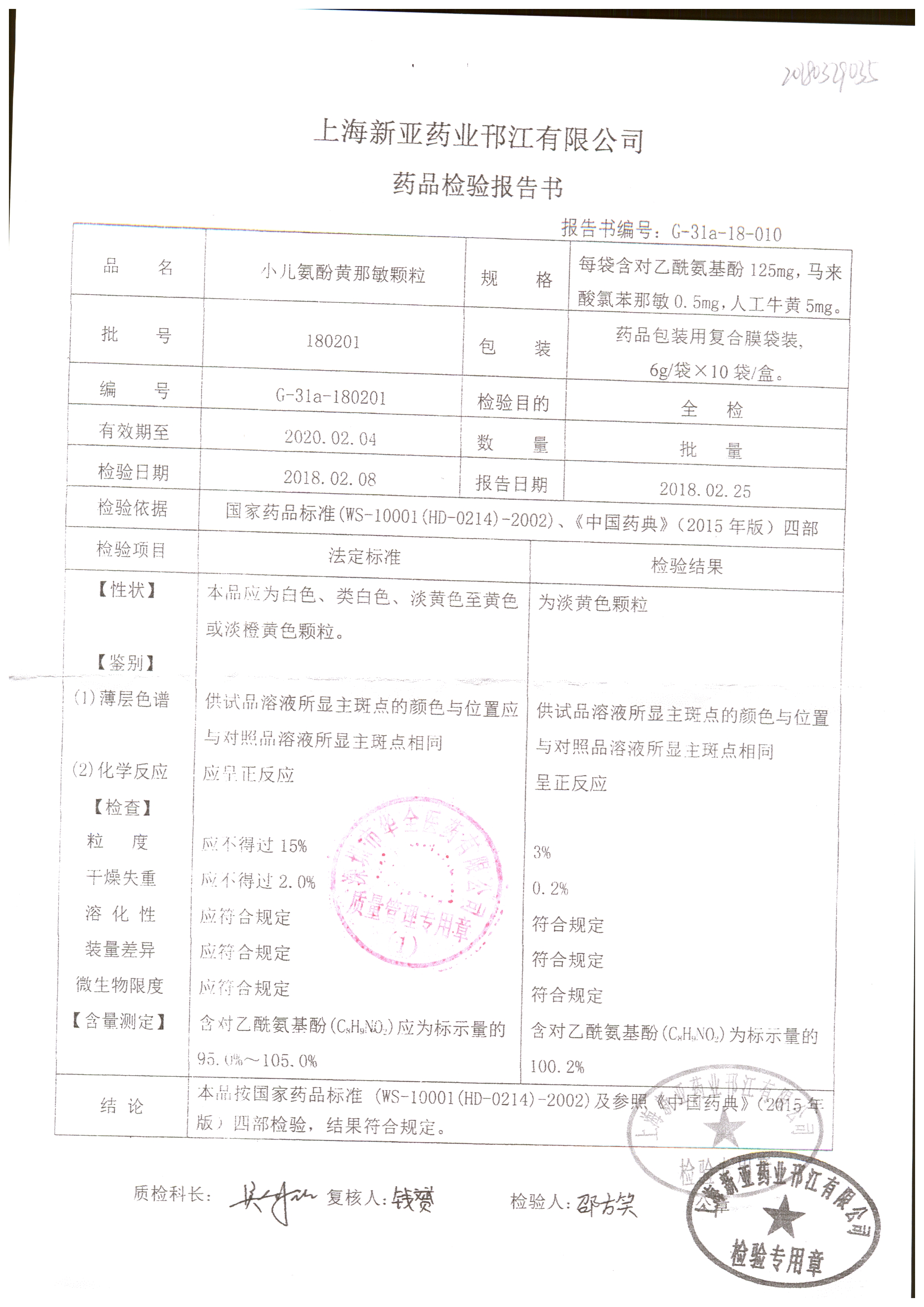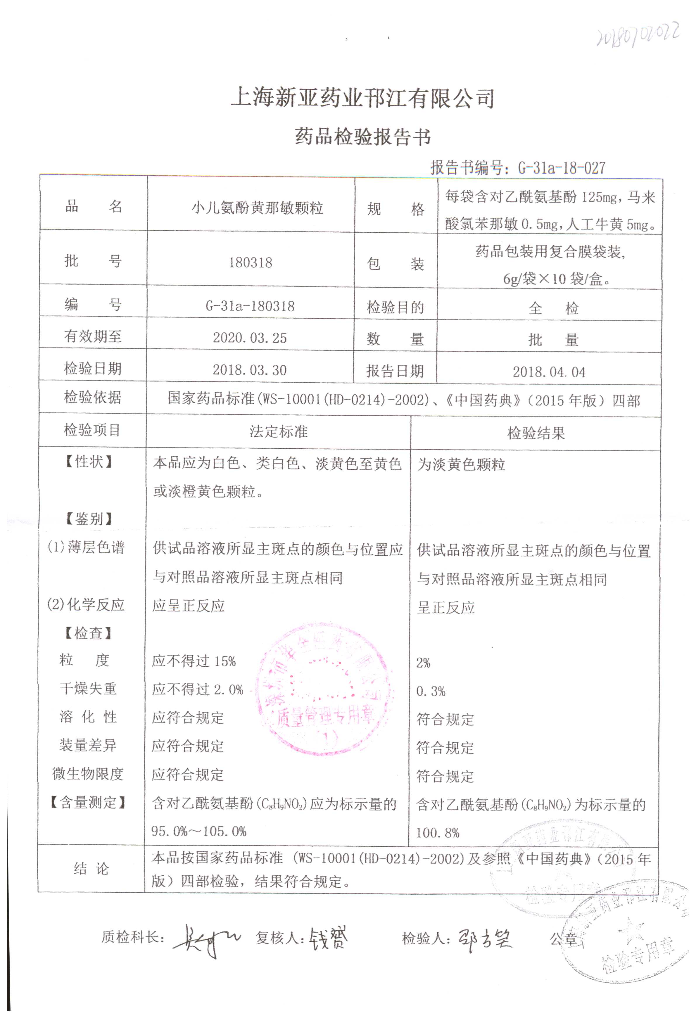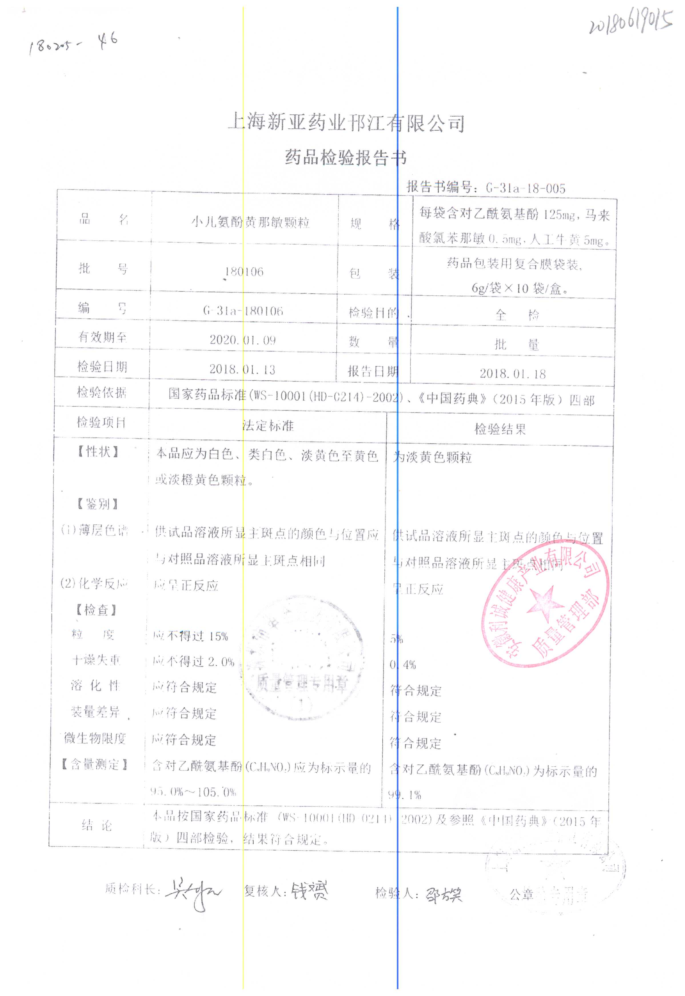 | 小兒氨酚黃那敏顆粒 | 6g*10袋 | 180318 | 查看詳情 |