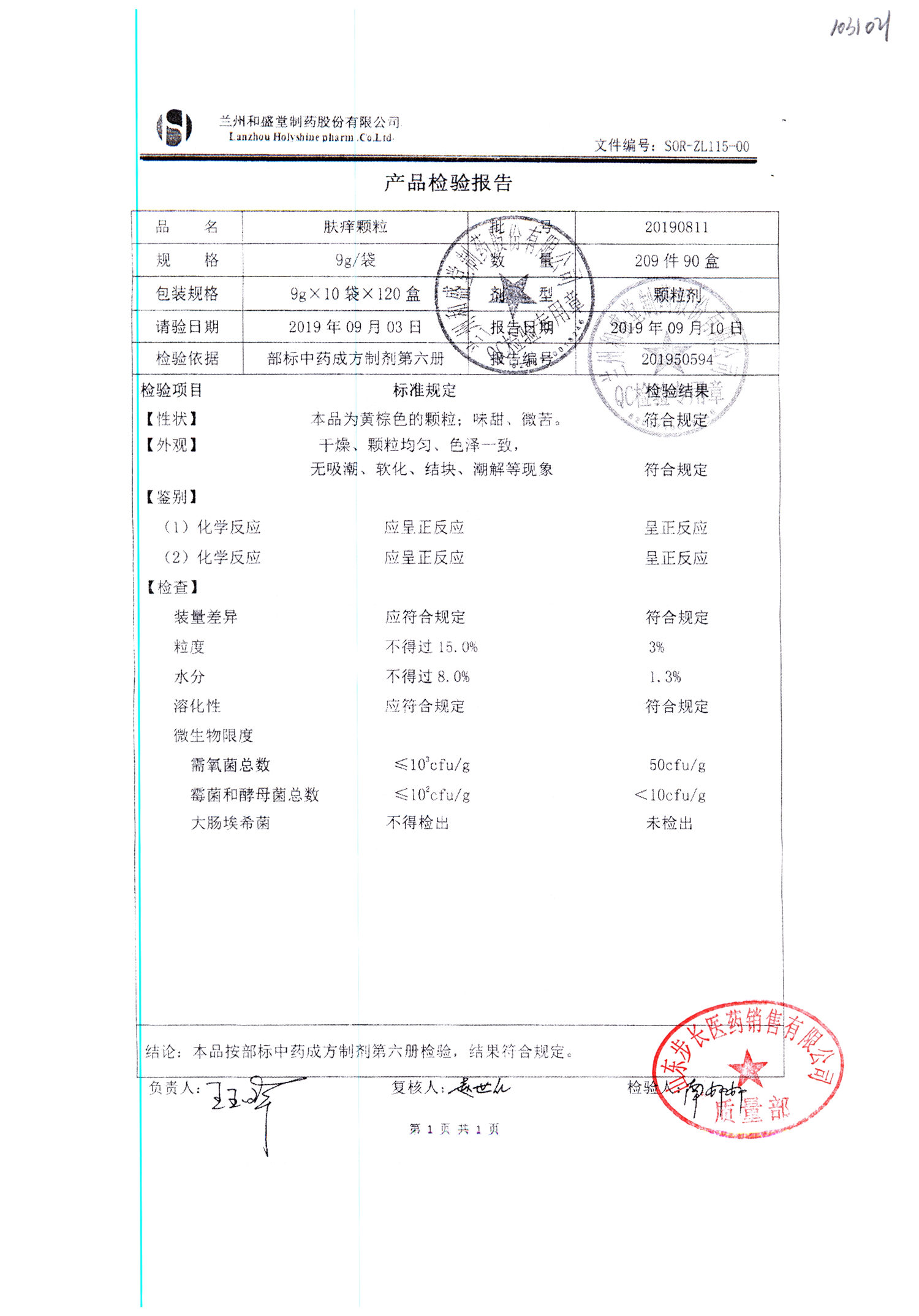 | 膚癢顆粒 | 9g*10袋 | 20190811 | 查看詳情 |