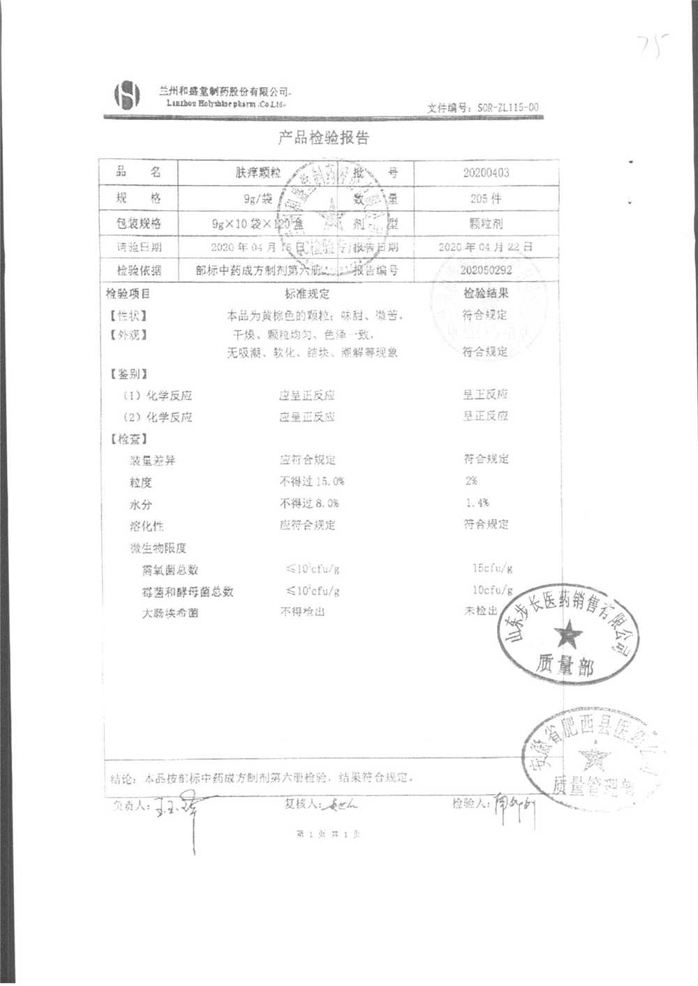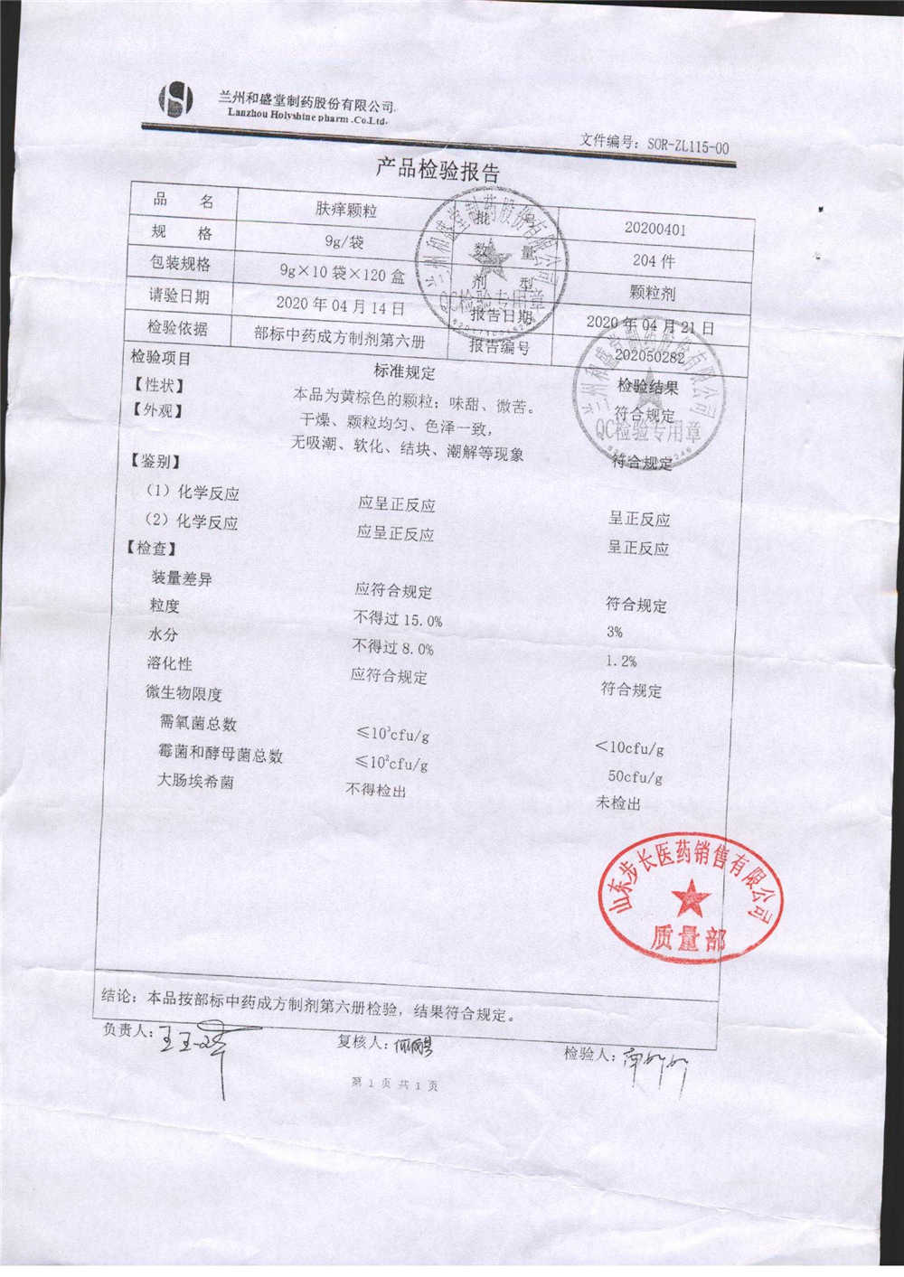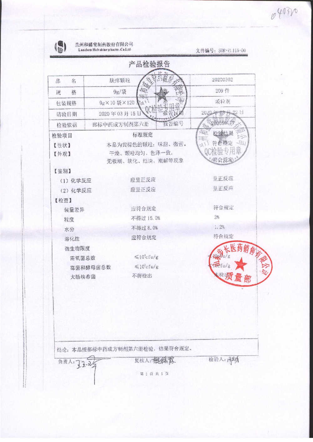 | 膚癢顆粒 | 9g*10袋 | 20200403 | 查看詳情 |