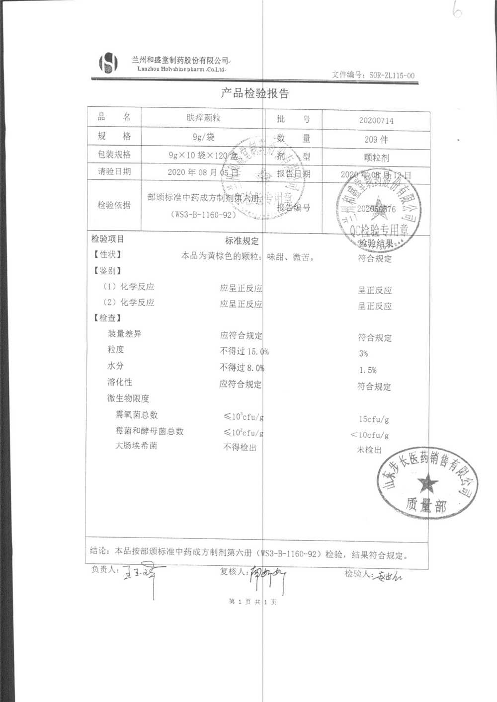 | 膚癢顆粒 | 9g*10袋 | 20200714 | 查看詳情 |