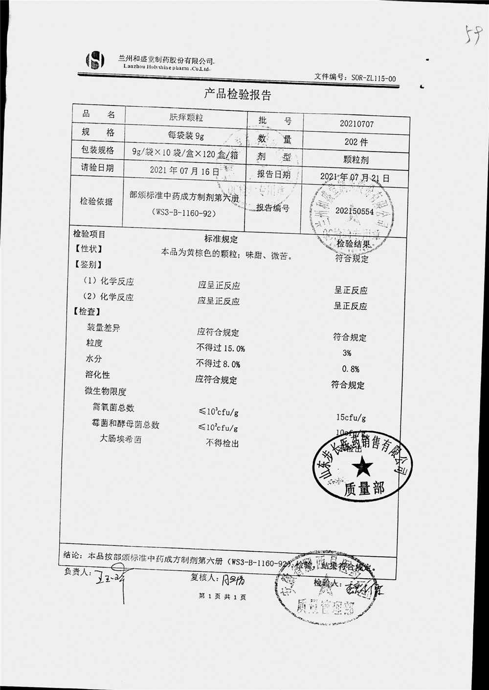 | 膚癢顆粒 | 9g*10袋 | 20210707 | 查看詳情 |