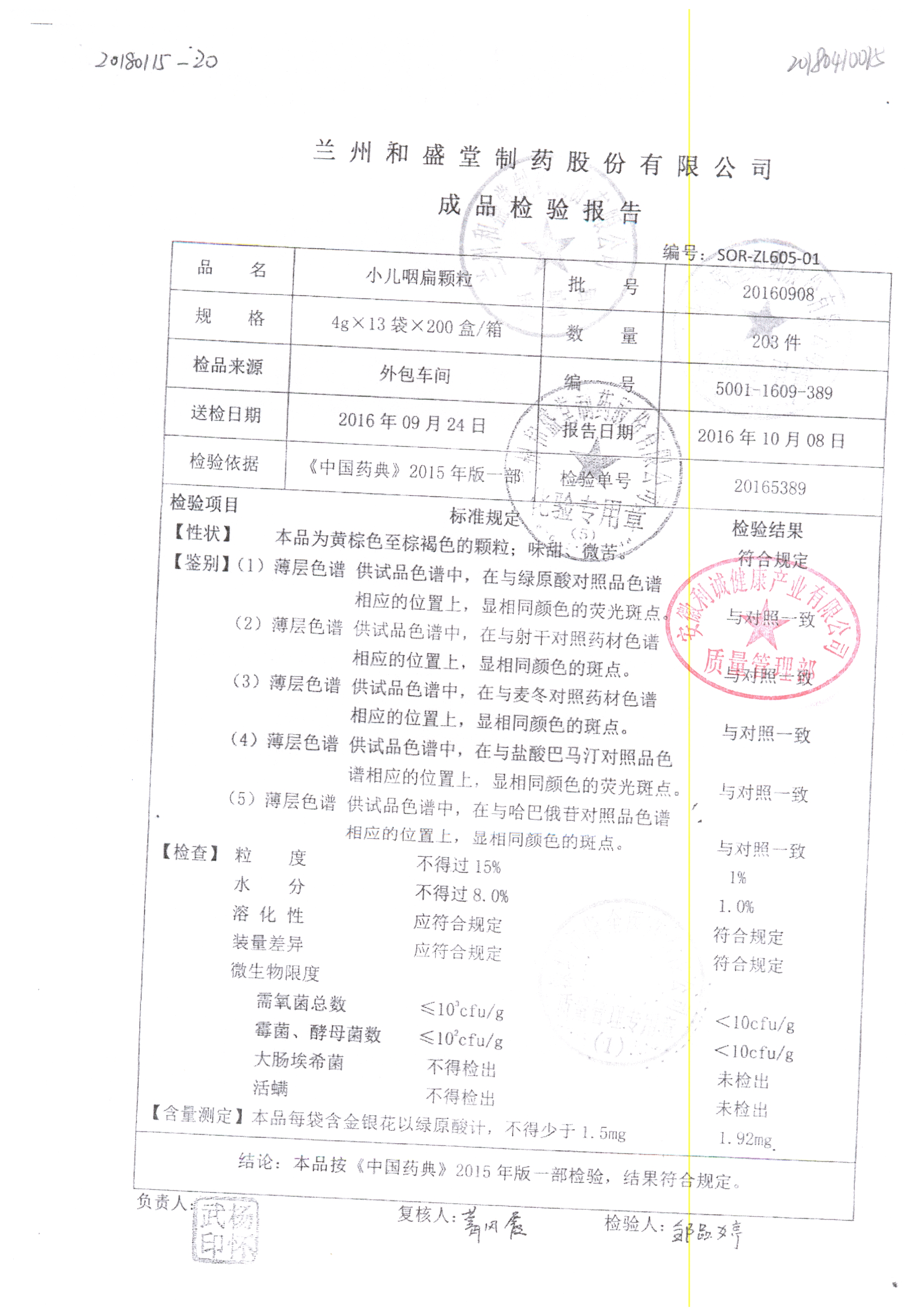 | 小兒咽扁顆粒 | 4g*13袋 | 20160908 | 查看詳情 |