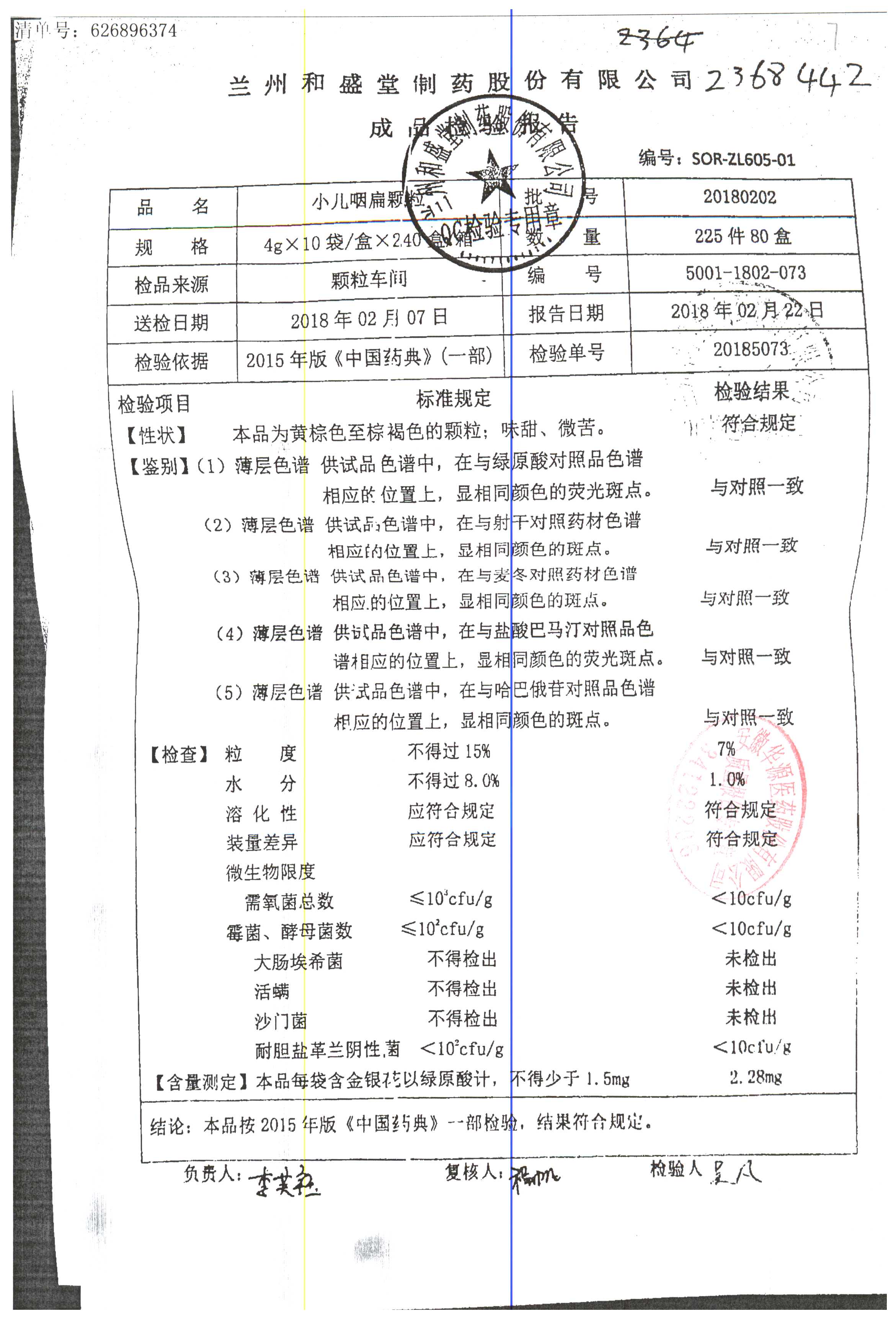 | 小兒咽扁顆粒 | 4g*13袋 | 20180202 | 查看詳情 |