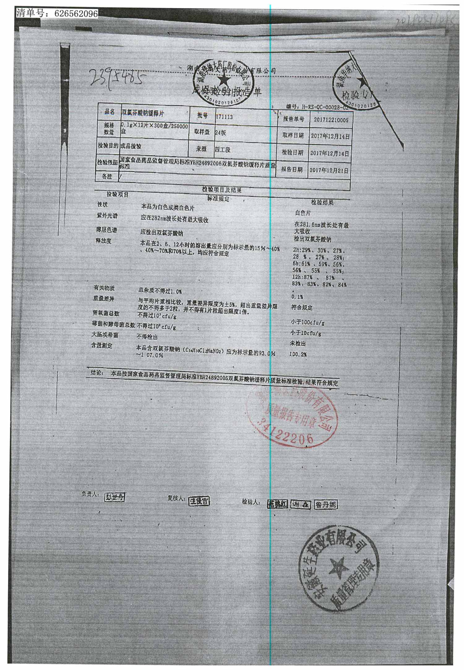 | 雙氯芬酸鈉緩釋片 | 0.1g | 171113 | 查看詳情 |