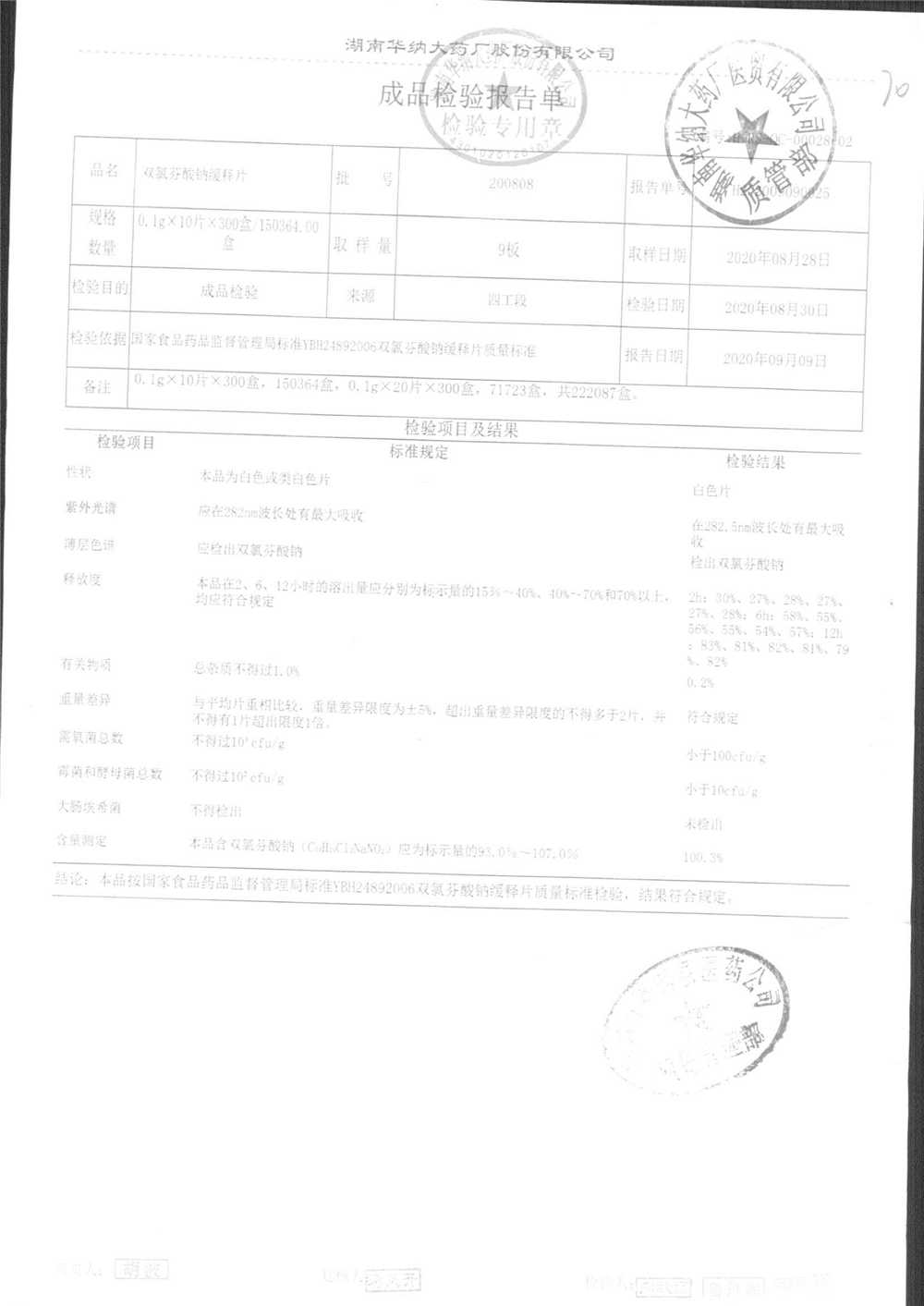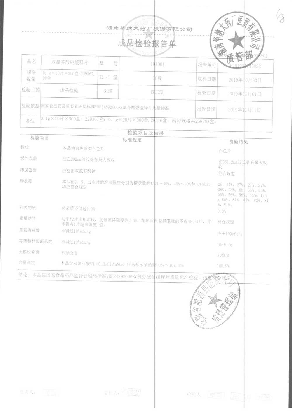 | 雙氯芬酸鈉緩釋片 | 0.1g | 191208 | 查看詳情 |
