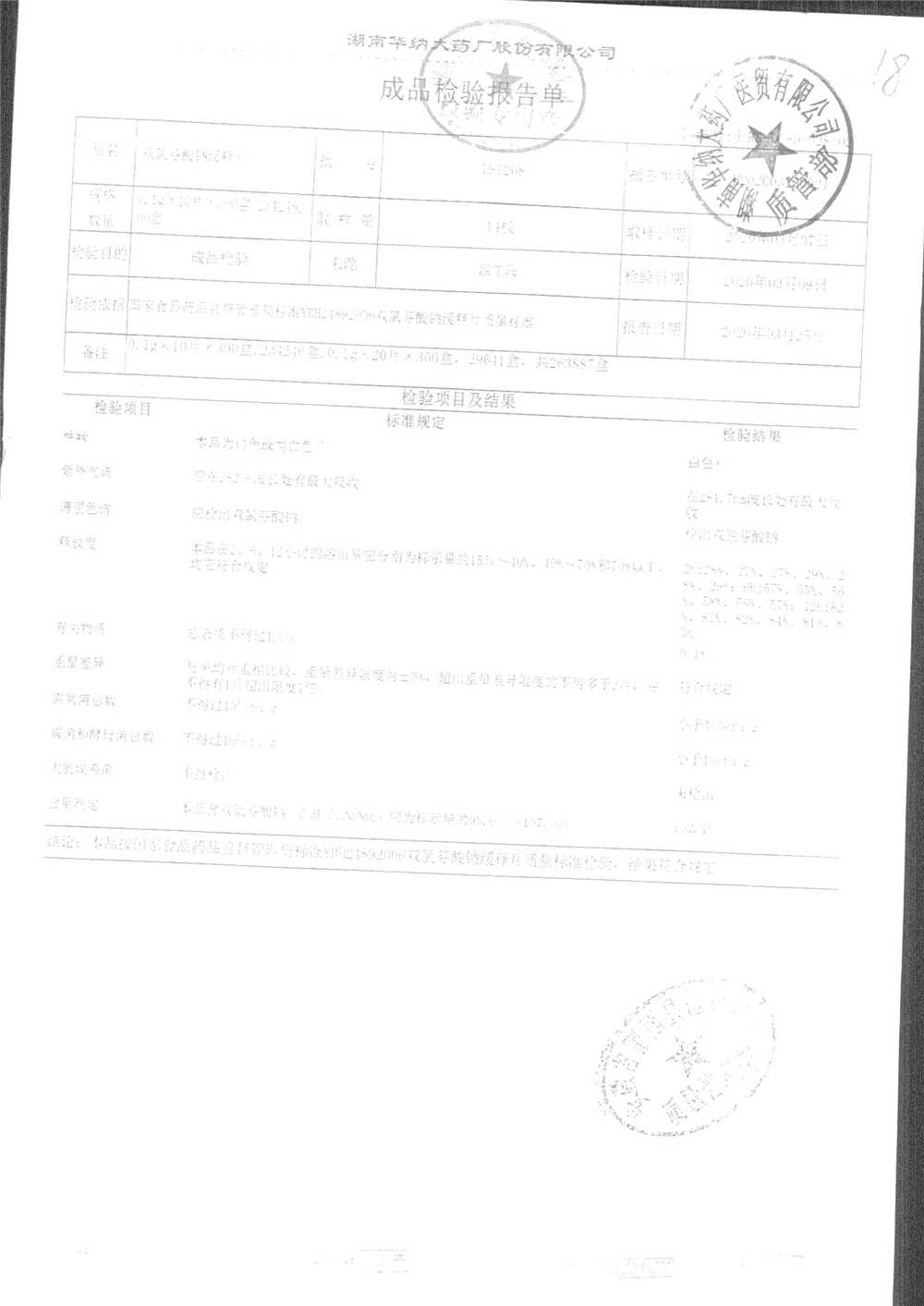 | 名稱(chēng) | 規(guī)格 | 批號(hào) | 藥檢報(bào)告 |