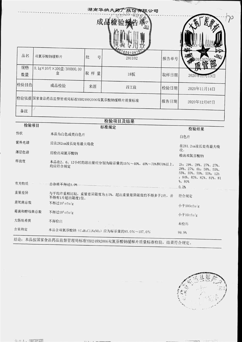 | 雙氯芬酸鈉緩釋片 | 0.1g | 210201 | 查看詳情 |
