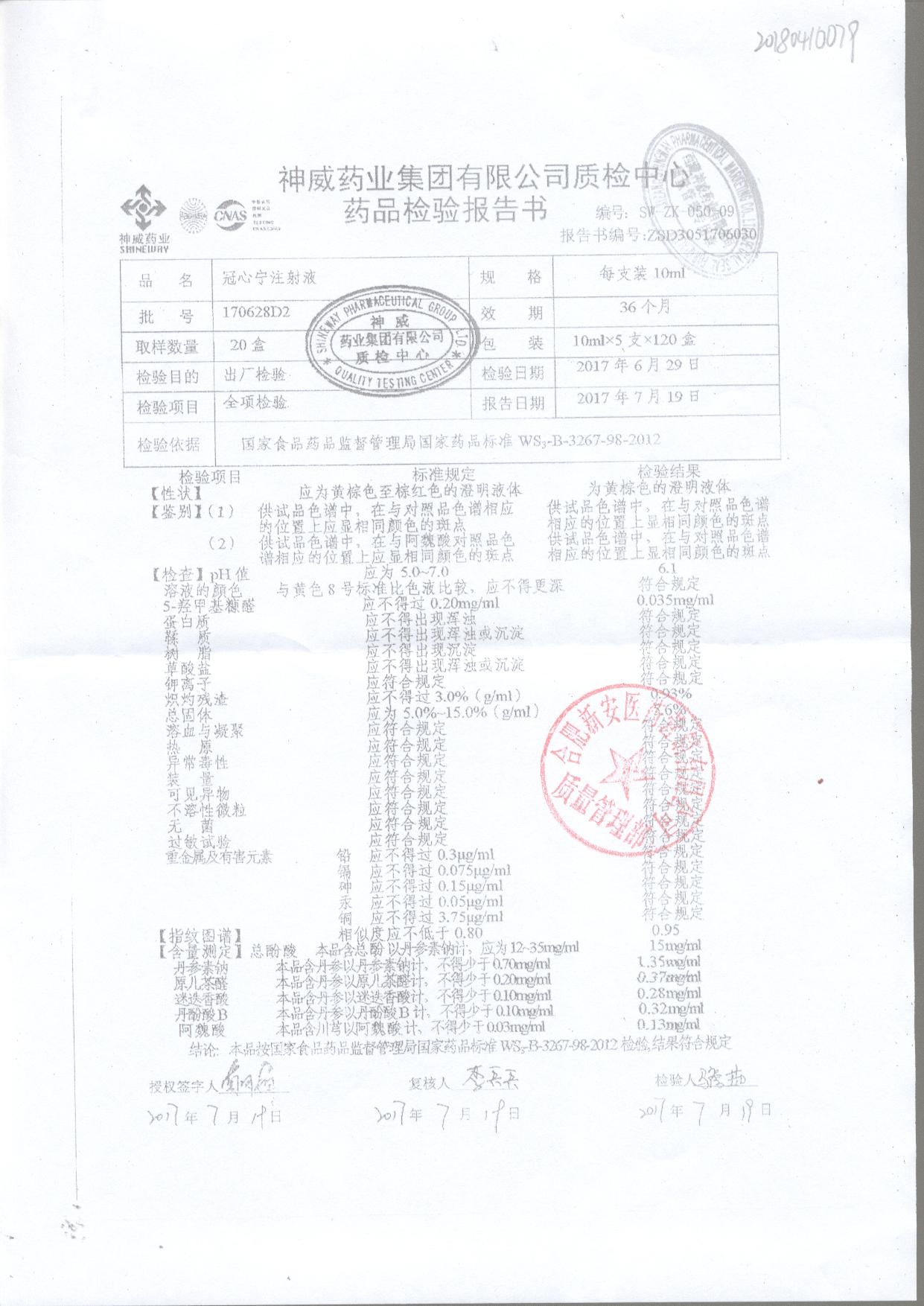 | 冠心寧注射液 | 10ml*5支 | 170628D2 | 查看詳情 |