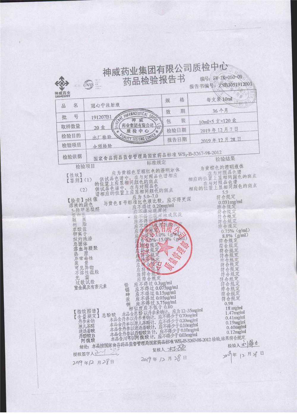 | 冠心寧注射液 | 10ml*5支 | 191207B1 | 查看詳情 |