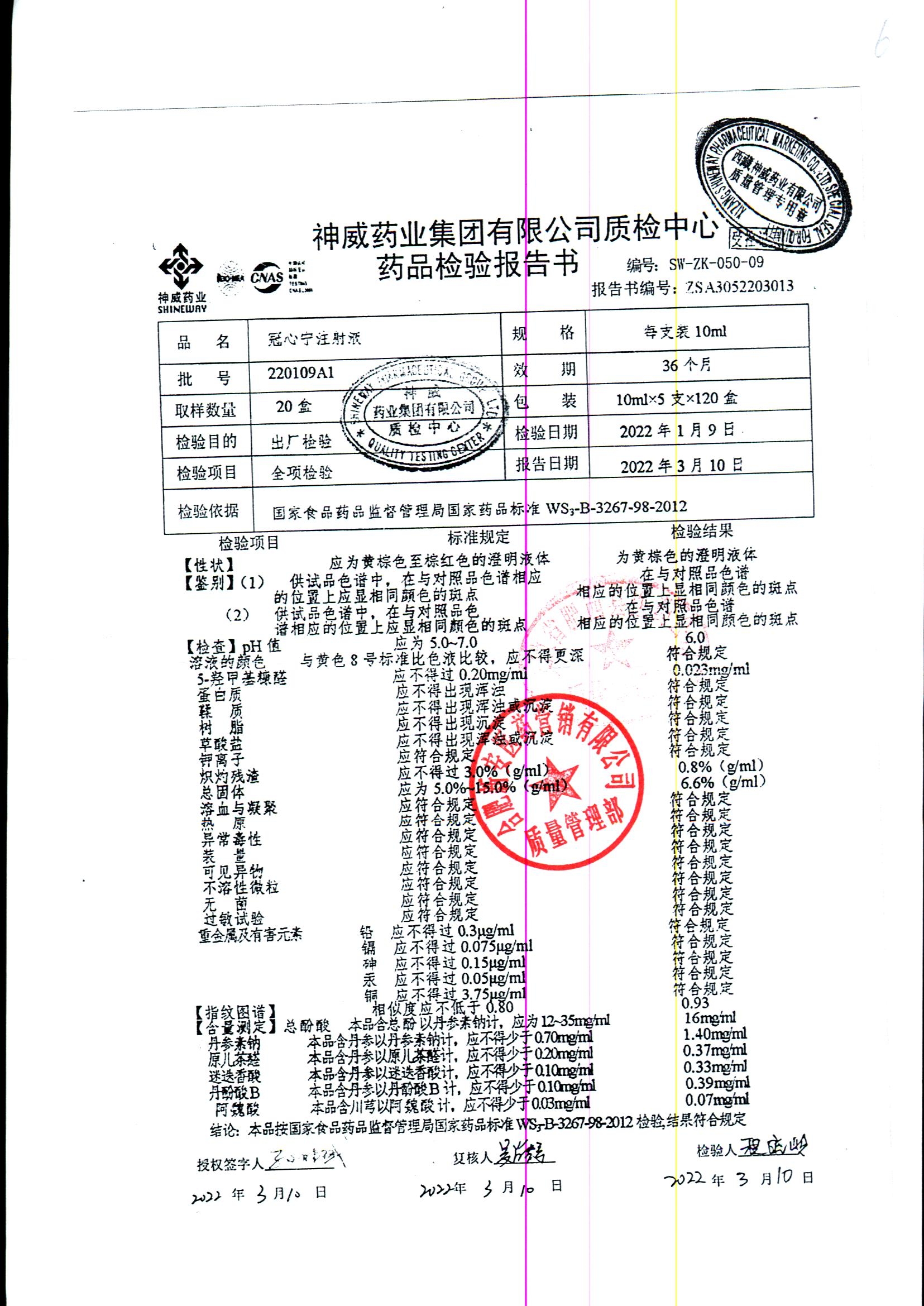 | 冠心寧注射液 | 10ml*5支 | 220109A1 | 查看詳情 |