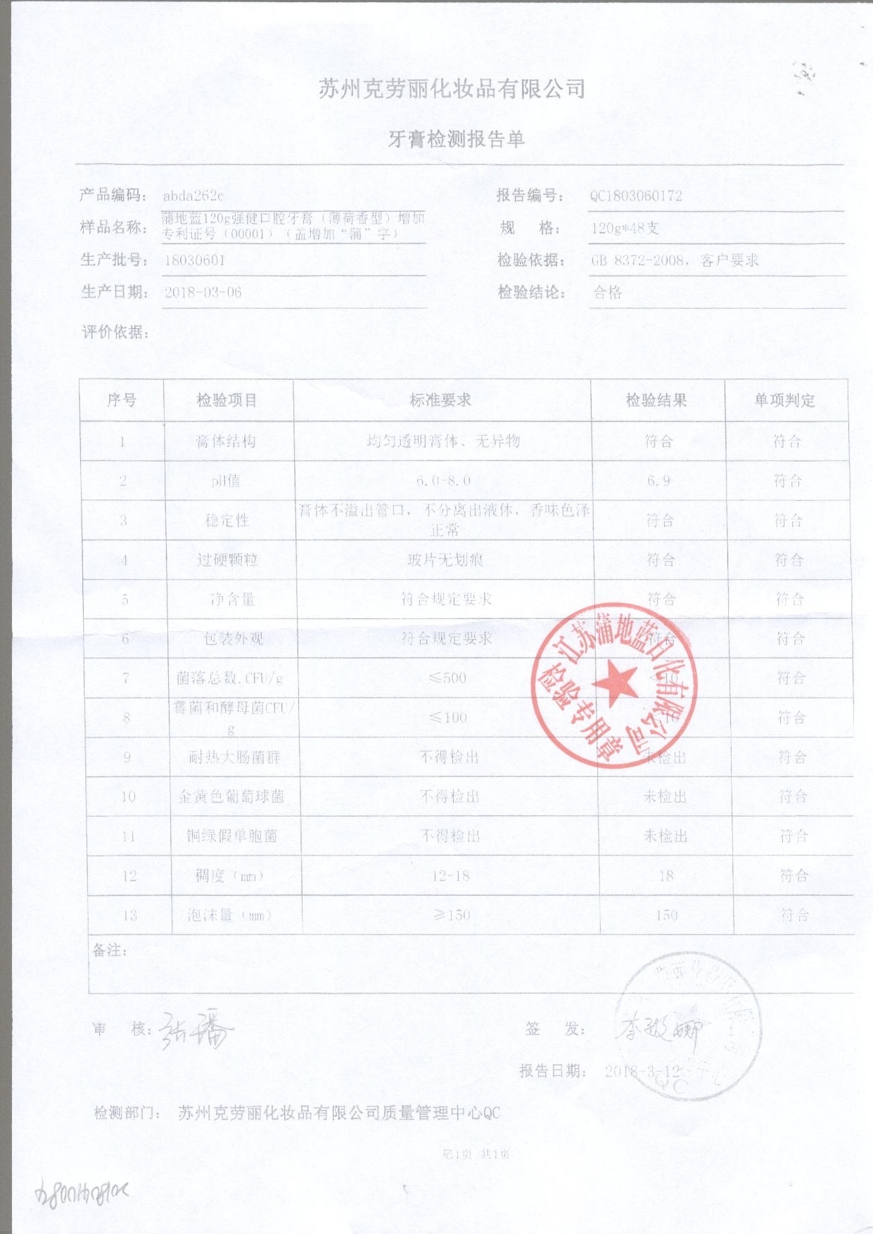| 蒲地藍(lán)強(qiáng)健口腔牙膏(薄荷香型) | 120g | 18030601 | 查看詳情 |