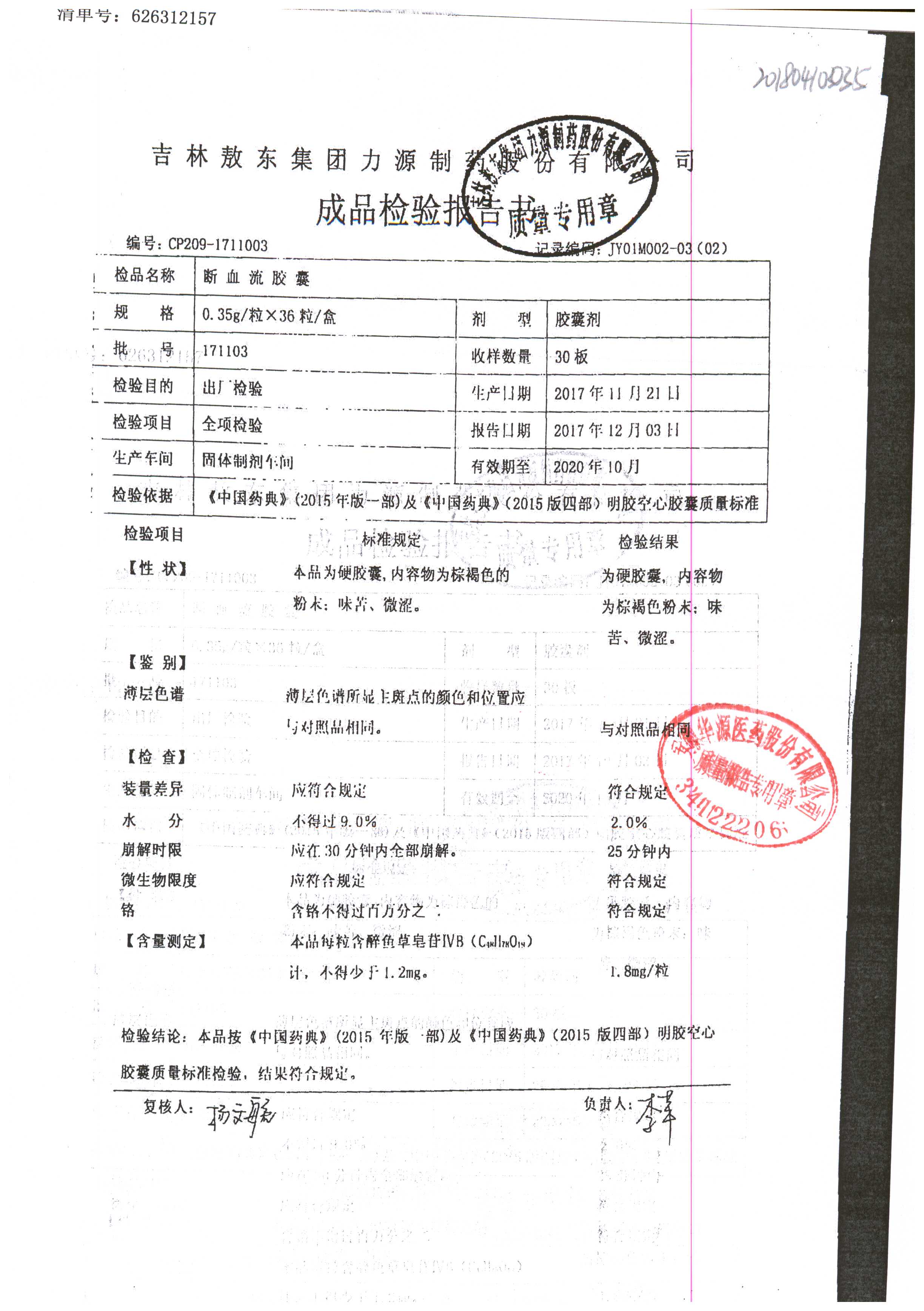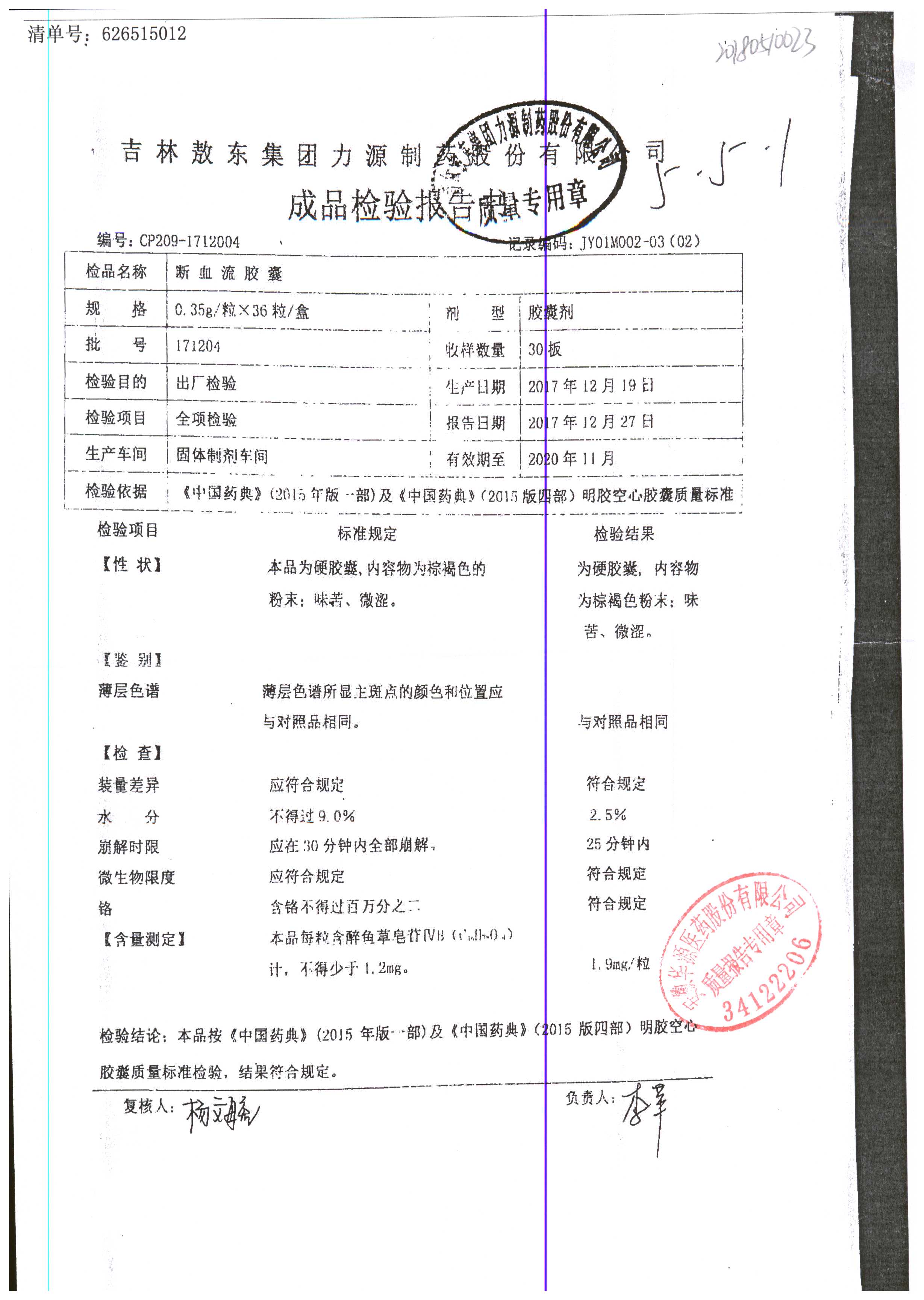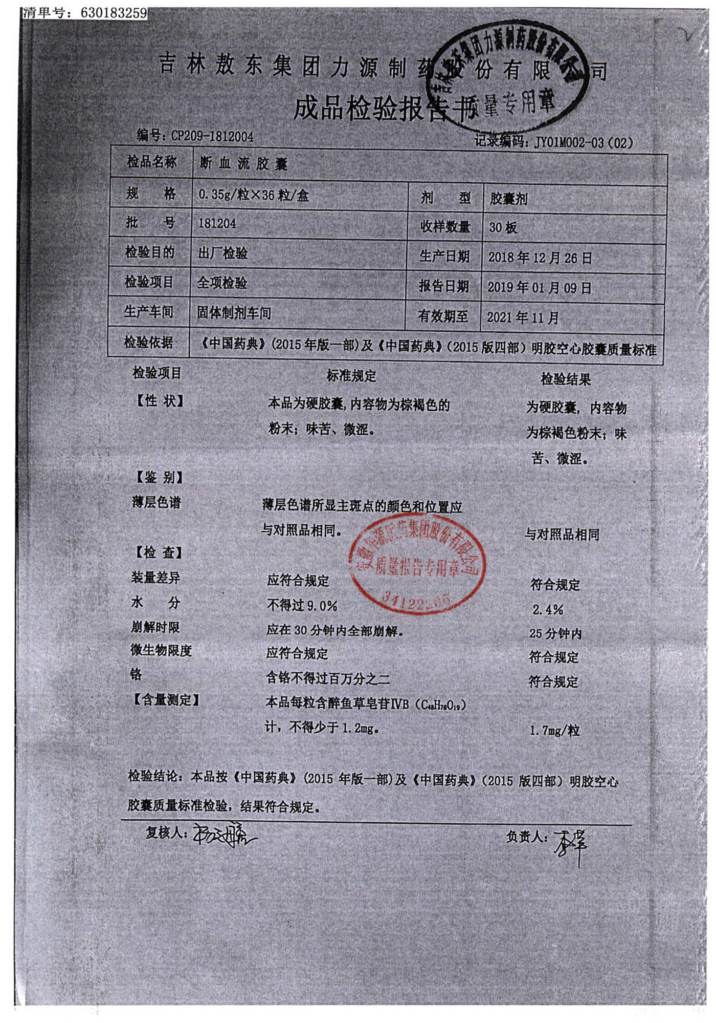 | 斷血流膠囊 | 0.35g*36粒 | 20210103 | 查看詳情 |