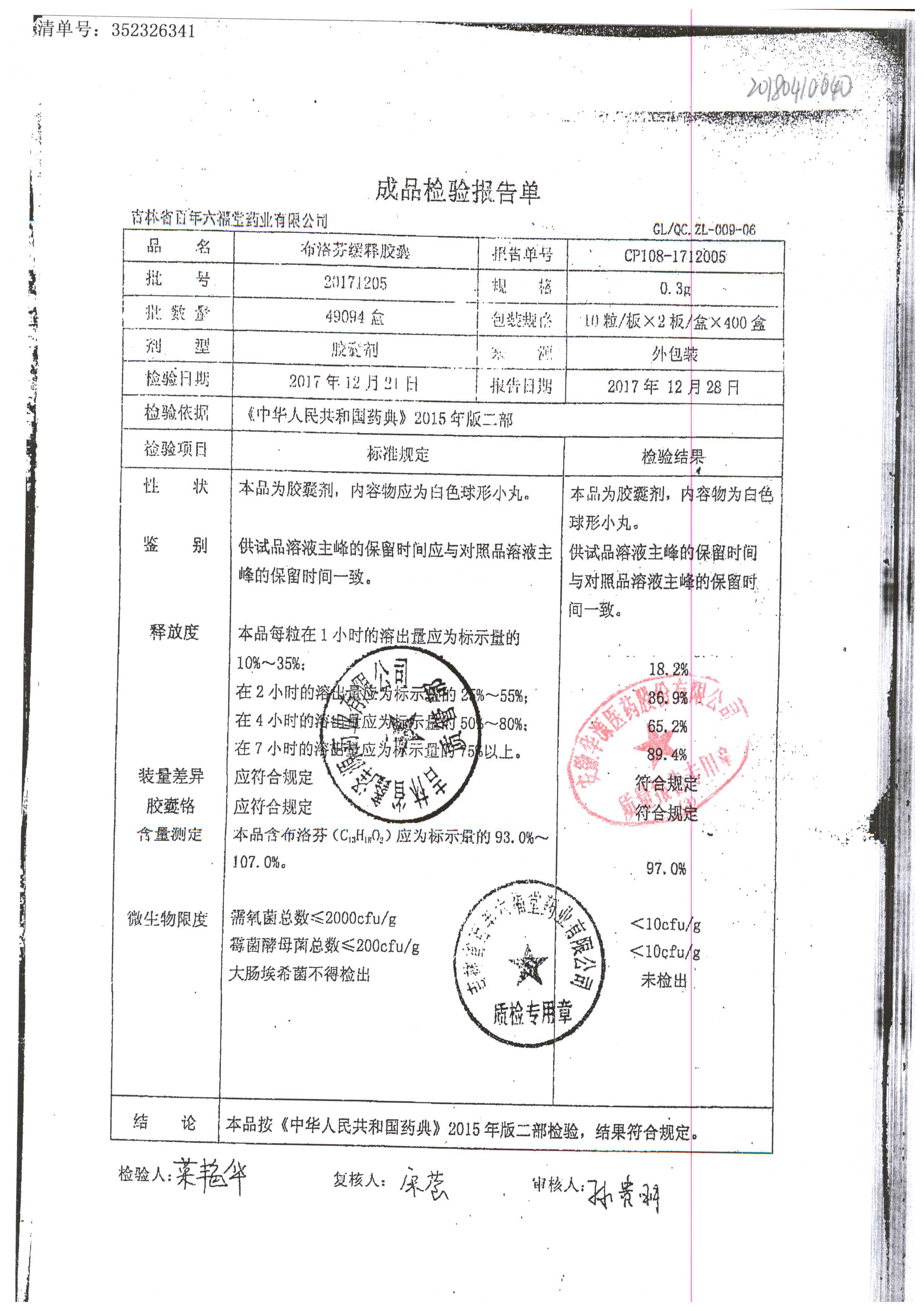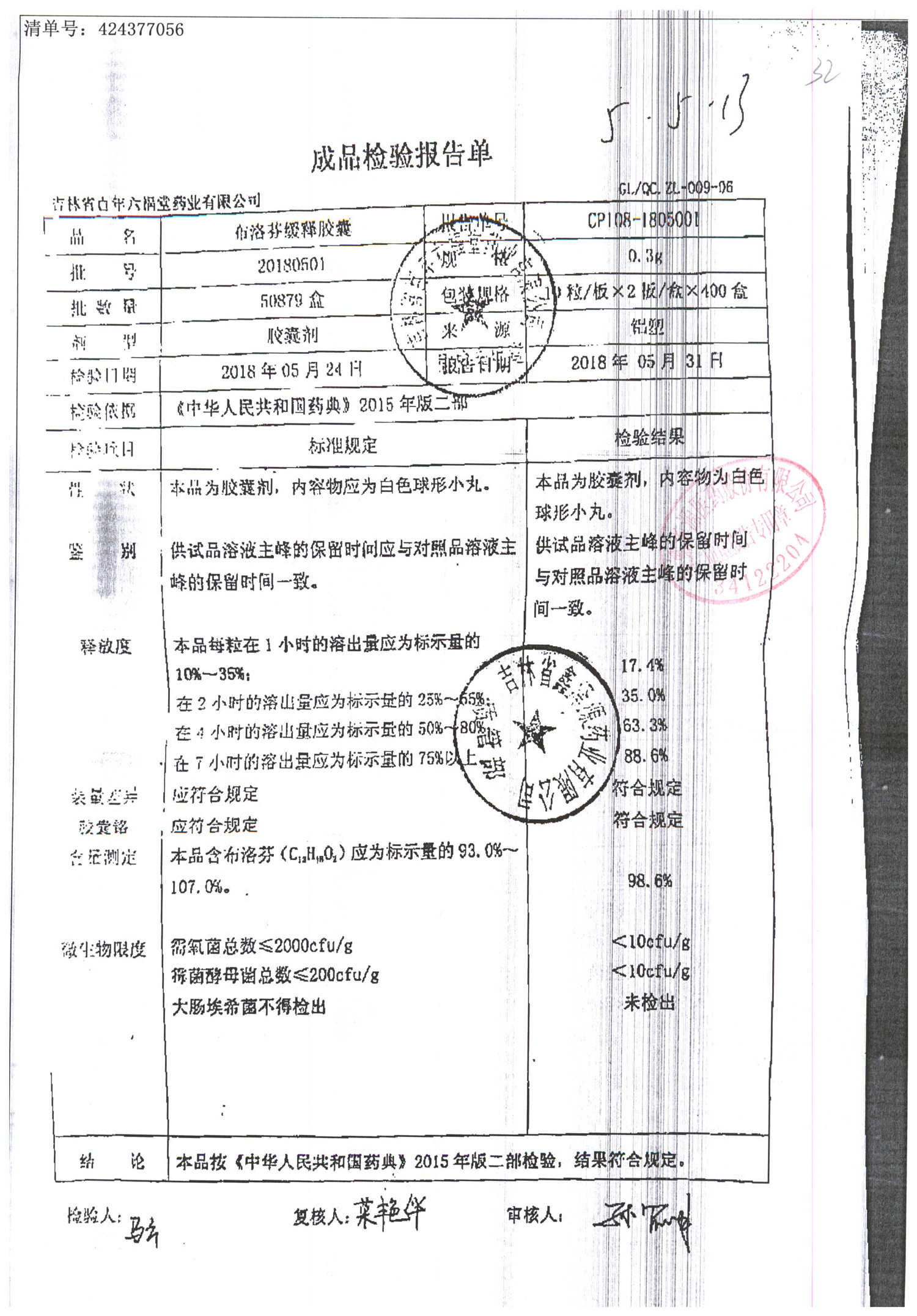 | 布洛芬緩釋膠囊 | 0.3g*12s | 20180501 | 查看詳情 |