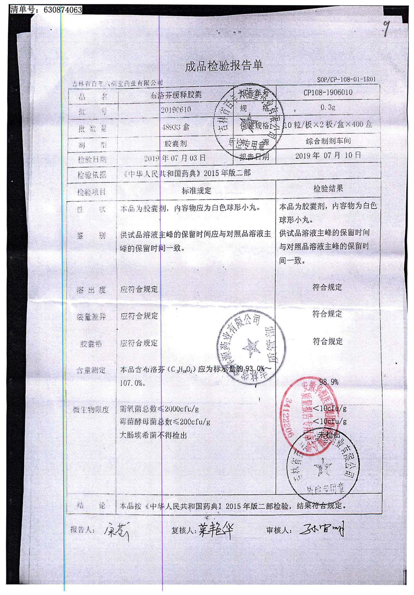 | 布洛芬緩釋膠囊 | 0.3g*12s | 20190901 | 查看詳情 |