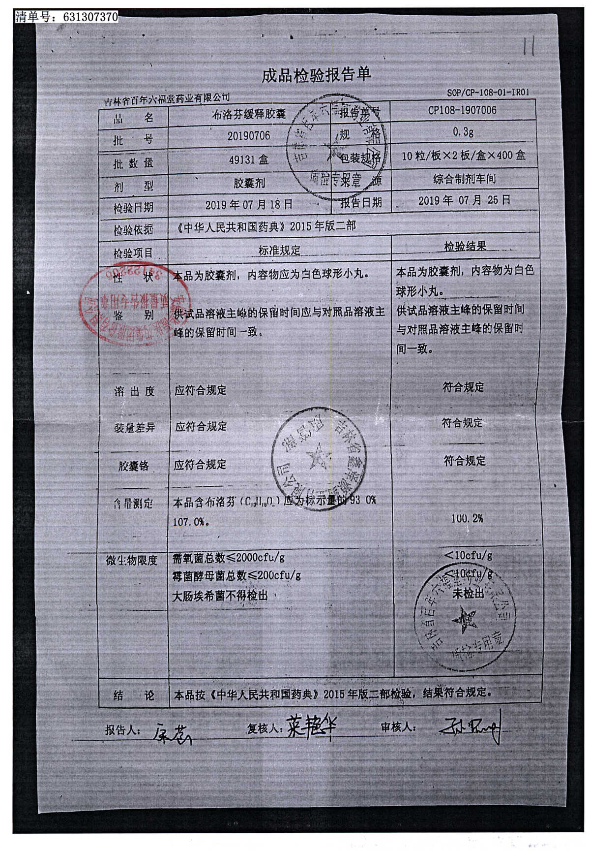 | 布洛芬緩釋膠囊 | 0.3g*12s | 20200702 | 查看詳情 |