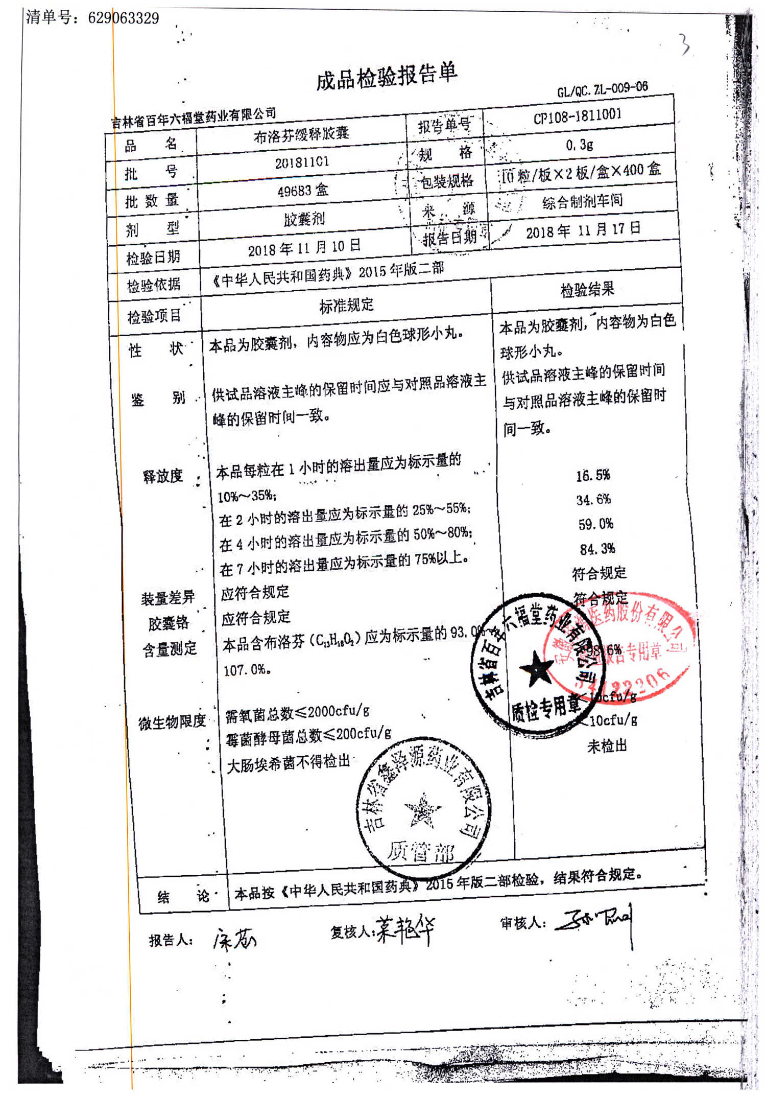 | 布洛芬緩釋膠囊 | 0.3g*12s | 20180504 | 查看詳情 |