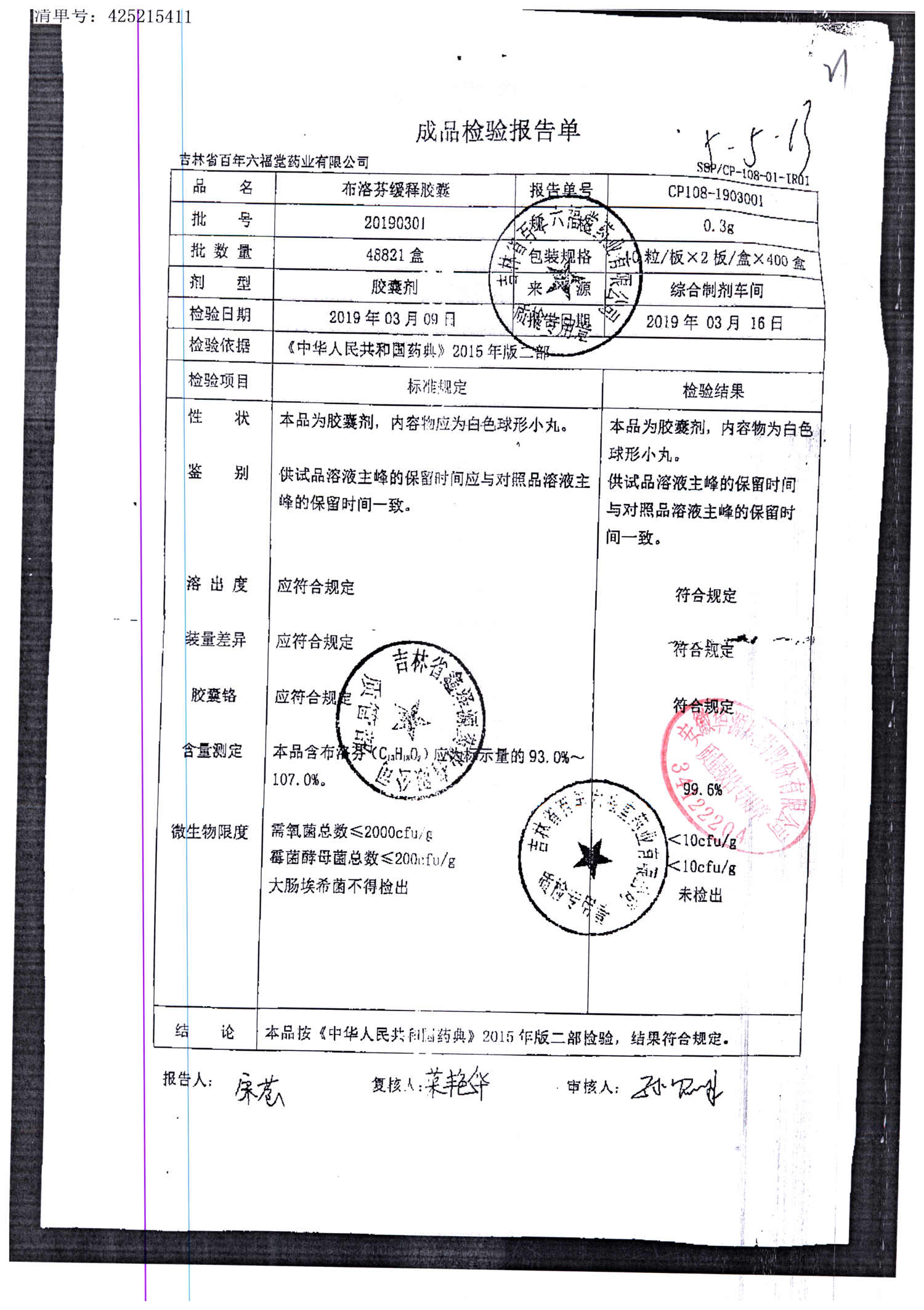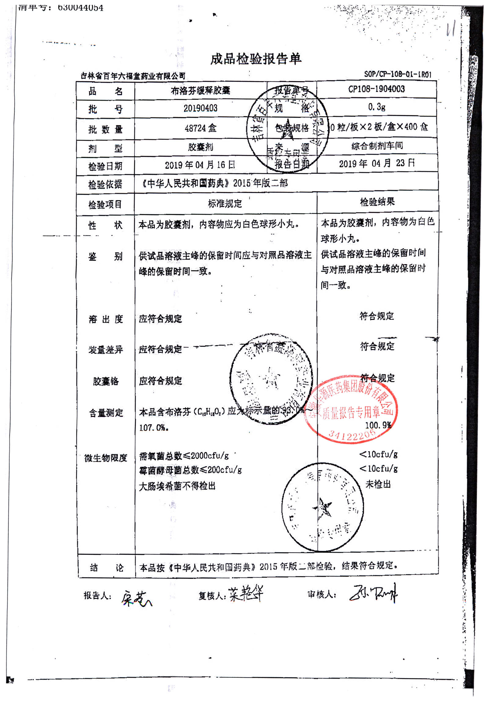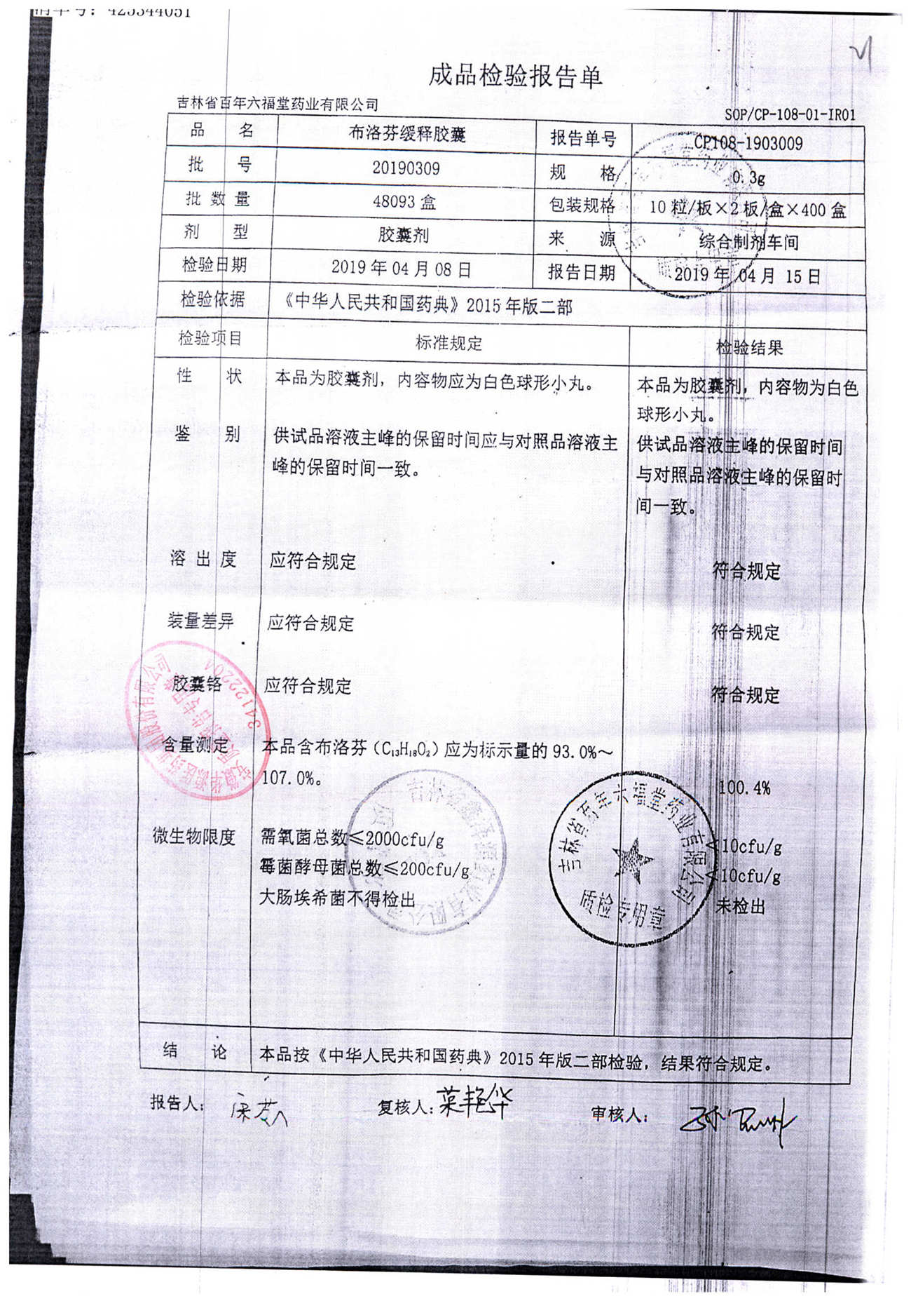 | 布洛芬緩釋膠囊 | 0.3g*12s | 20190403 | 查看詳情 |