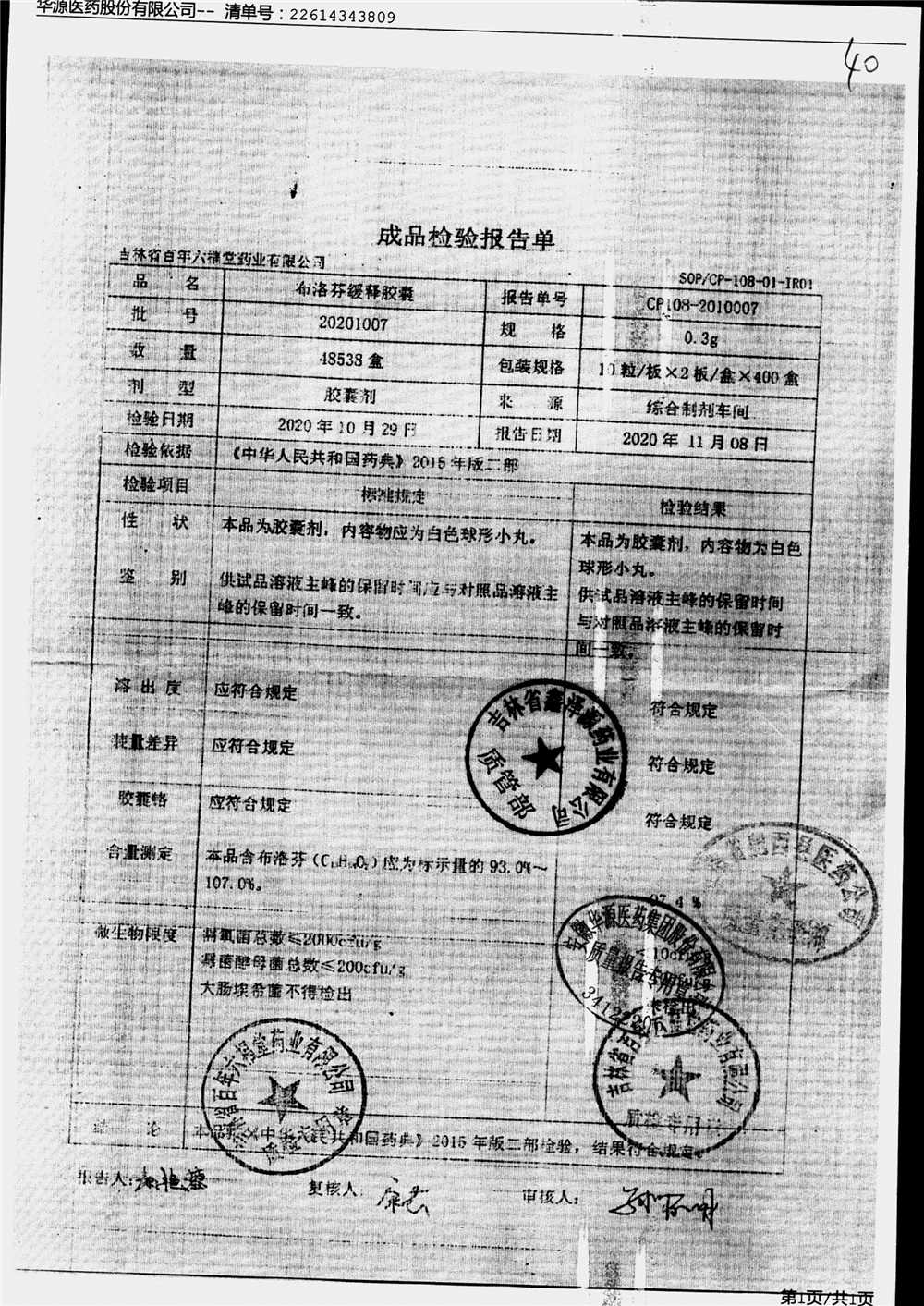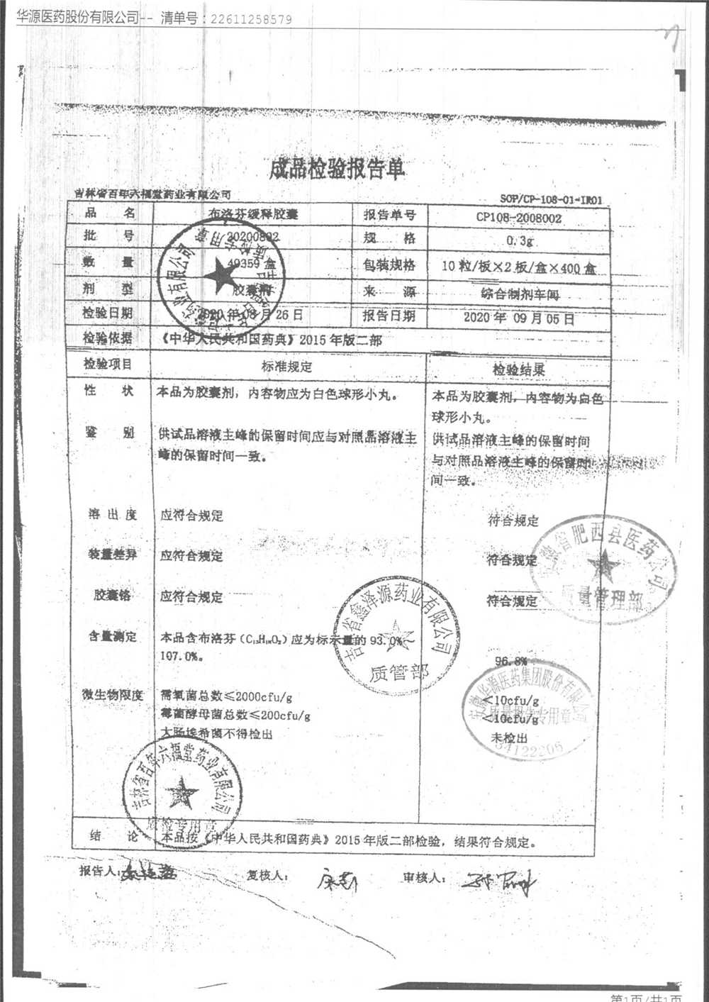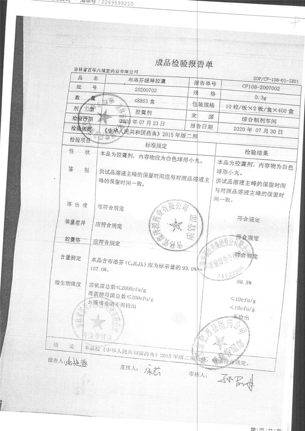 | 布洛芬緩釋膠囊 | 0.3g*12s | 20201007 | 查看詳情 |